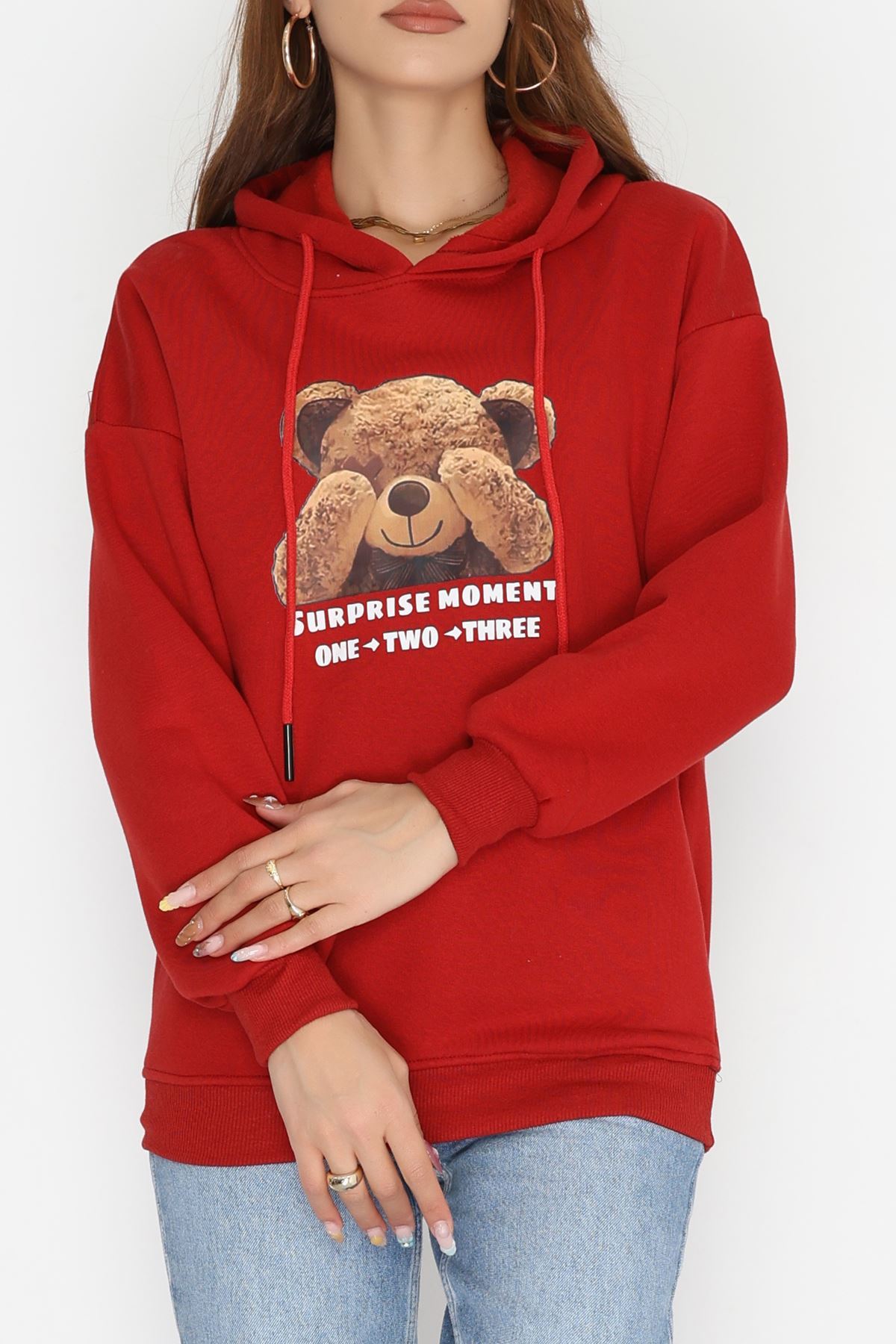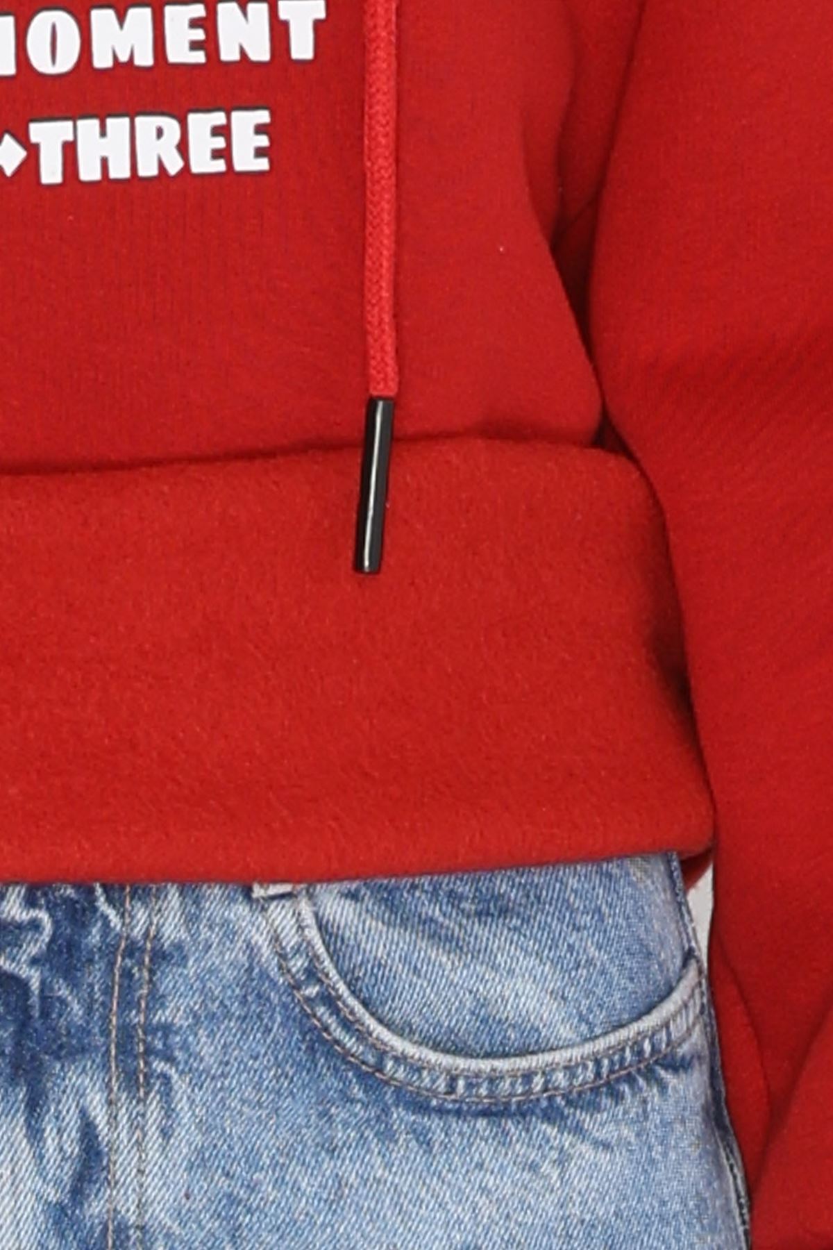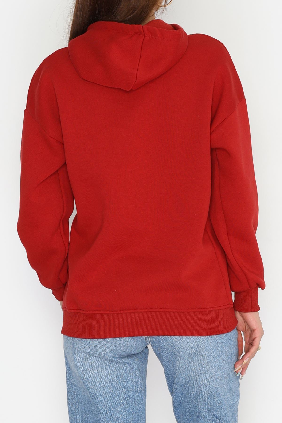 3 İplik Kapşonlu Baskılı Sweat Bordo - 42220.1878.