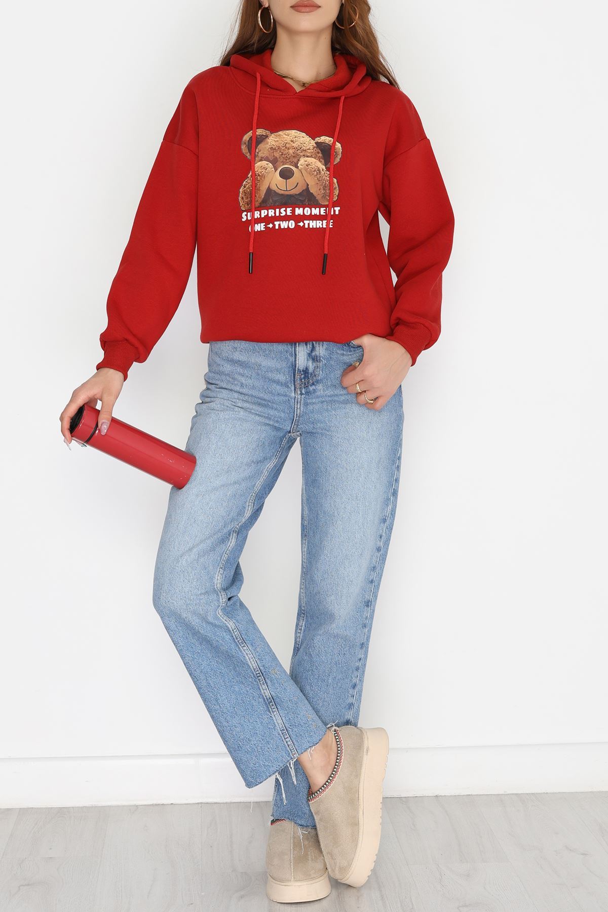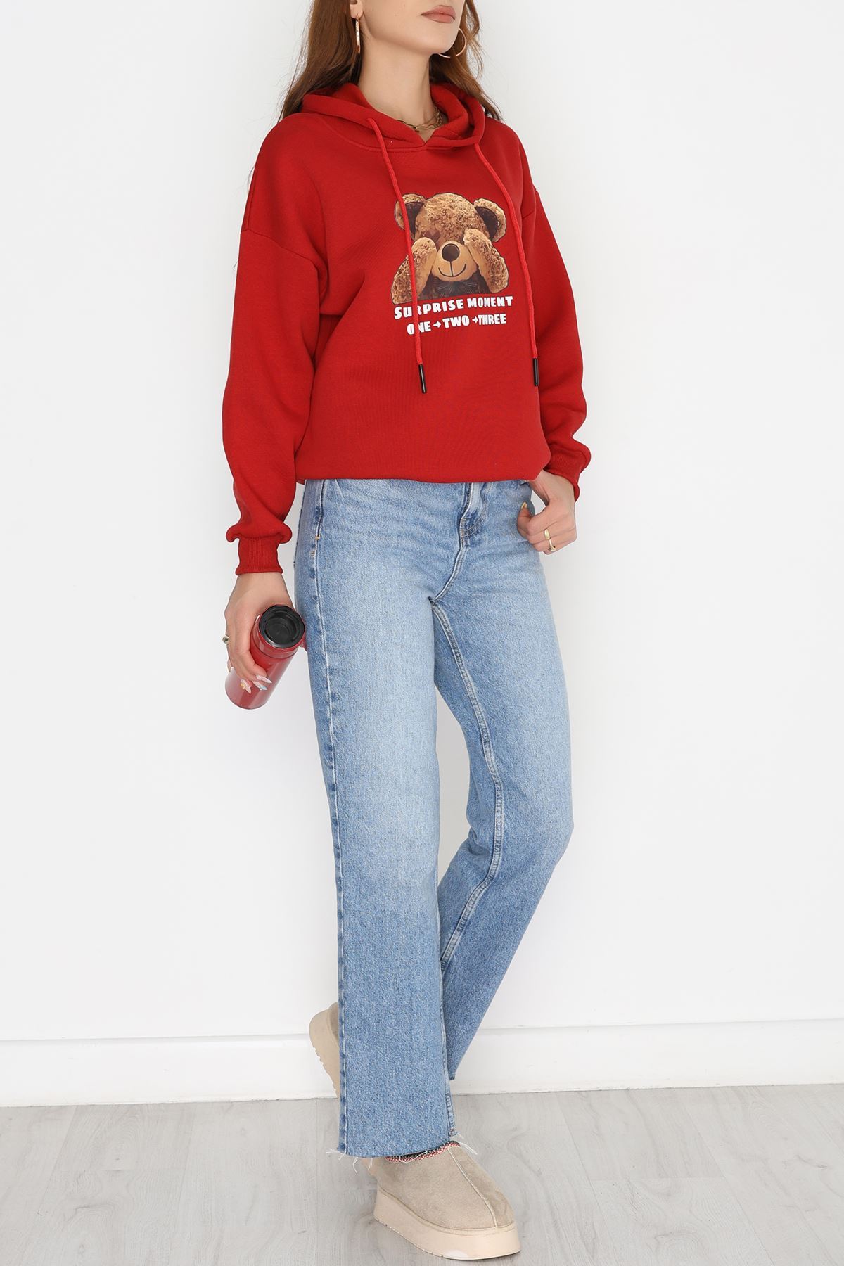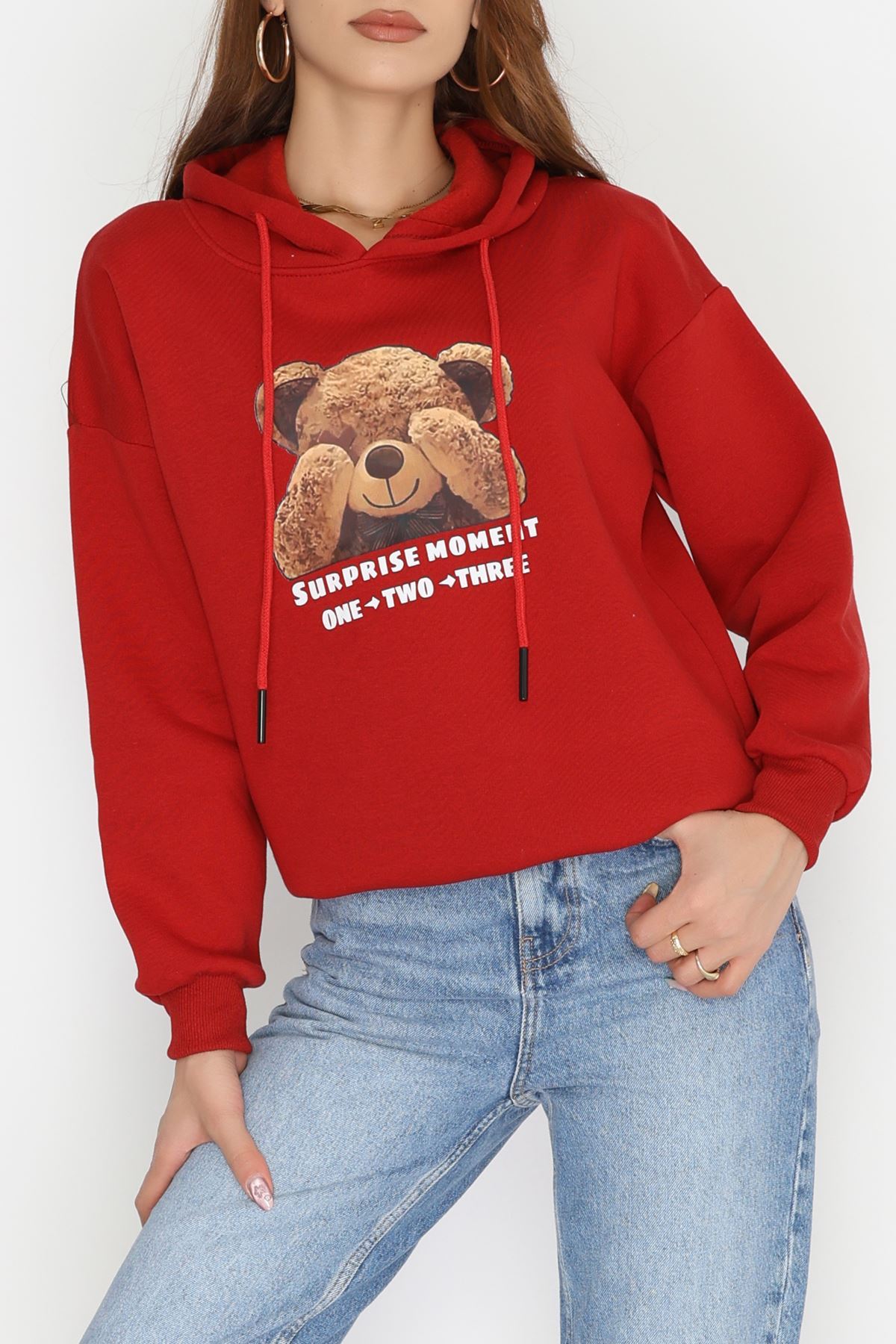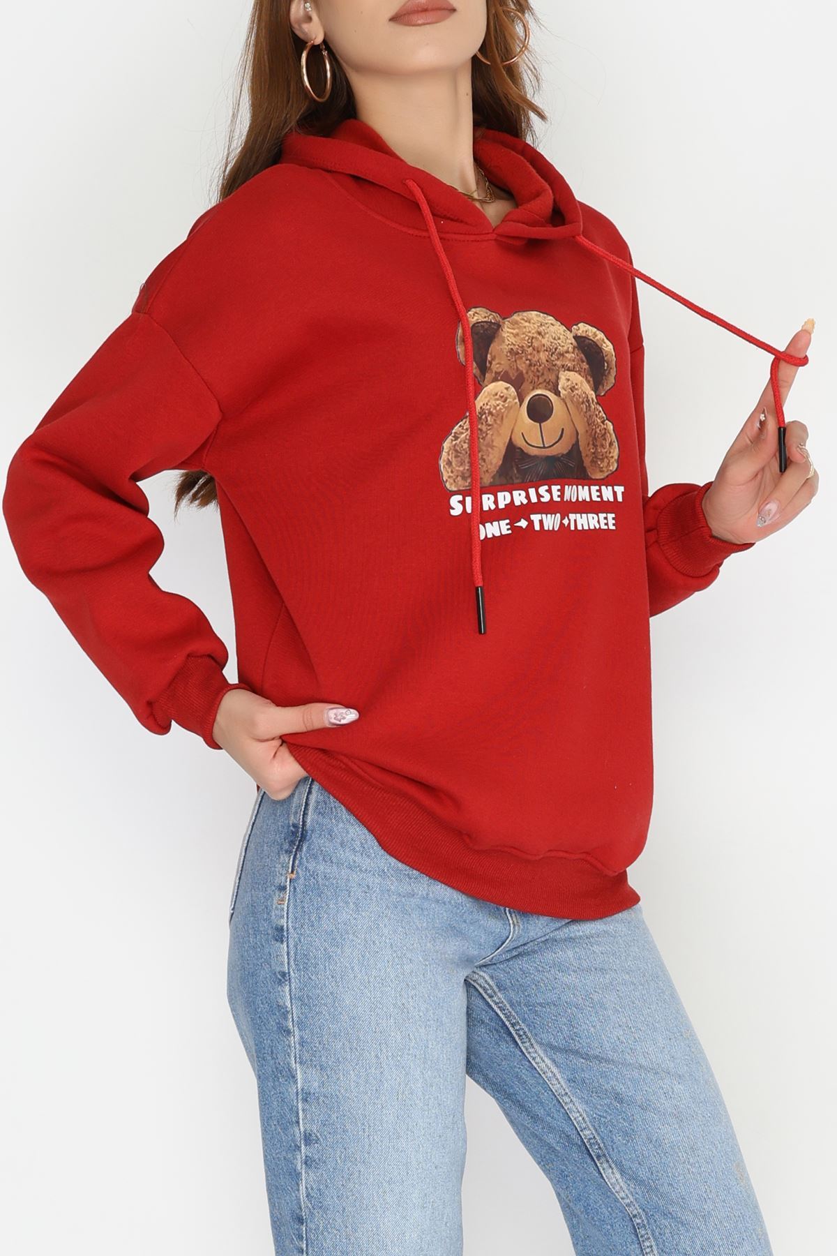 3 İplik Kapşonlu Baskılı Sweat Bordo - 42220.1878.