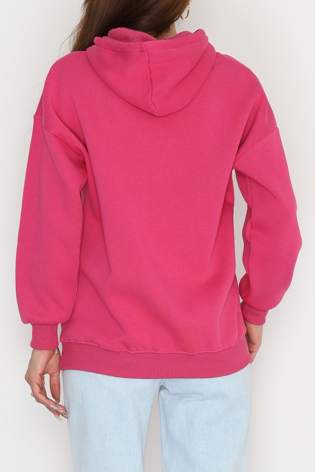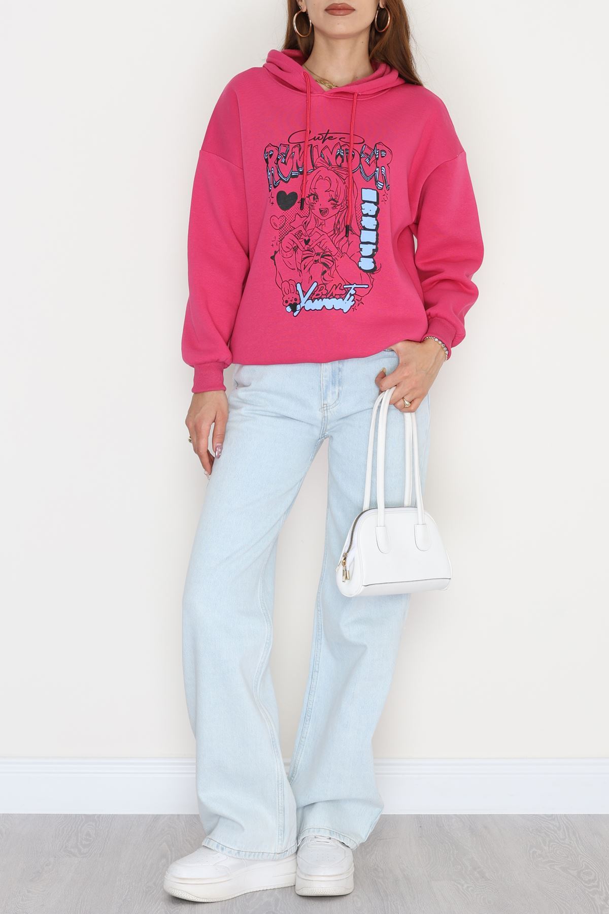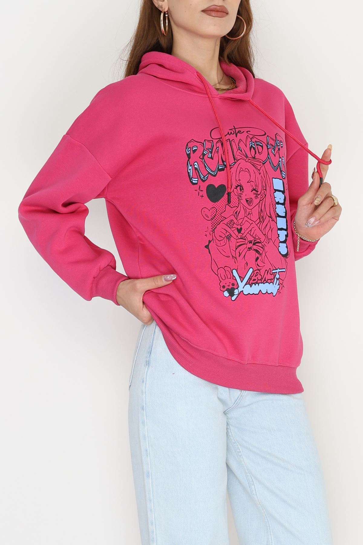 3 İplik Kapşonlu Baskılı Sweat Fuşya - 42224.1878.
