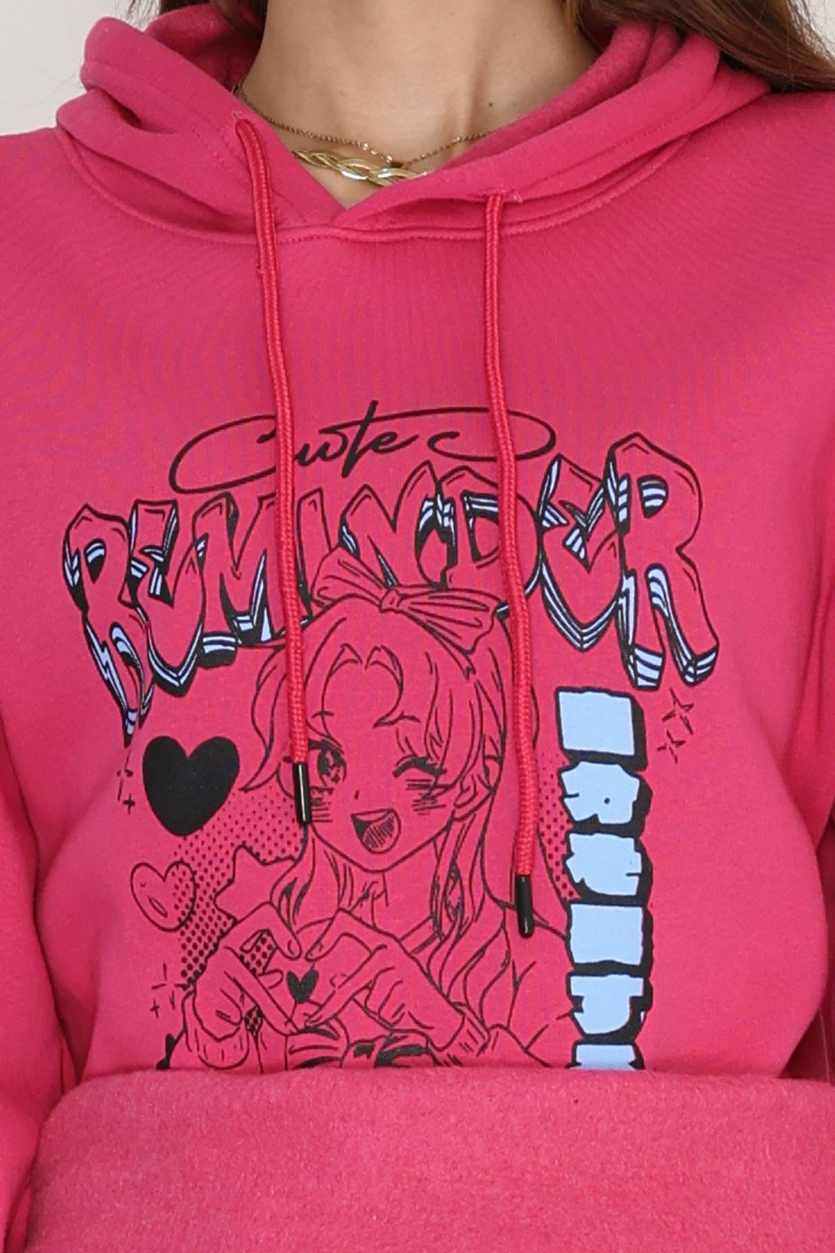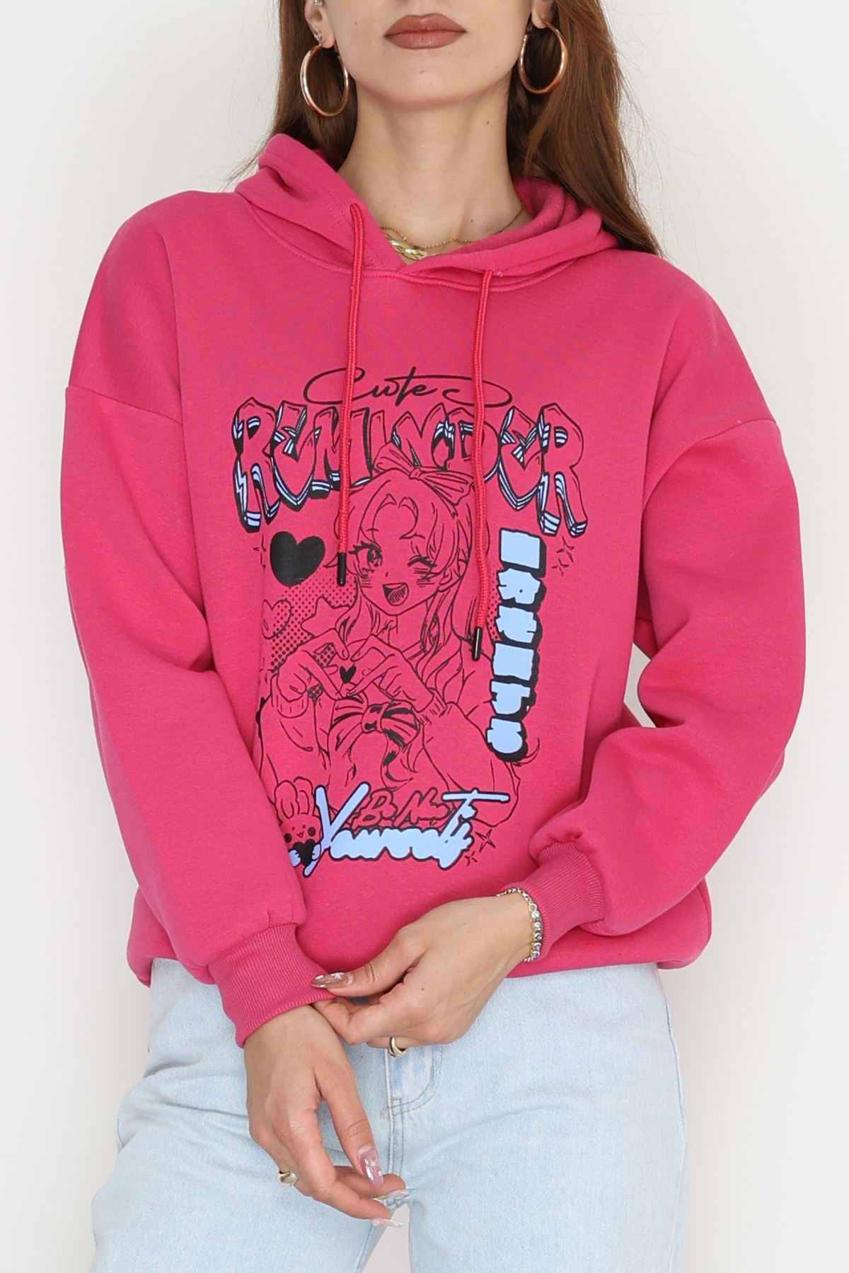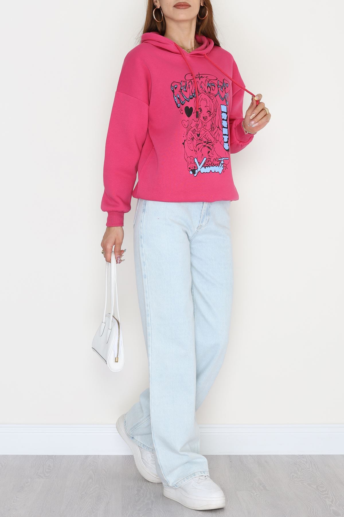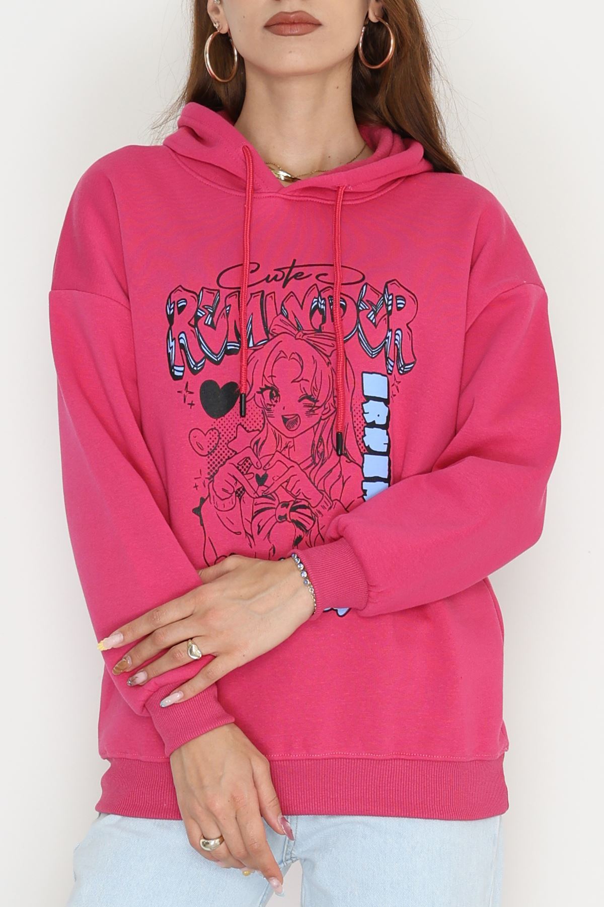 3 İplik Kapşonlu Baskılı Sweat Fuşya - 42224.1878.
