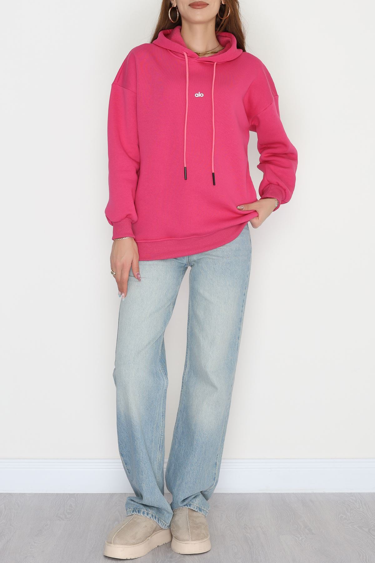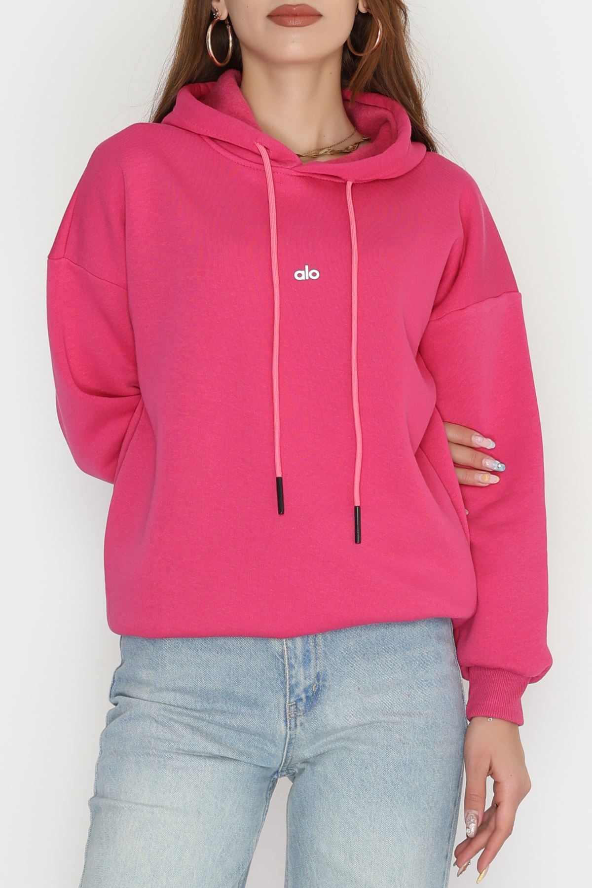 3 İplik Kapşonlu Baskılı Sweat Fuşya - 42232.1878.