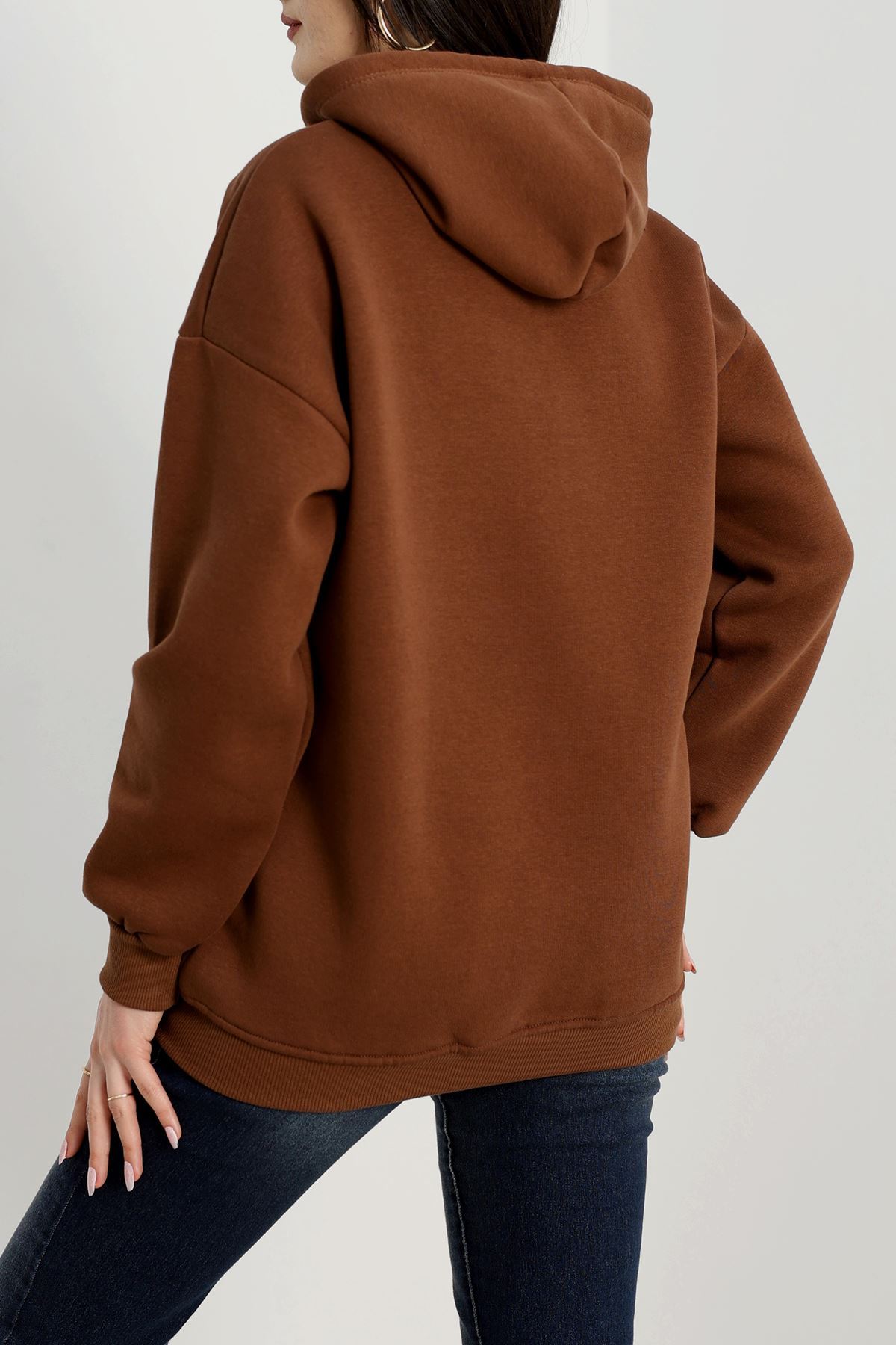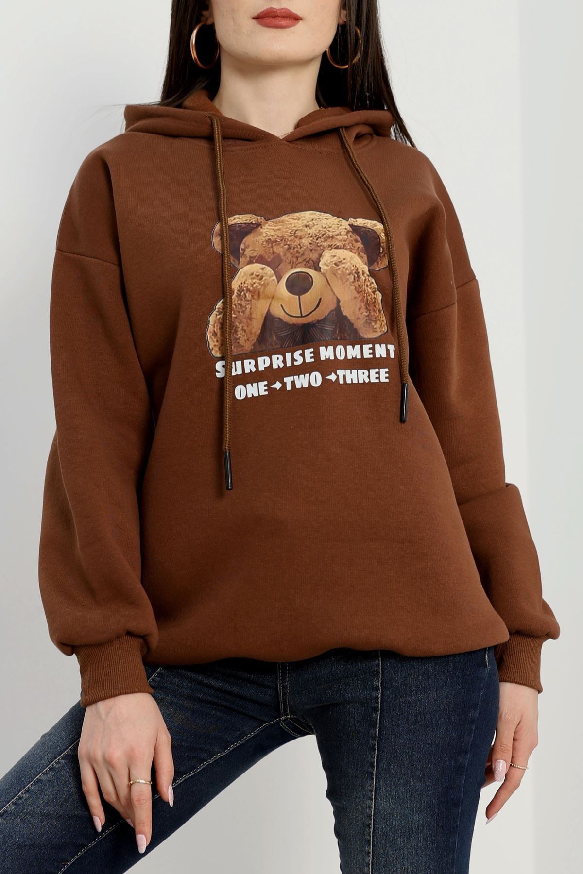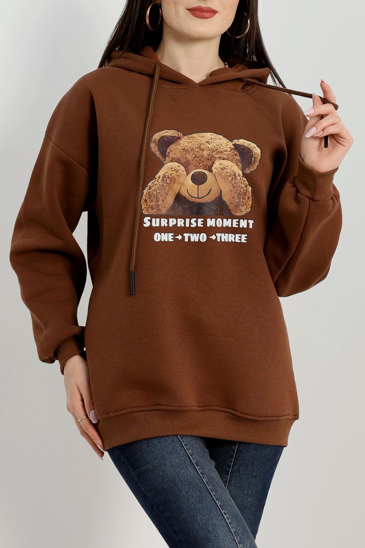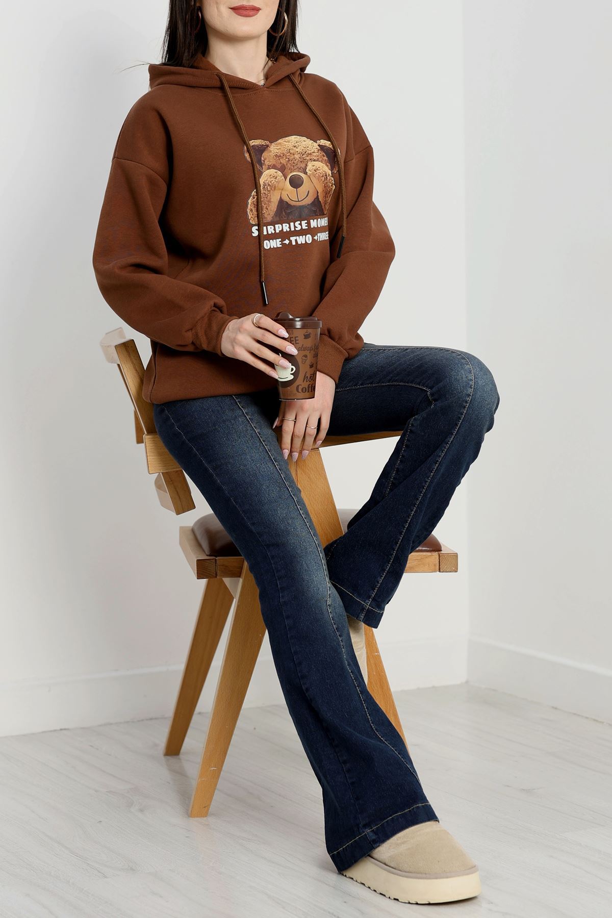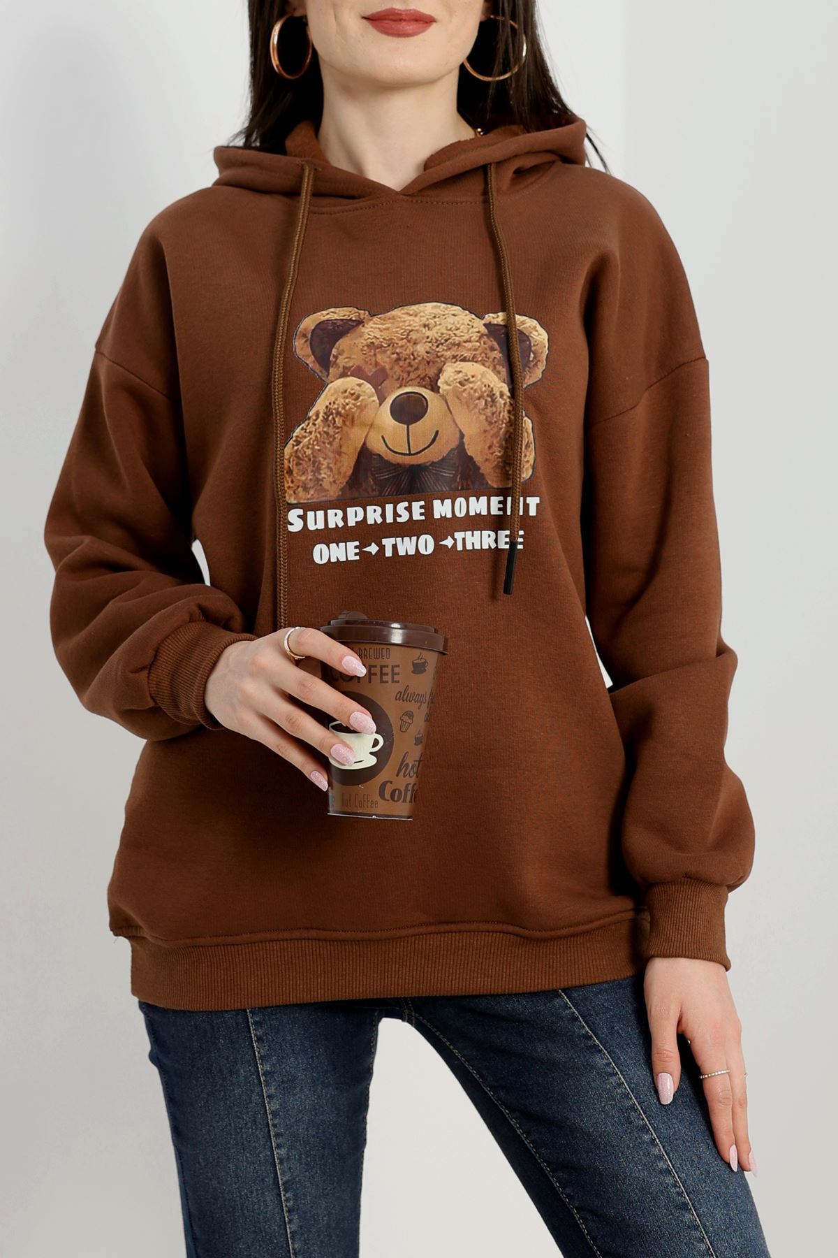 3 İplik Kapşonlu Baskılı Sweat Kahve - 42220.1878.