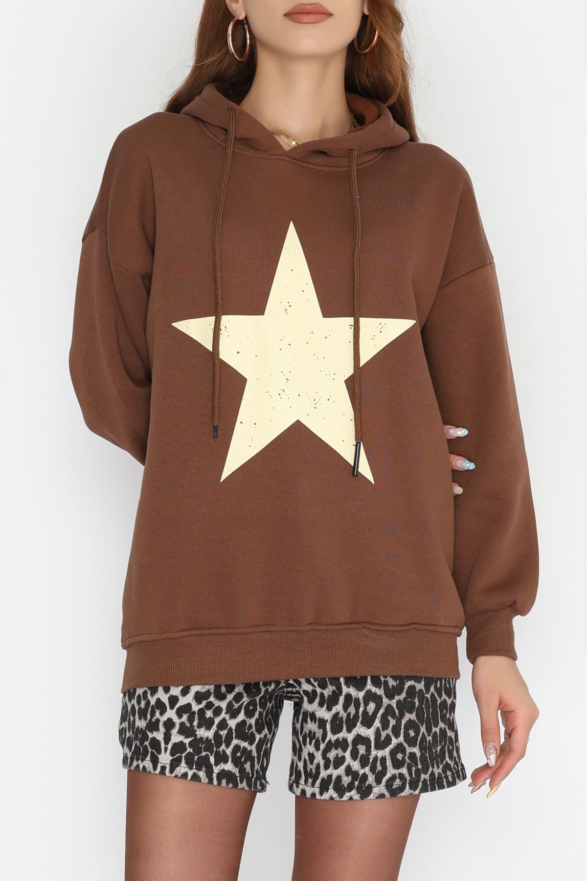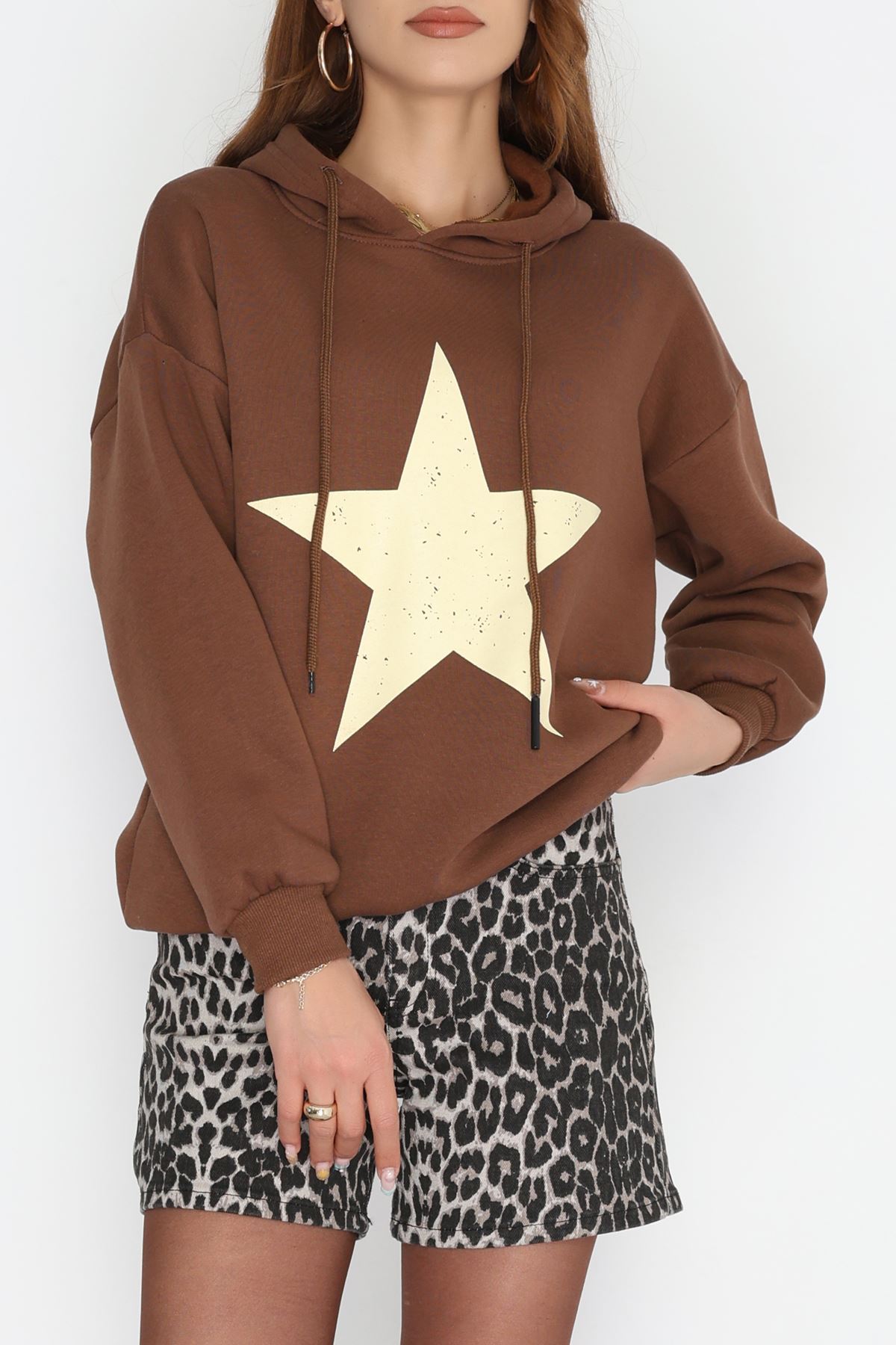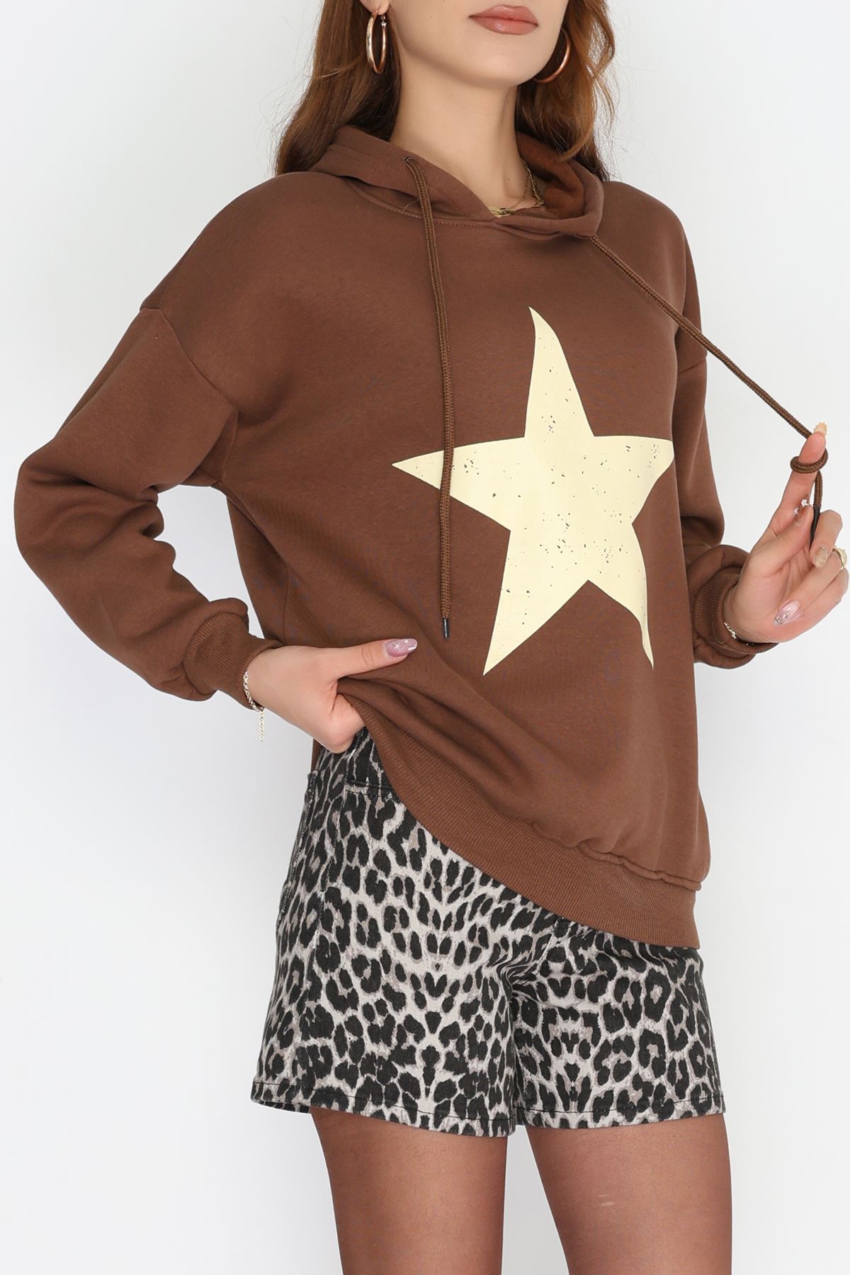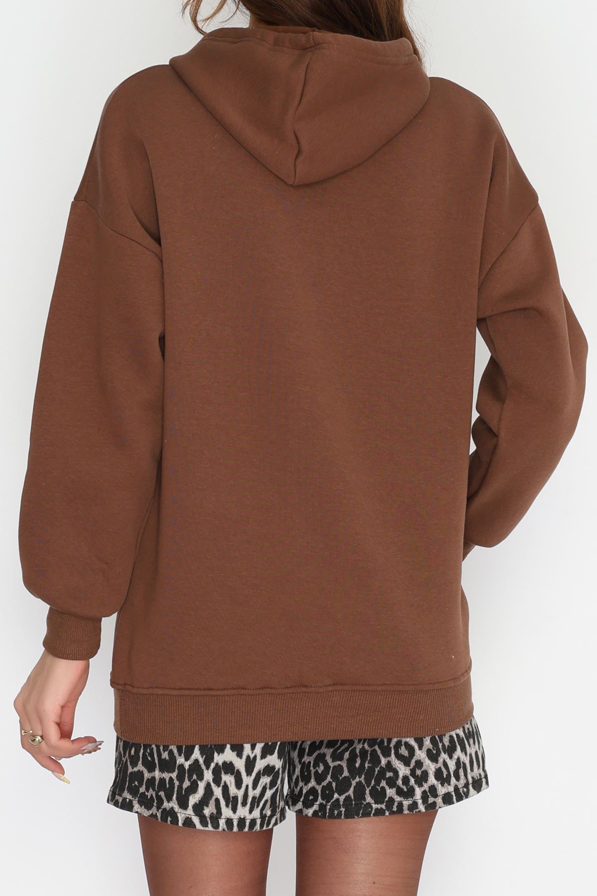 3 İplik Kapşonlu Sweat Kahve - 20074.1878.