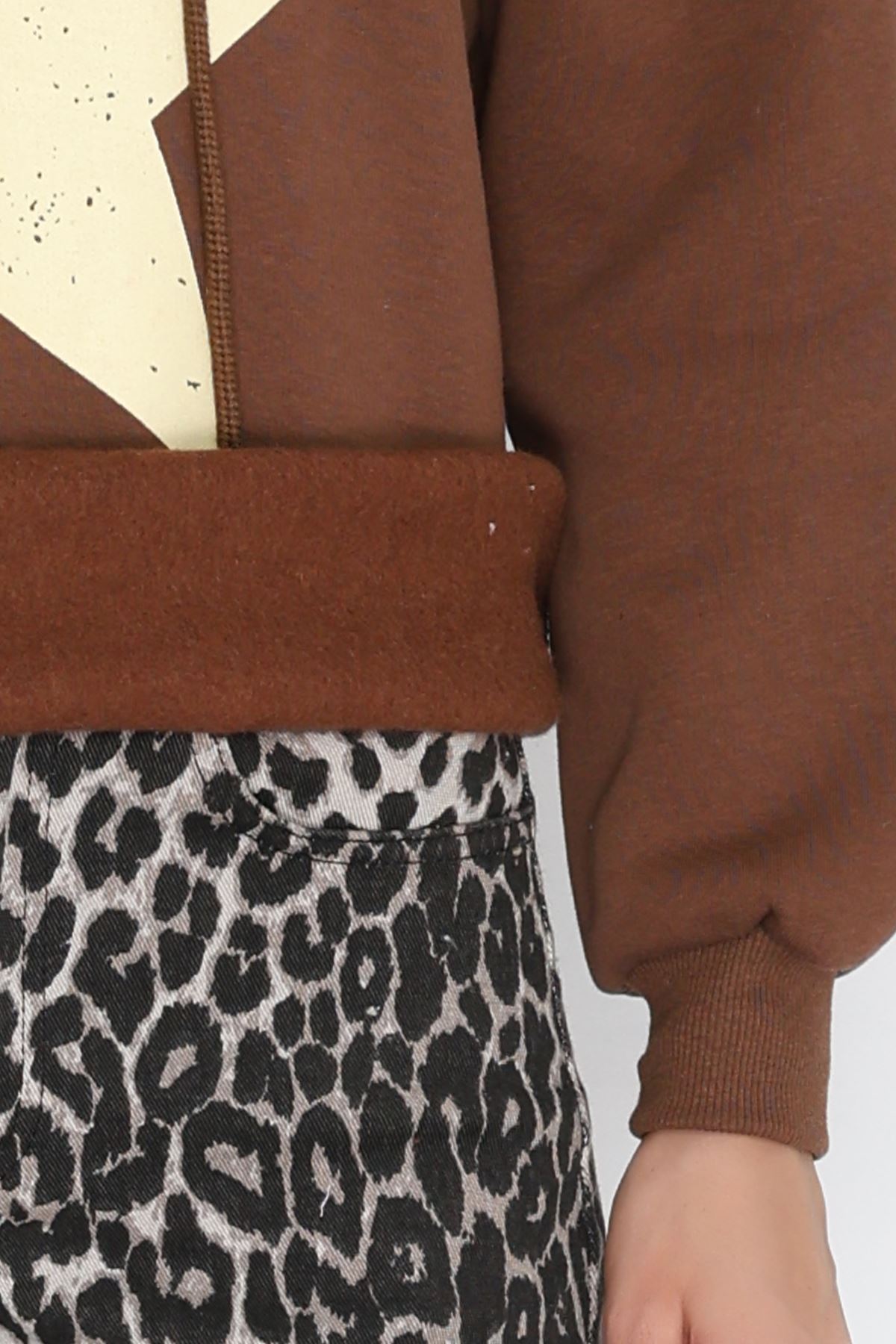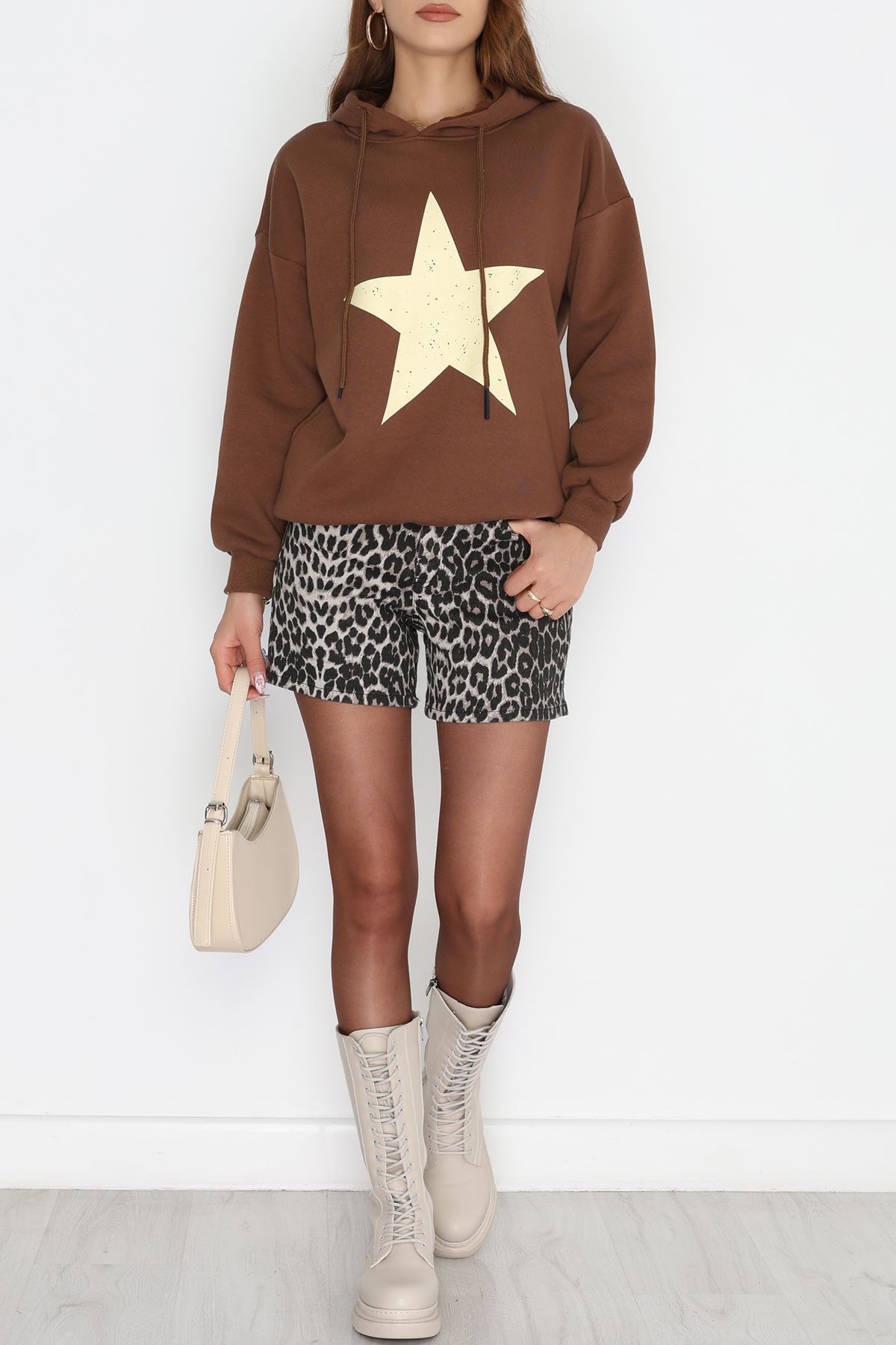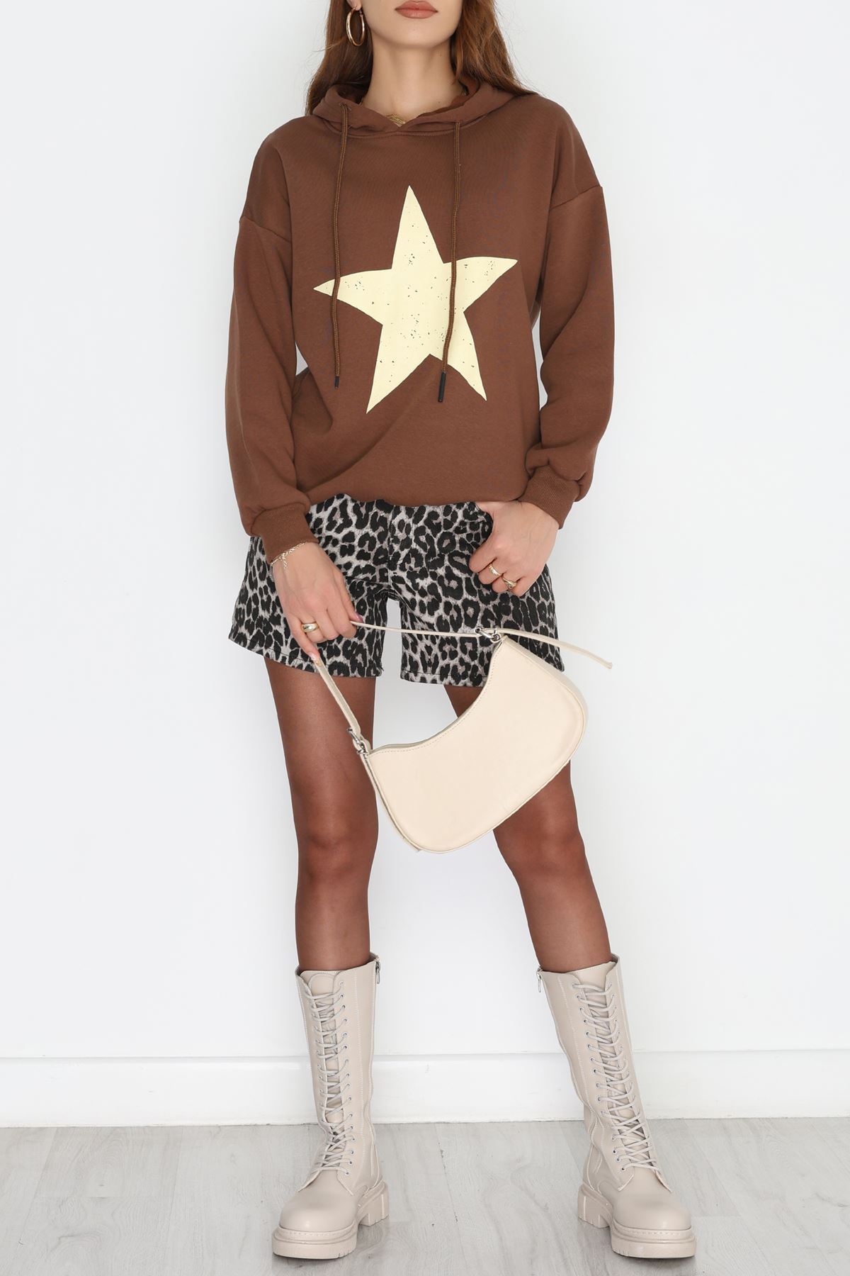 3 İplik Kapşonlu Baskılı Sweat Kahvebej - 42225.1878.
