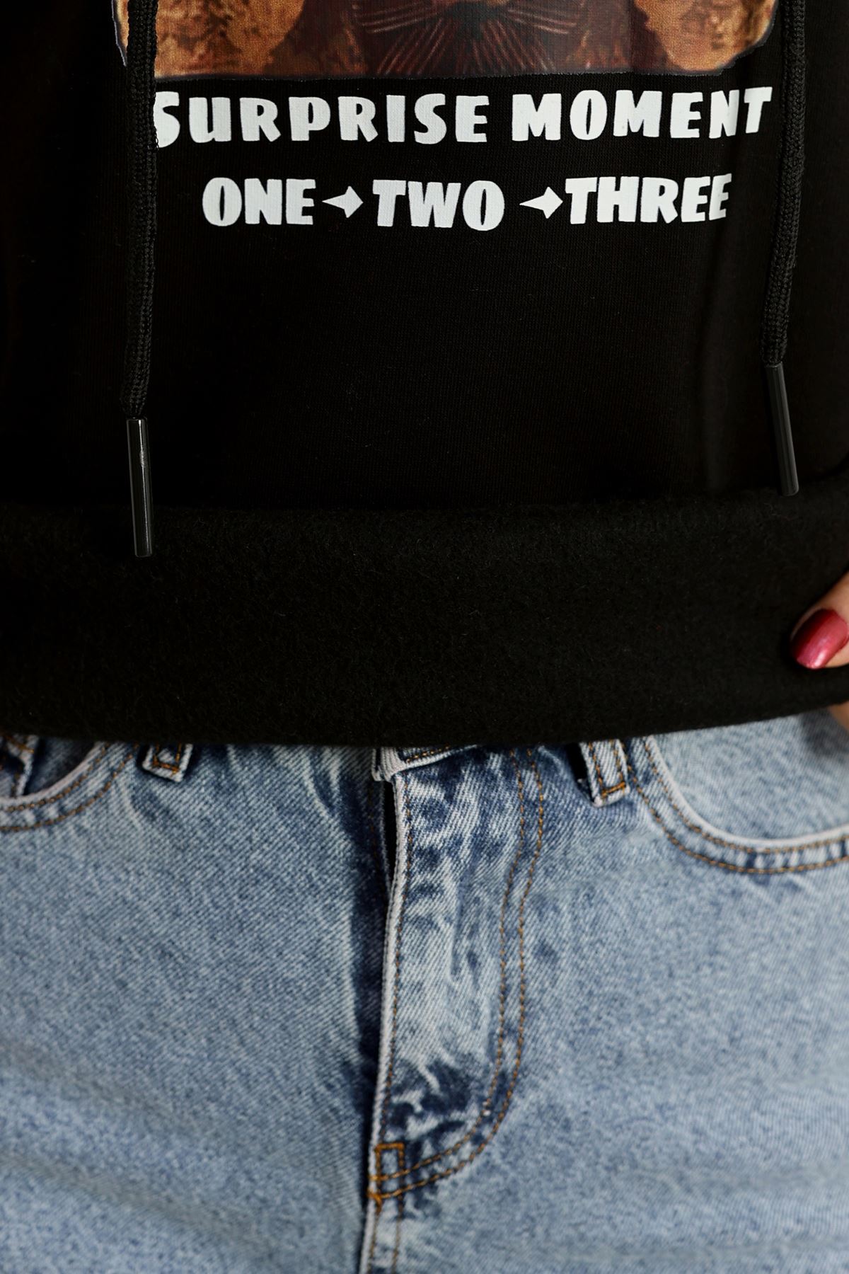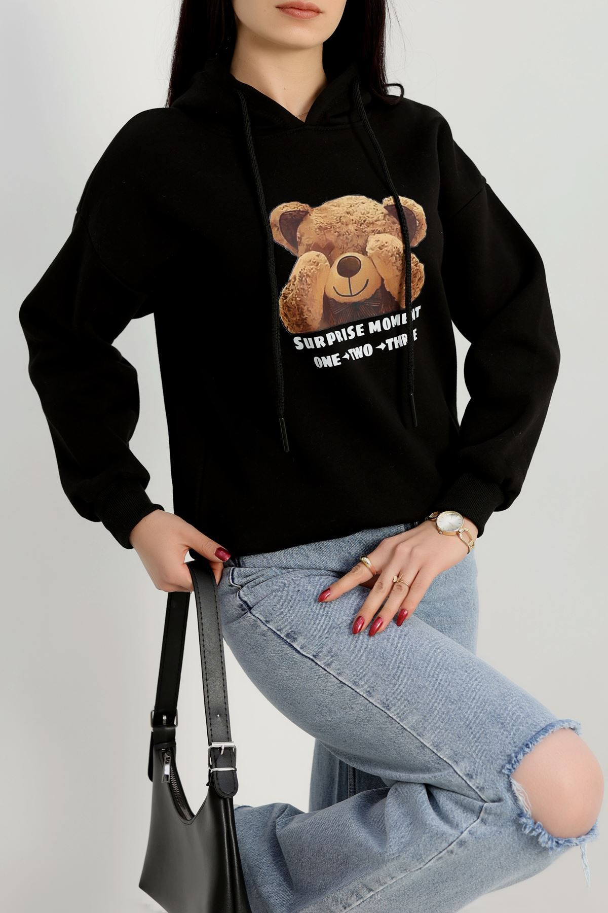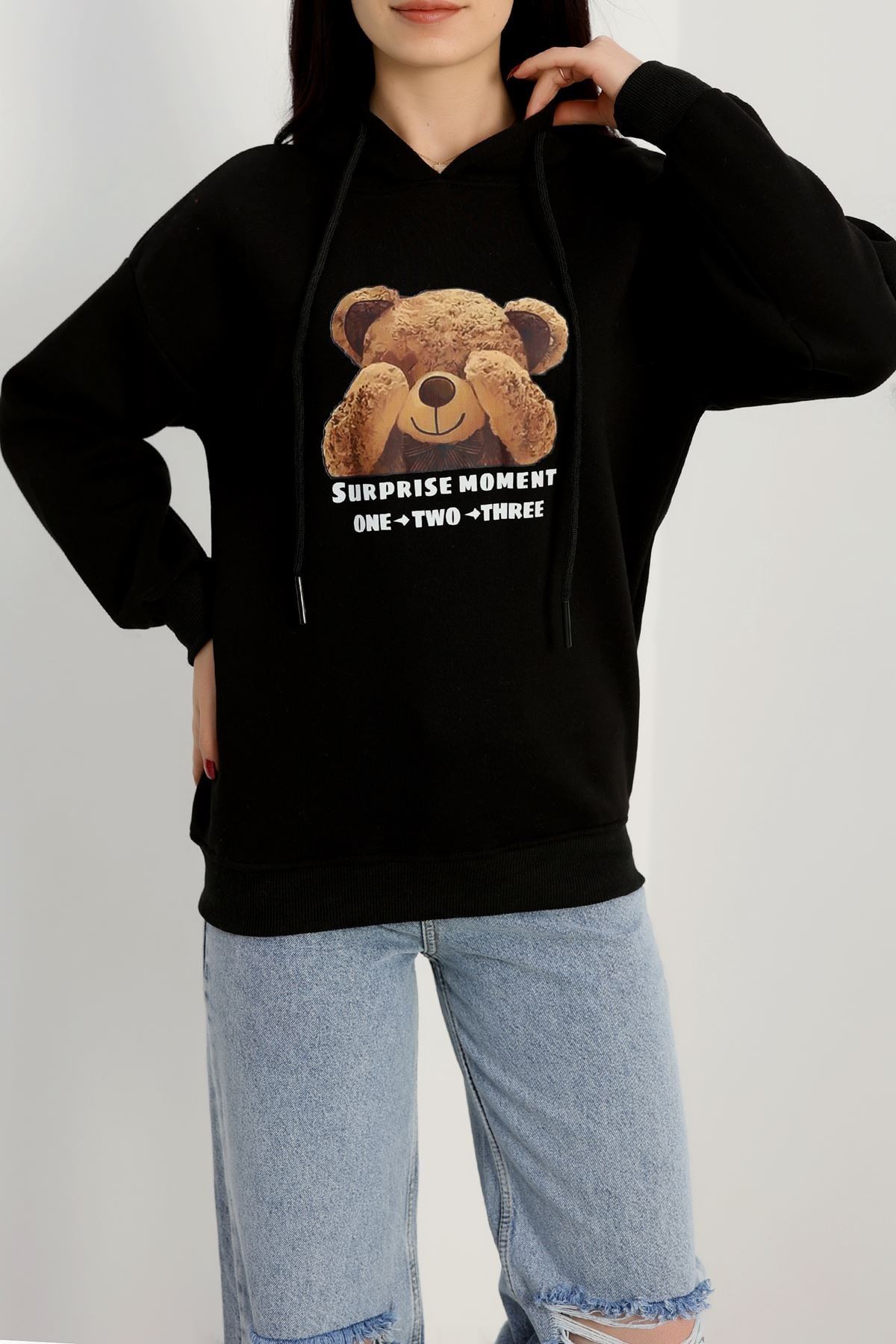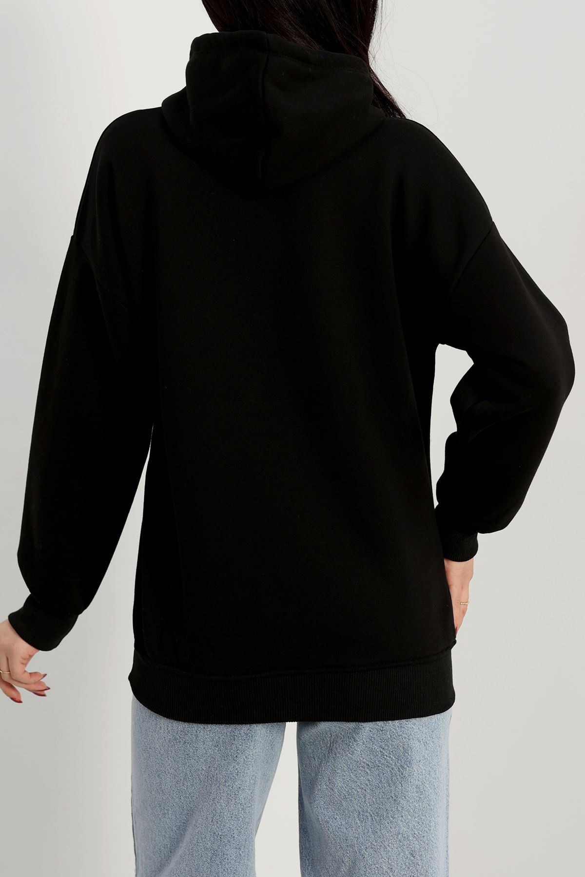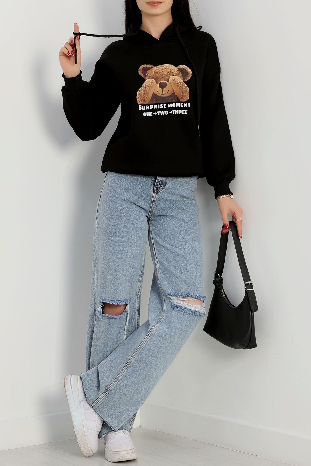 3 İplik Kapşonlu Baskılı Sweat Siyah - 42220.1878.