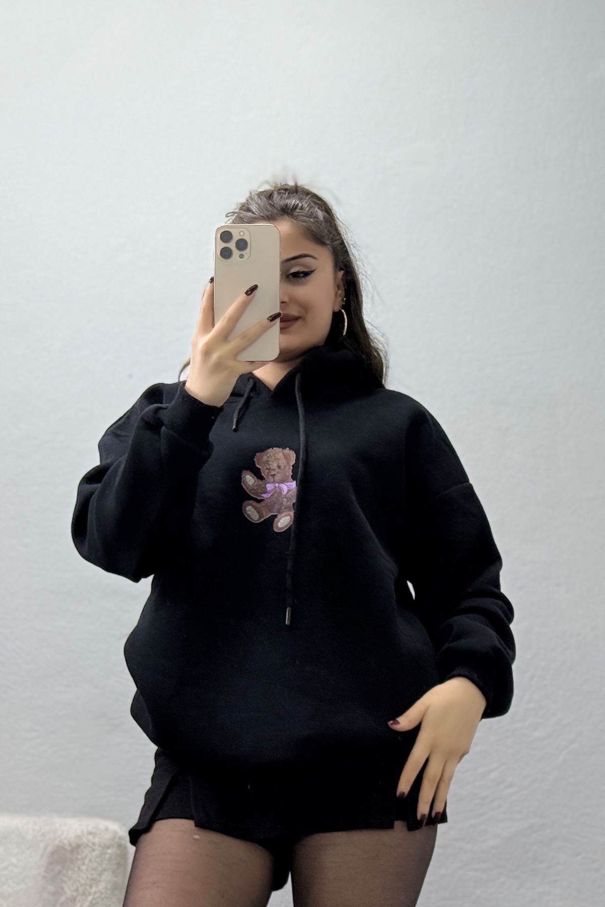 3 İplik Kapşonlu Baskılı Sweat Siyah - 42229.1878.