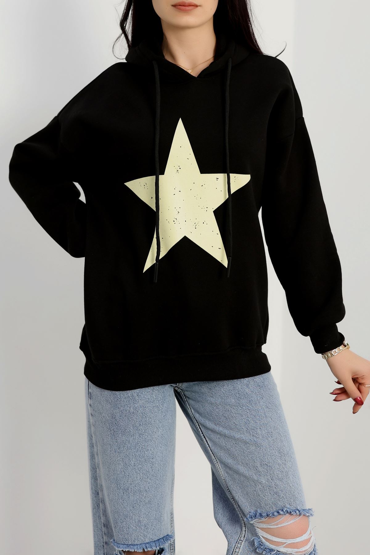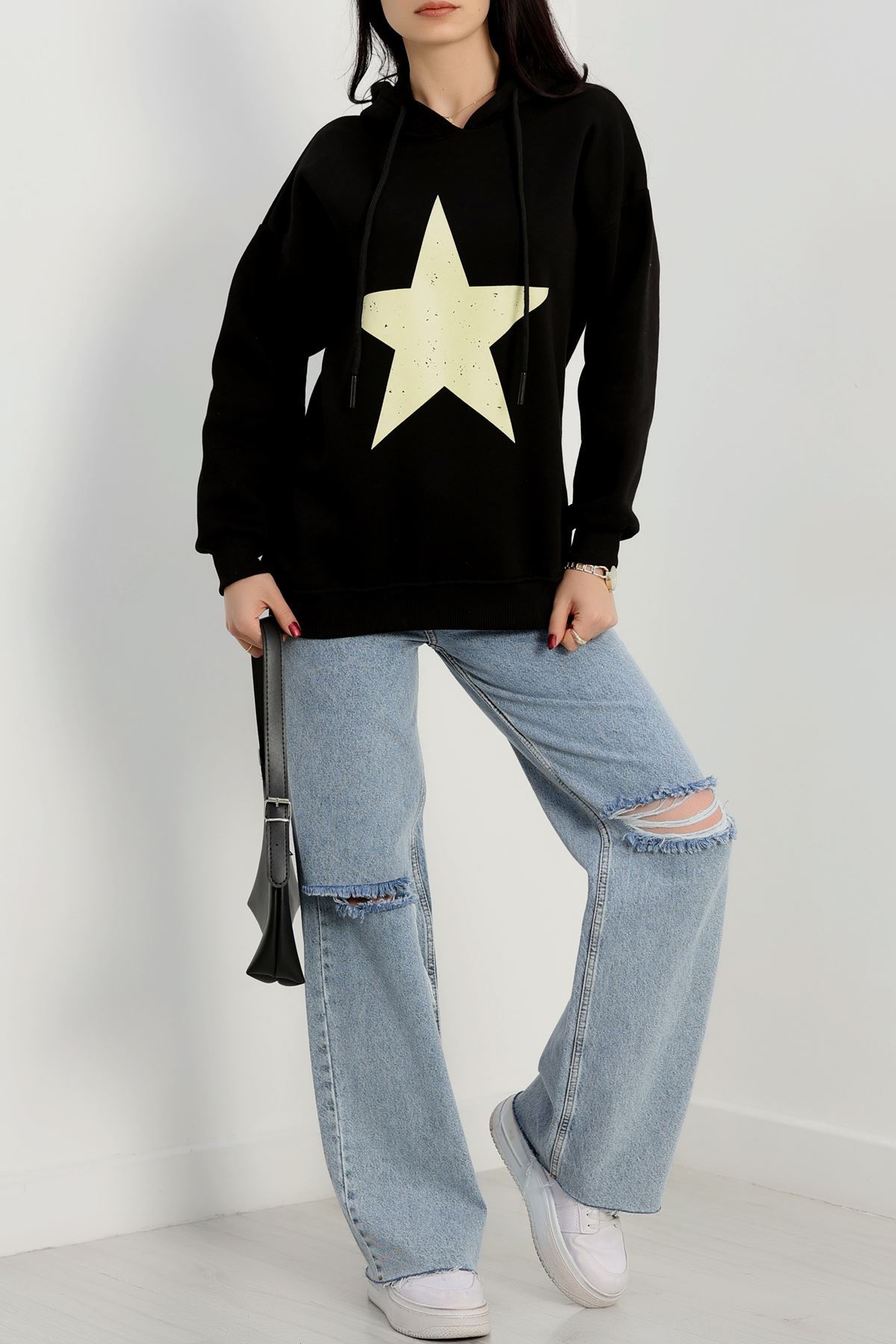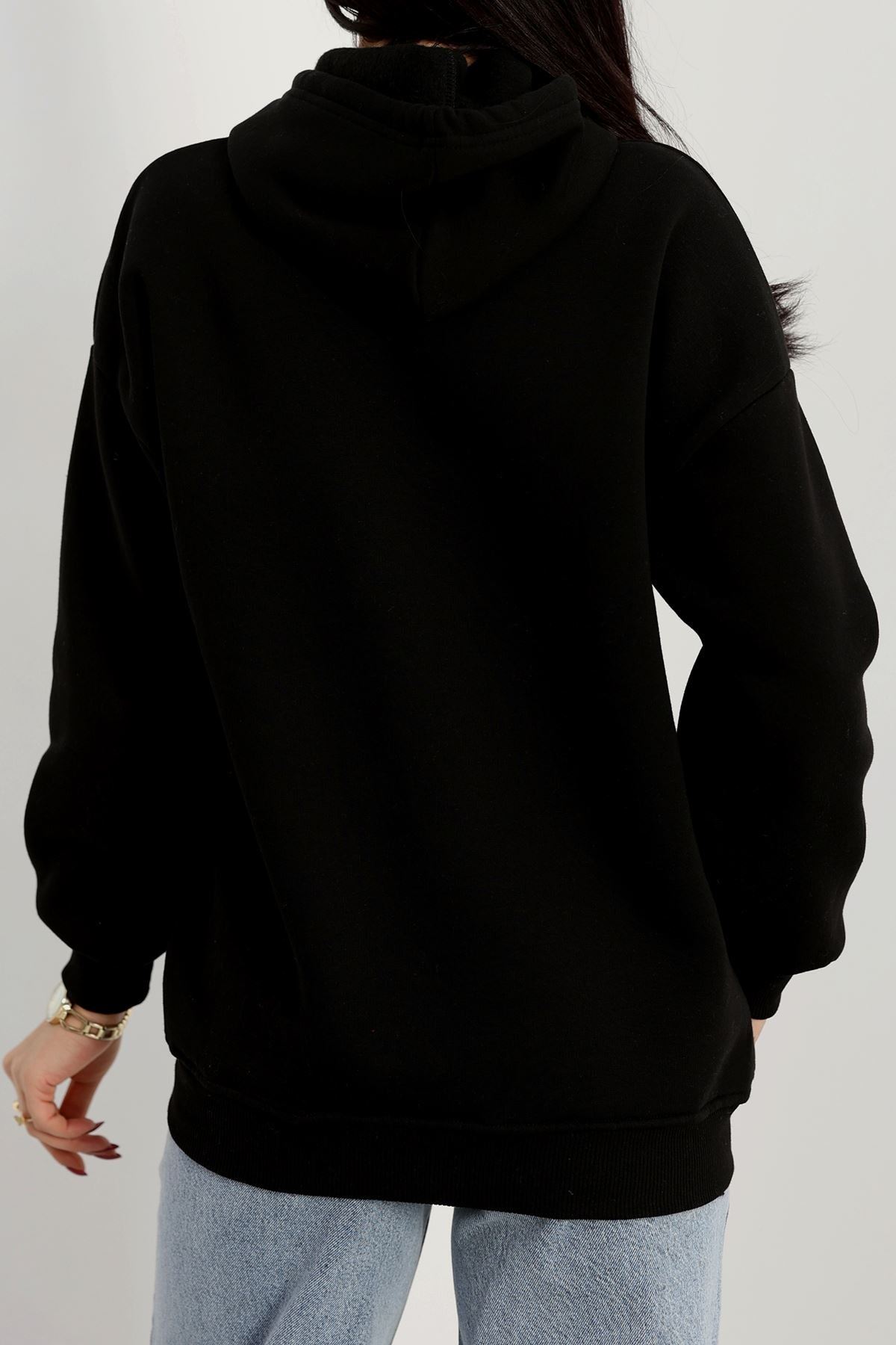 3 İplik Kapşonlu Baskılı Sweat Siyahbej - 42225.1878.