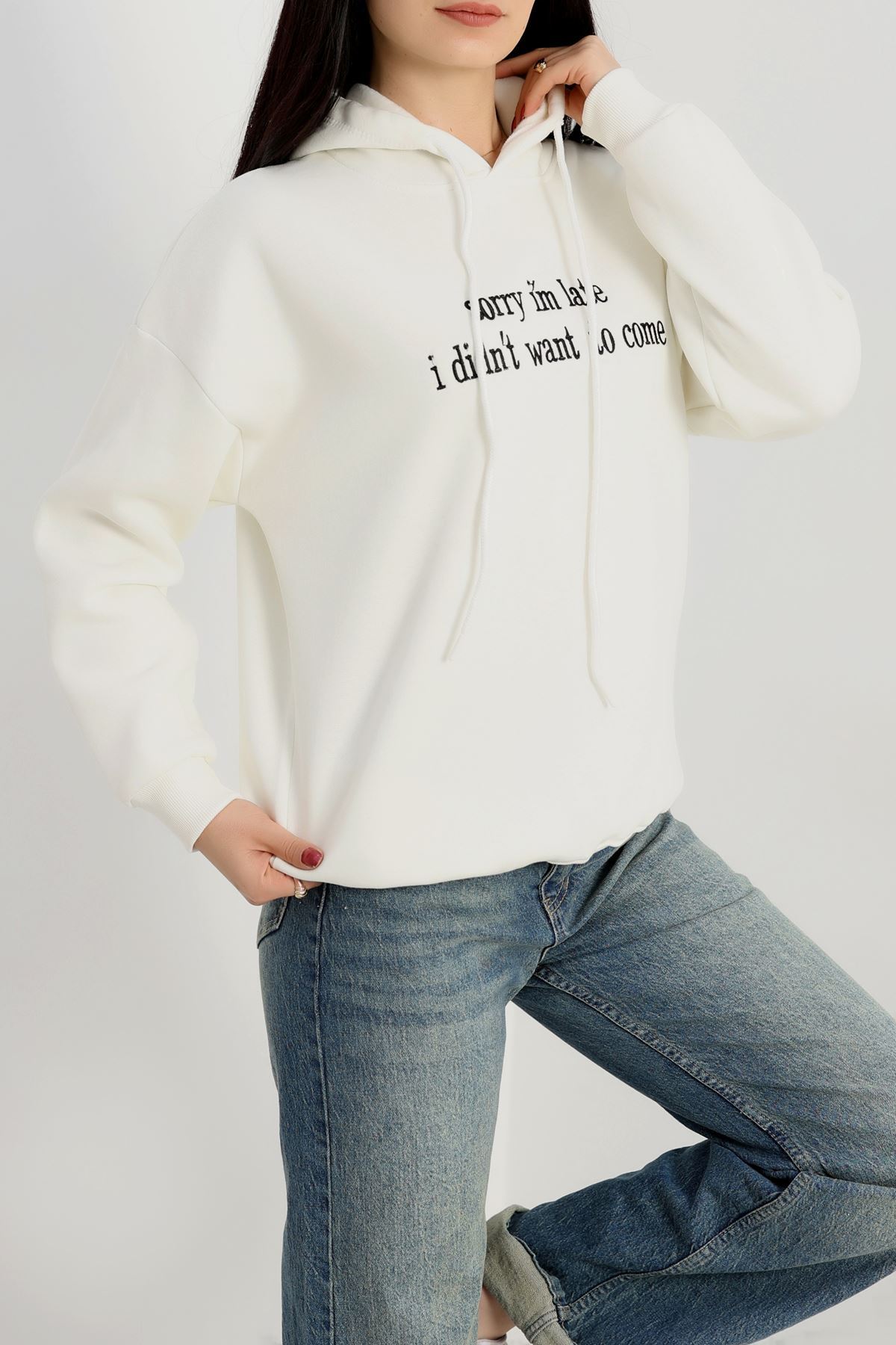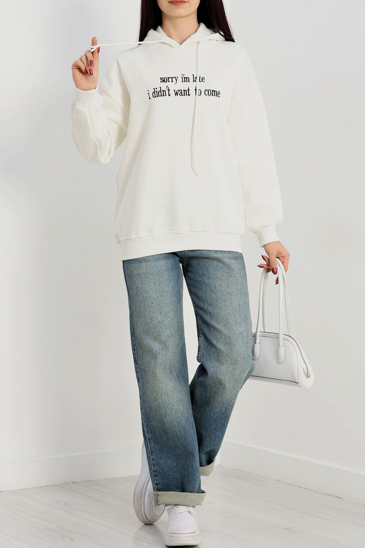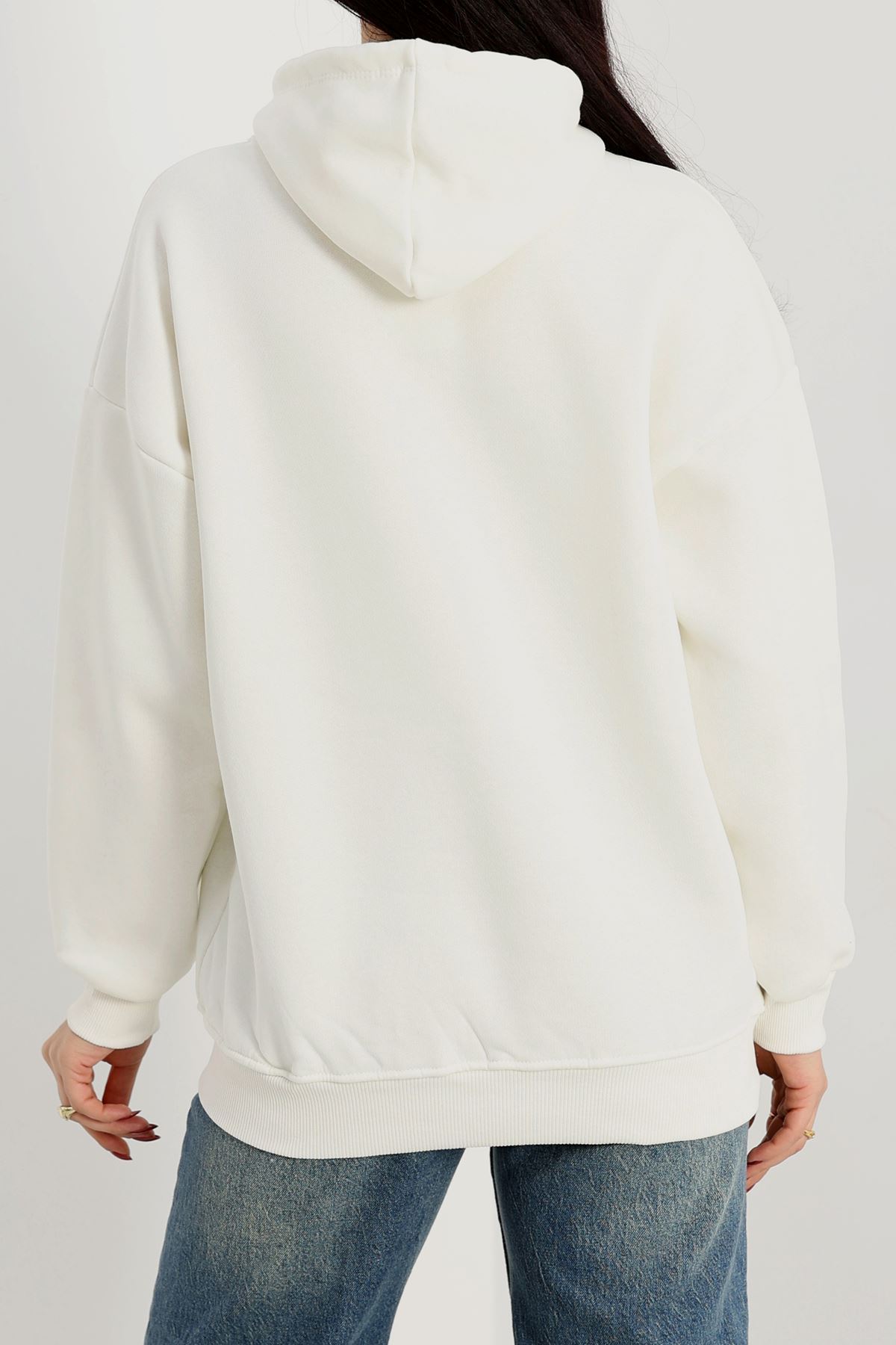 3 İplik Kapşonlu Baskılı Sweat Ekru - 42222.1878.