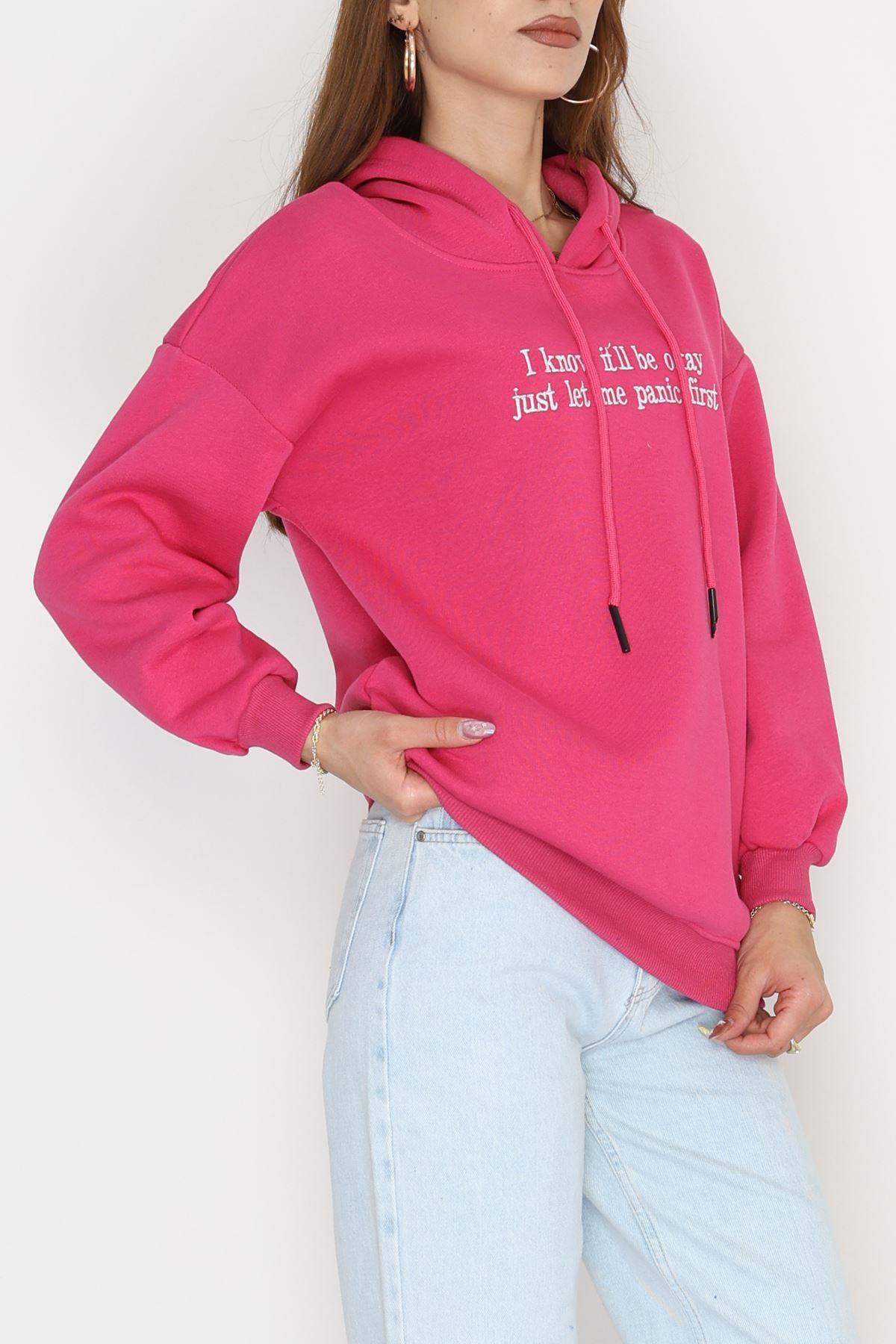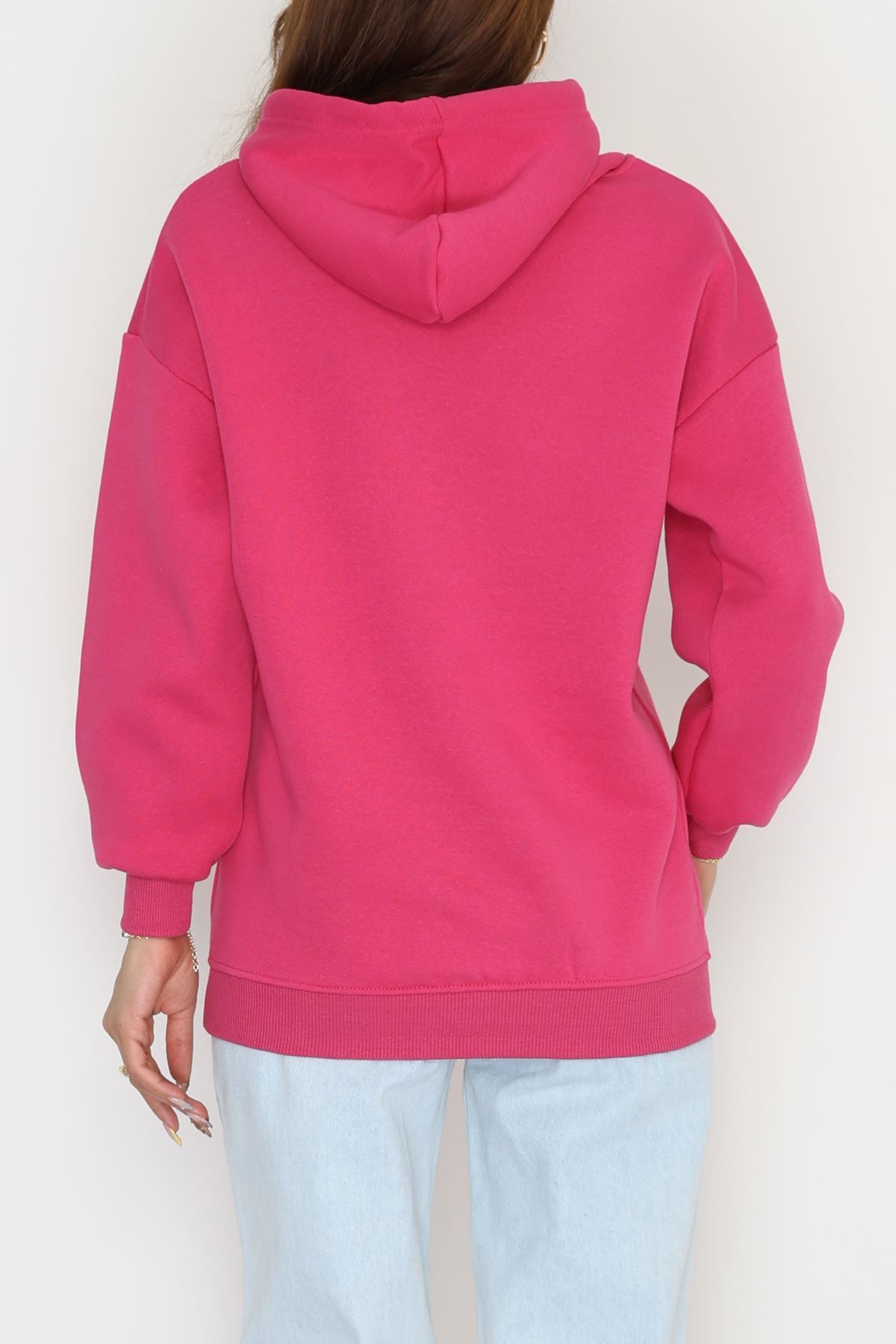 3 İplik Kapşonlu Baskılı Sweat Fuşya - 42222.1878.