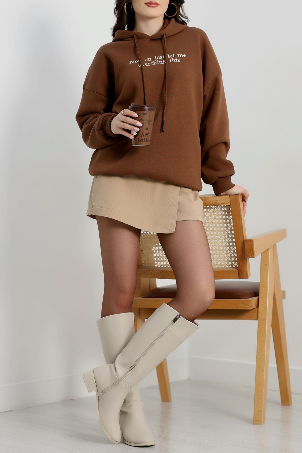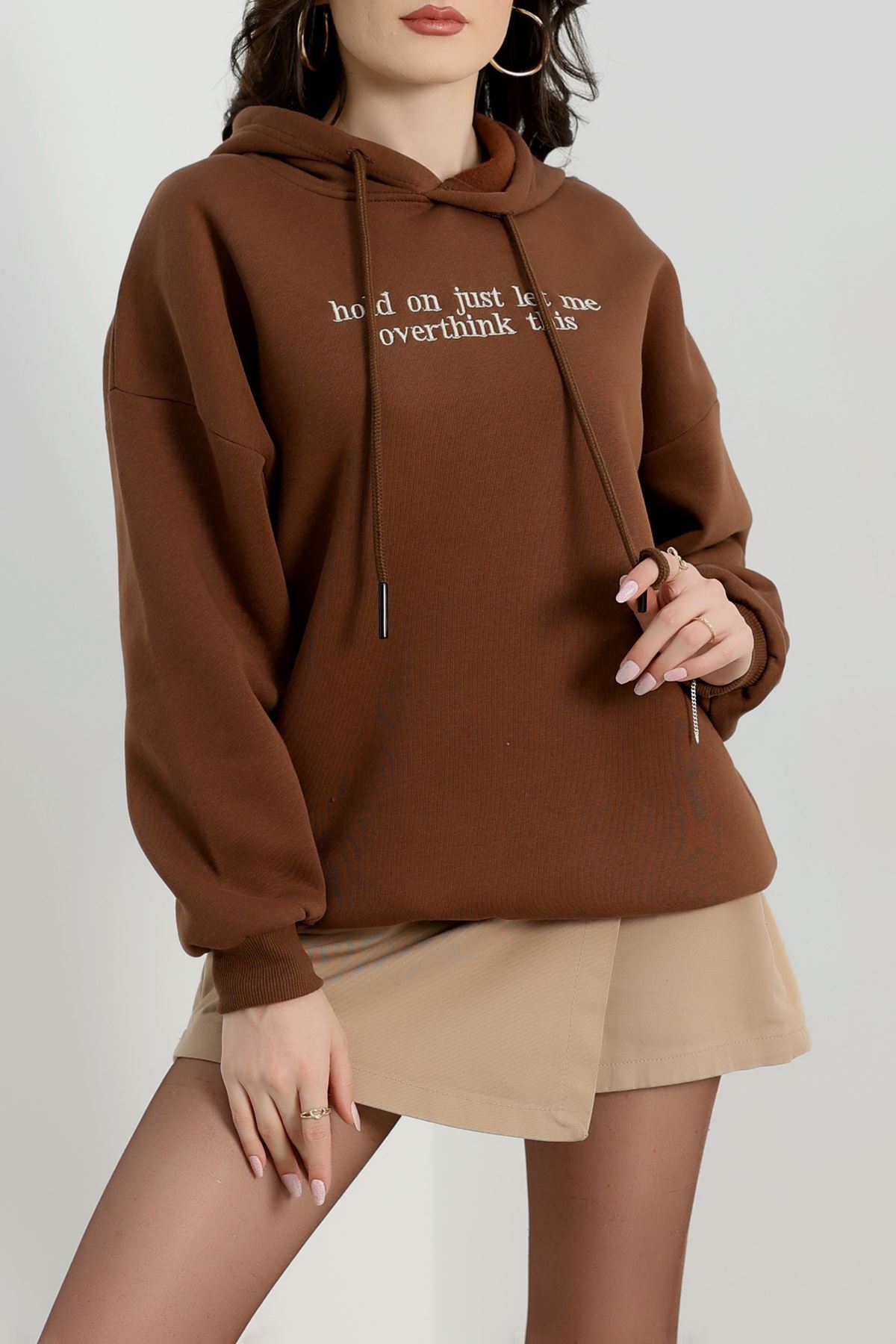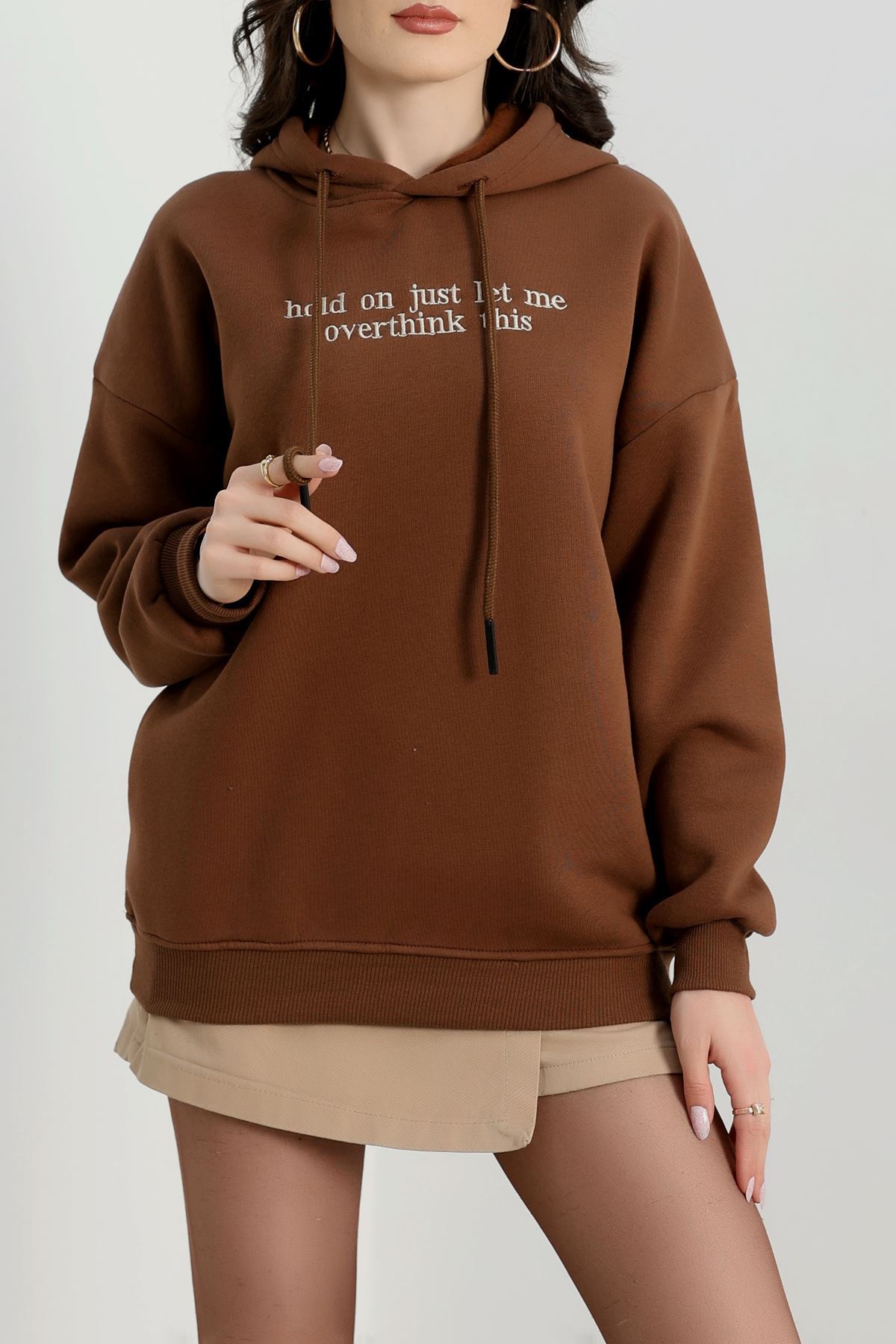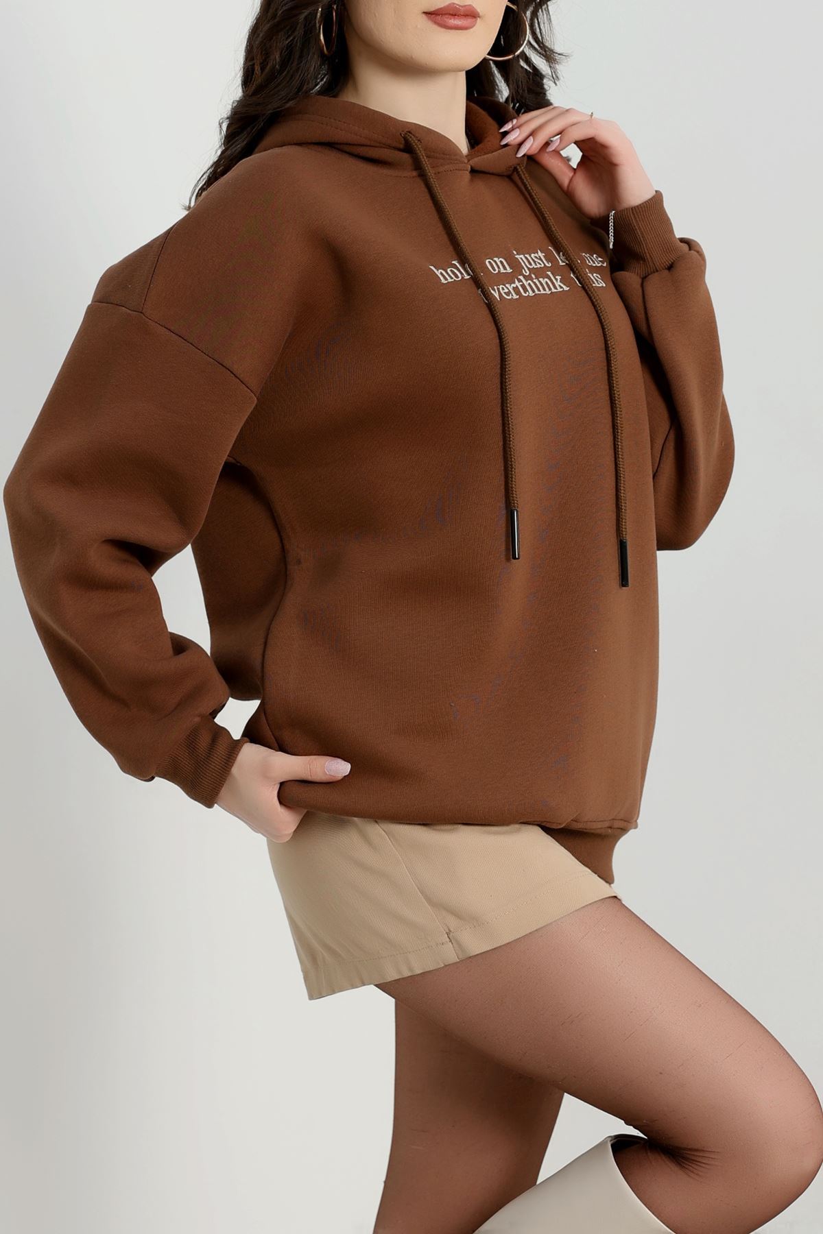 3 İplik Kapşonlu Sweat Kahve - 20074.1878.