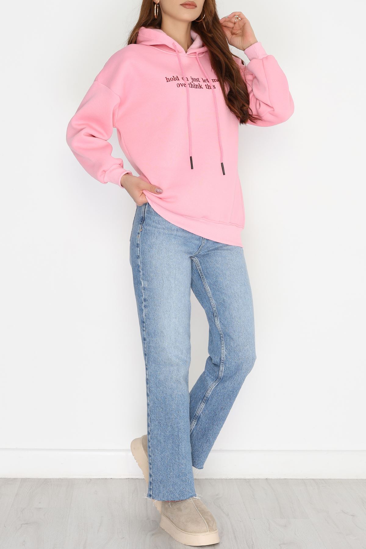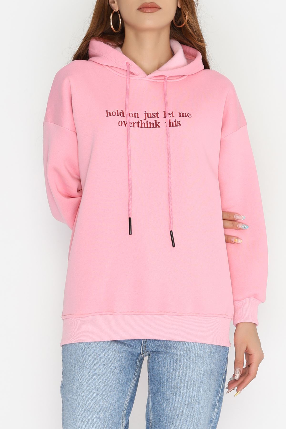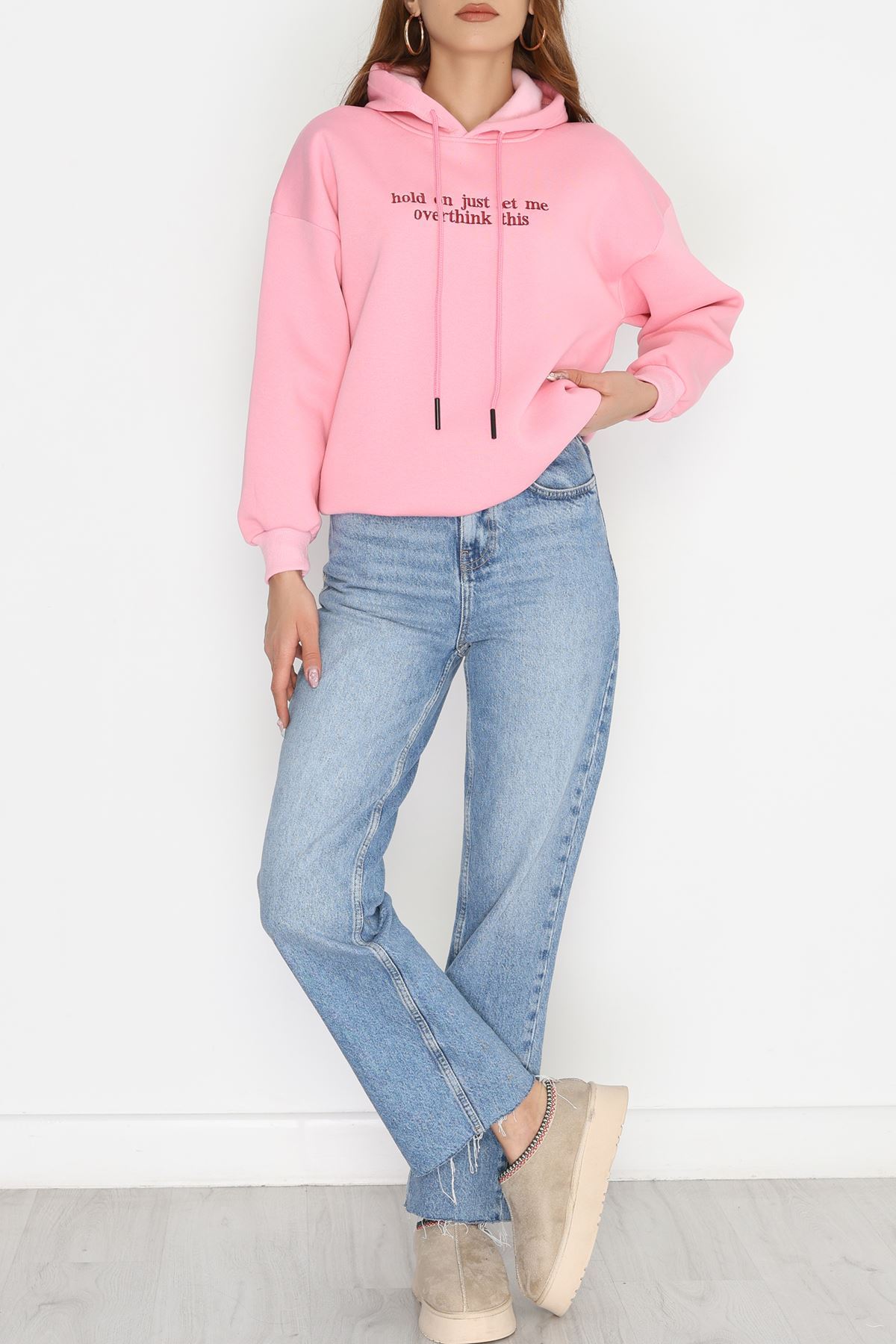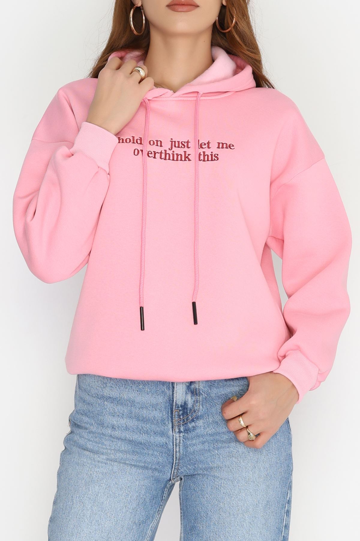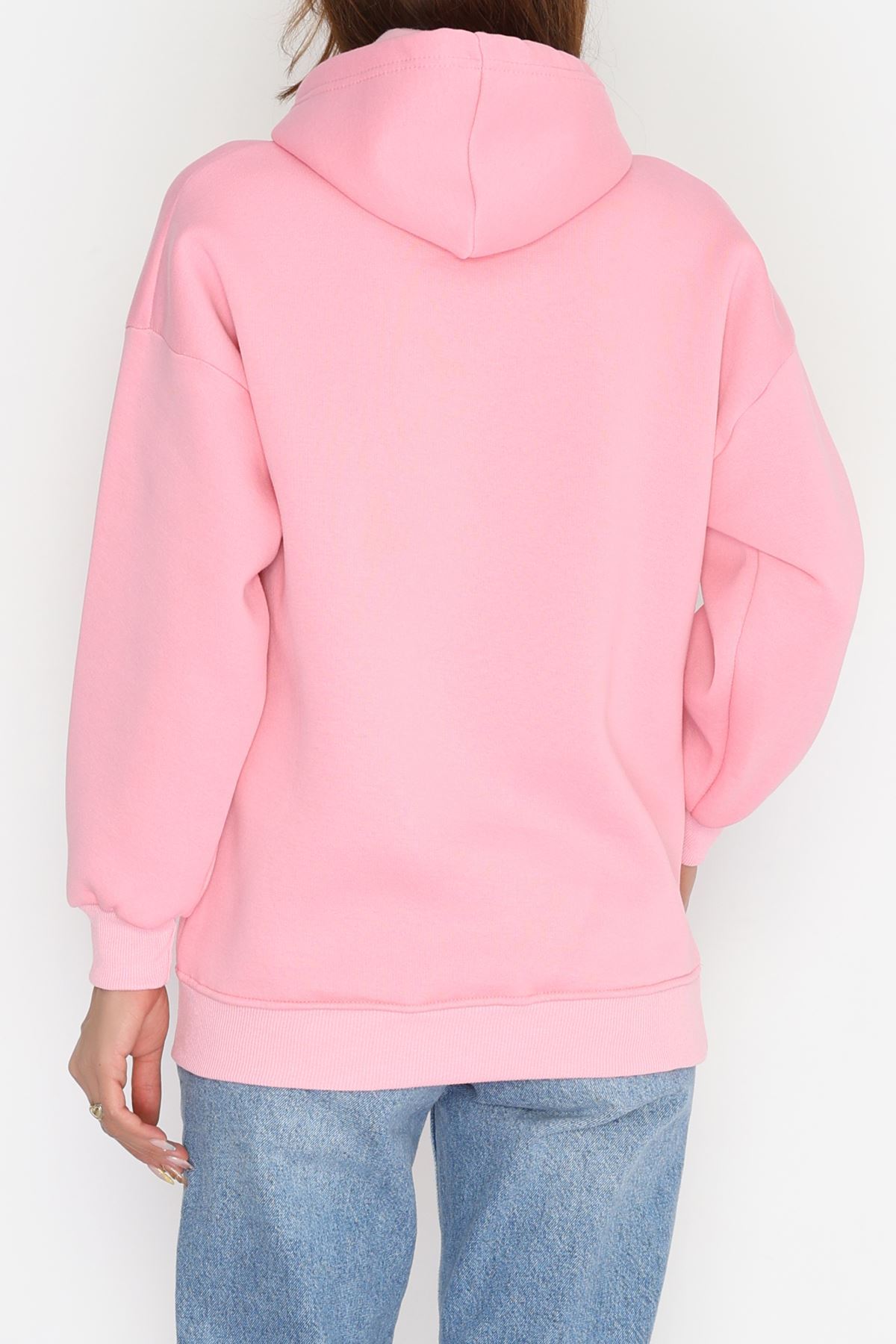 3 İplik Kapşonlu Nakışlı Sweat Pembebordo - 42221.1878.