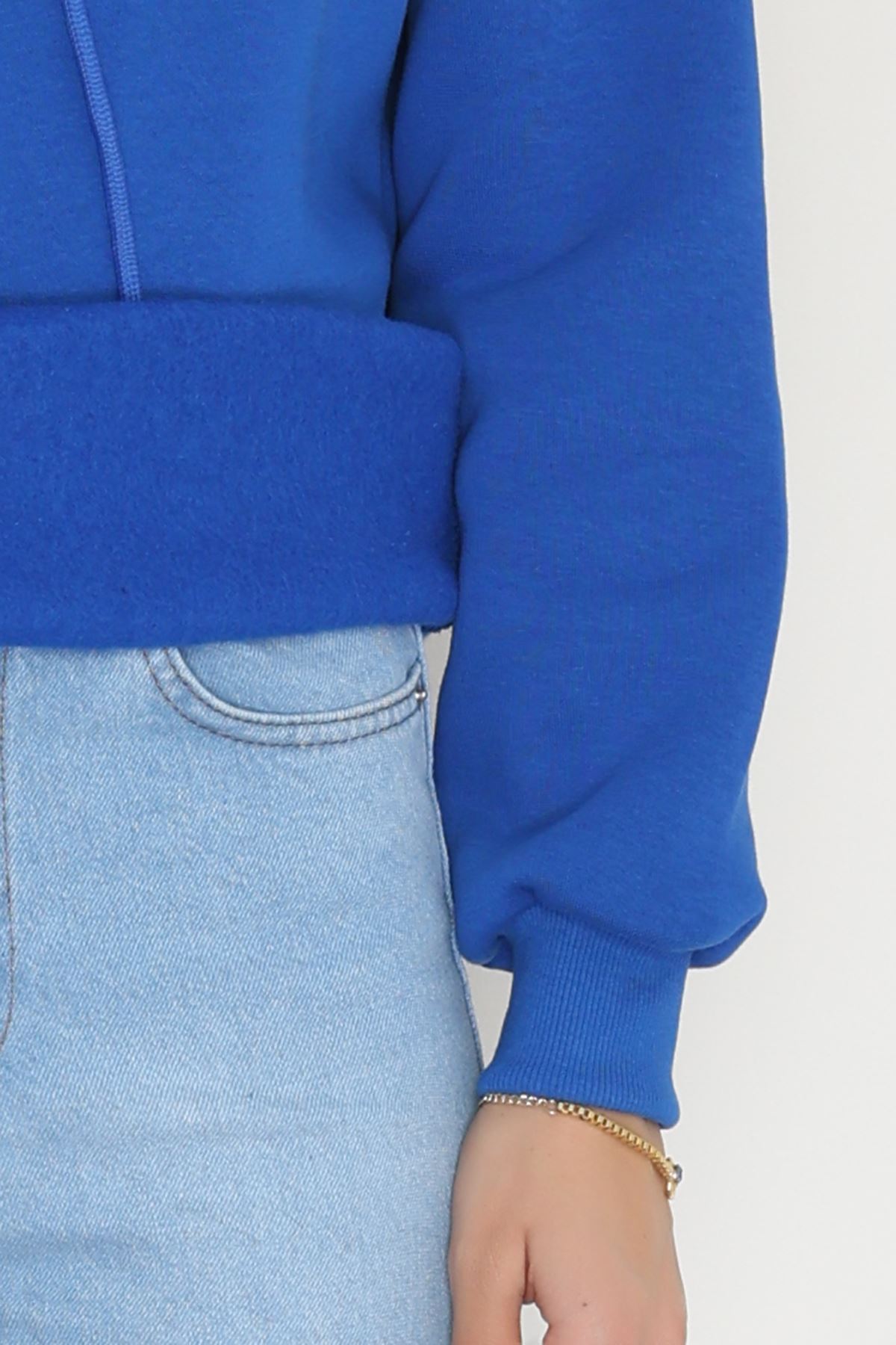 3 İplik Kapşonlu Nakışlı Sweat Saks - 42221.1878.