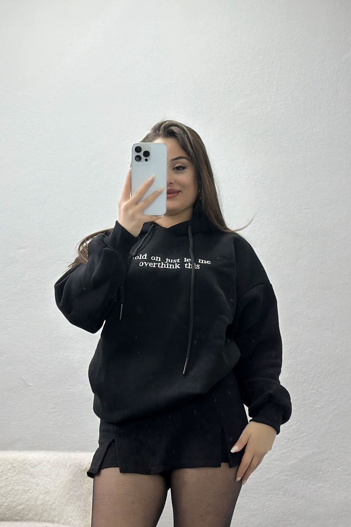 3 İplik Kapşonlu Nakışlı Sweat Siyahbeyaz - 42221.1878.