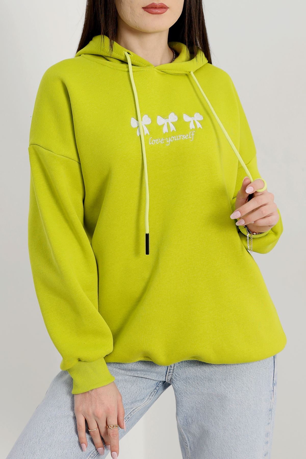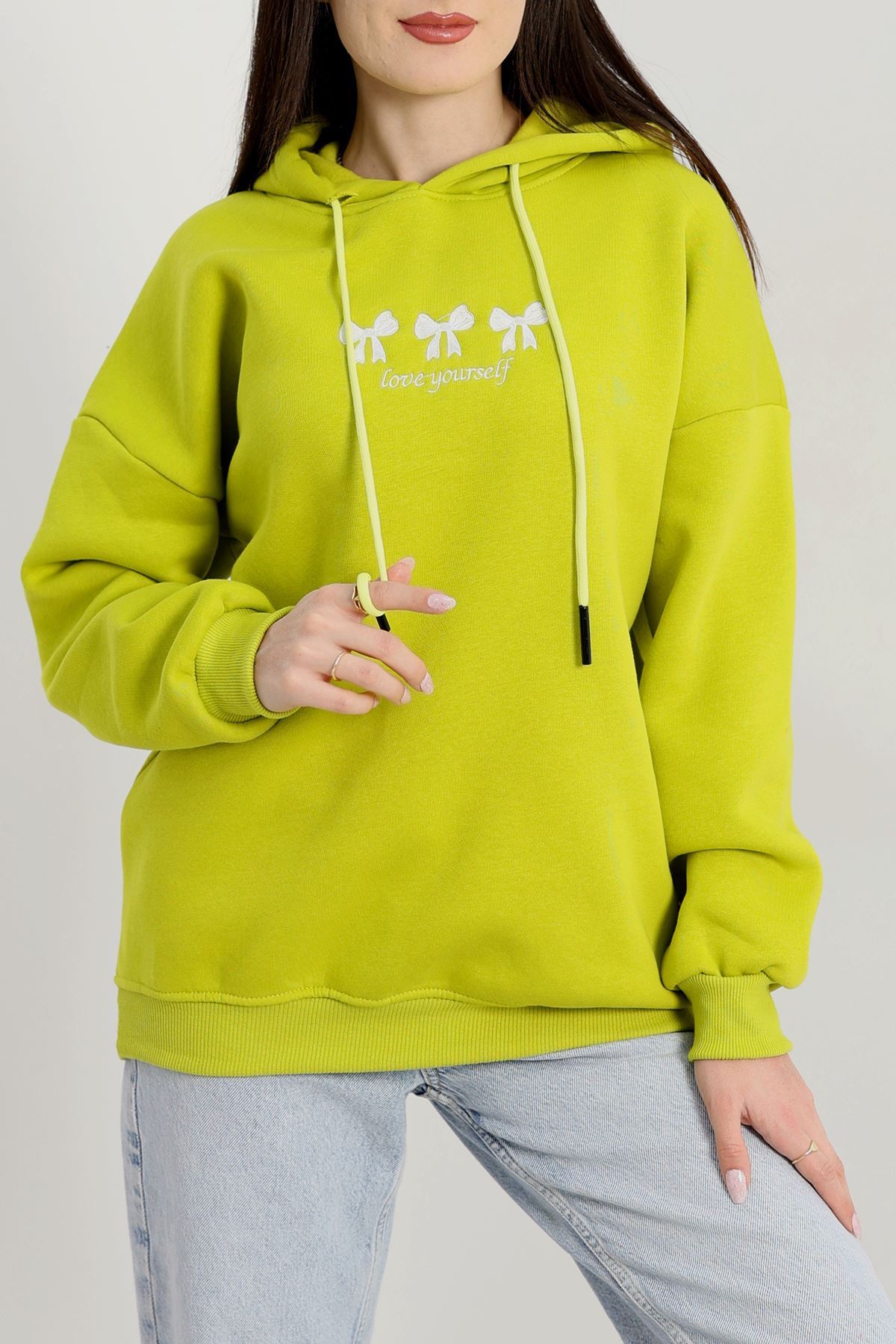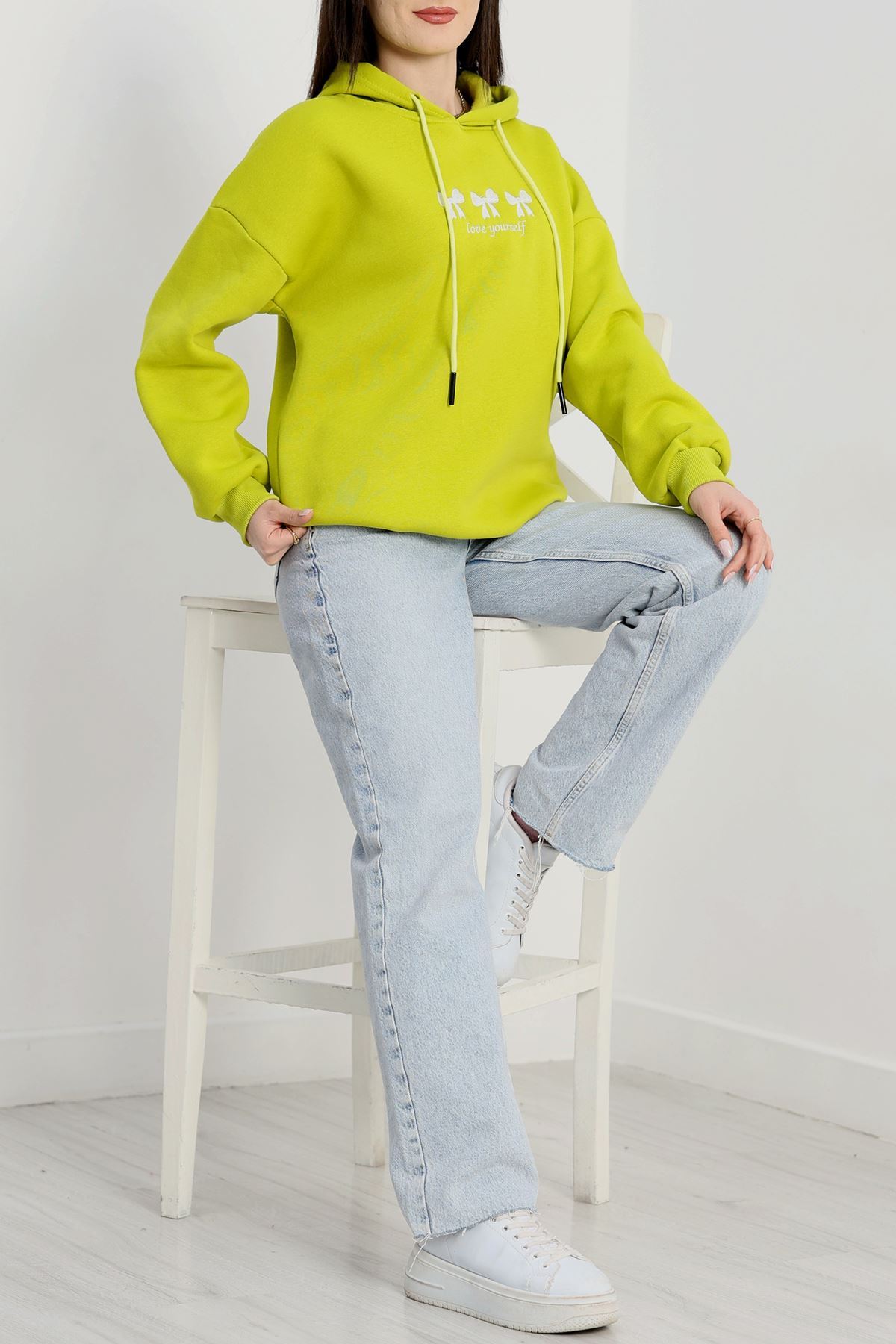 3 İplik Kapşonlu Nakışlı Sweat Yağyeşilibeyaz - 42219.1878.