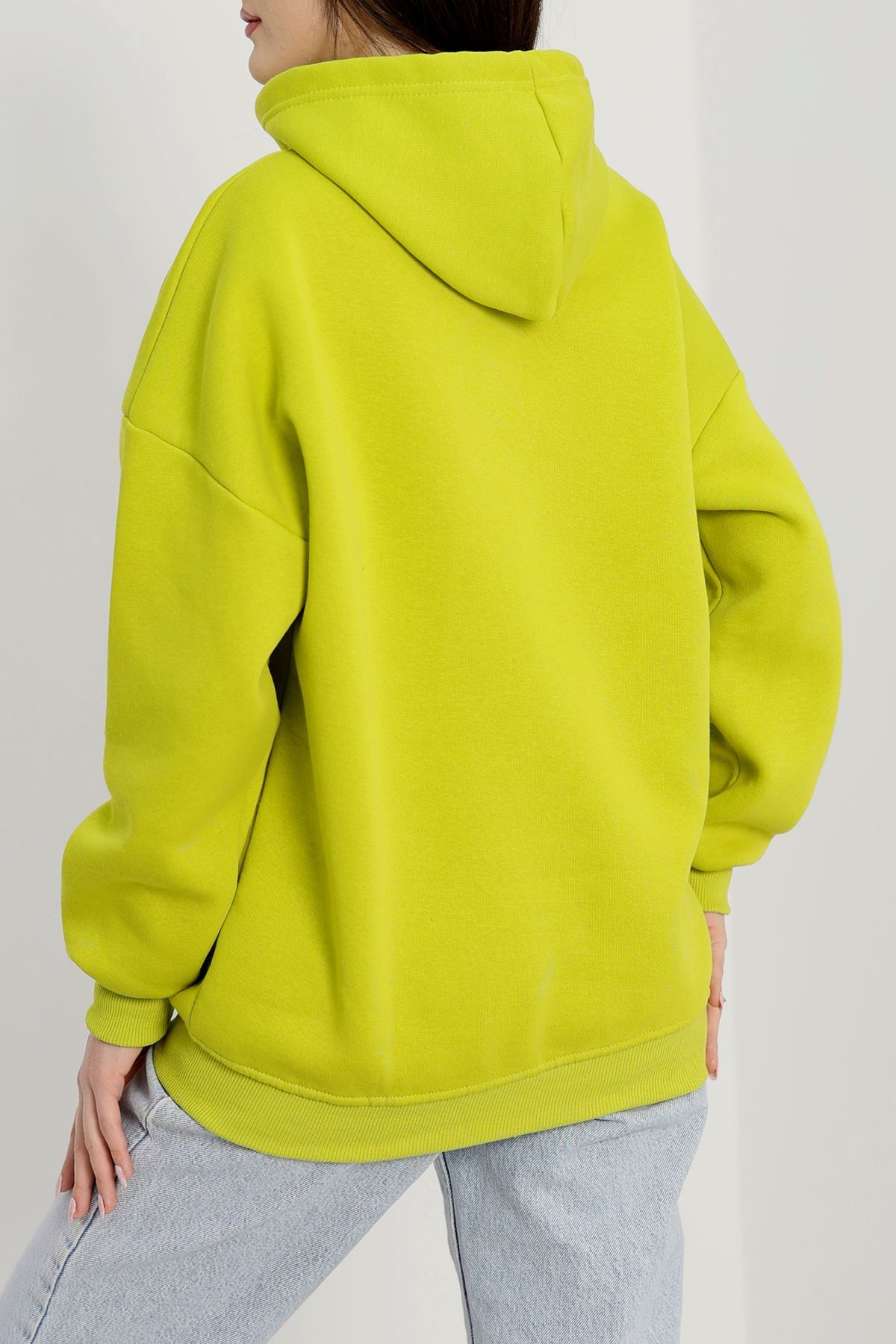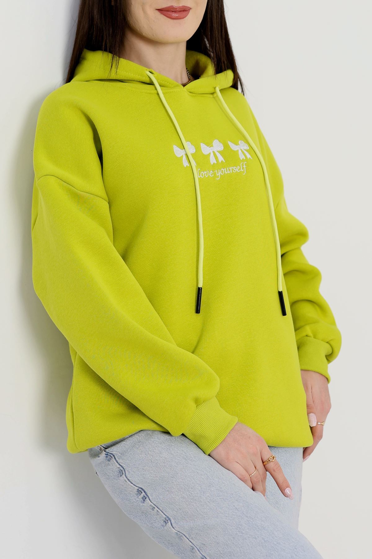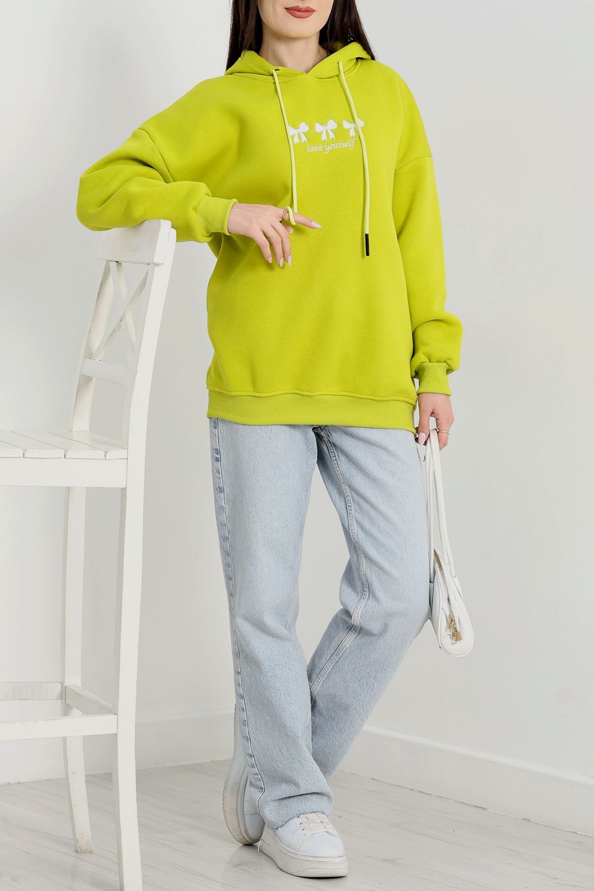 3 İplik Kapşonlu Nakışlı Sweat Yağyeşilibeyaz - 42219.1878.