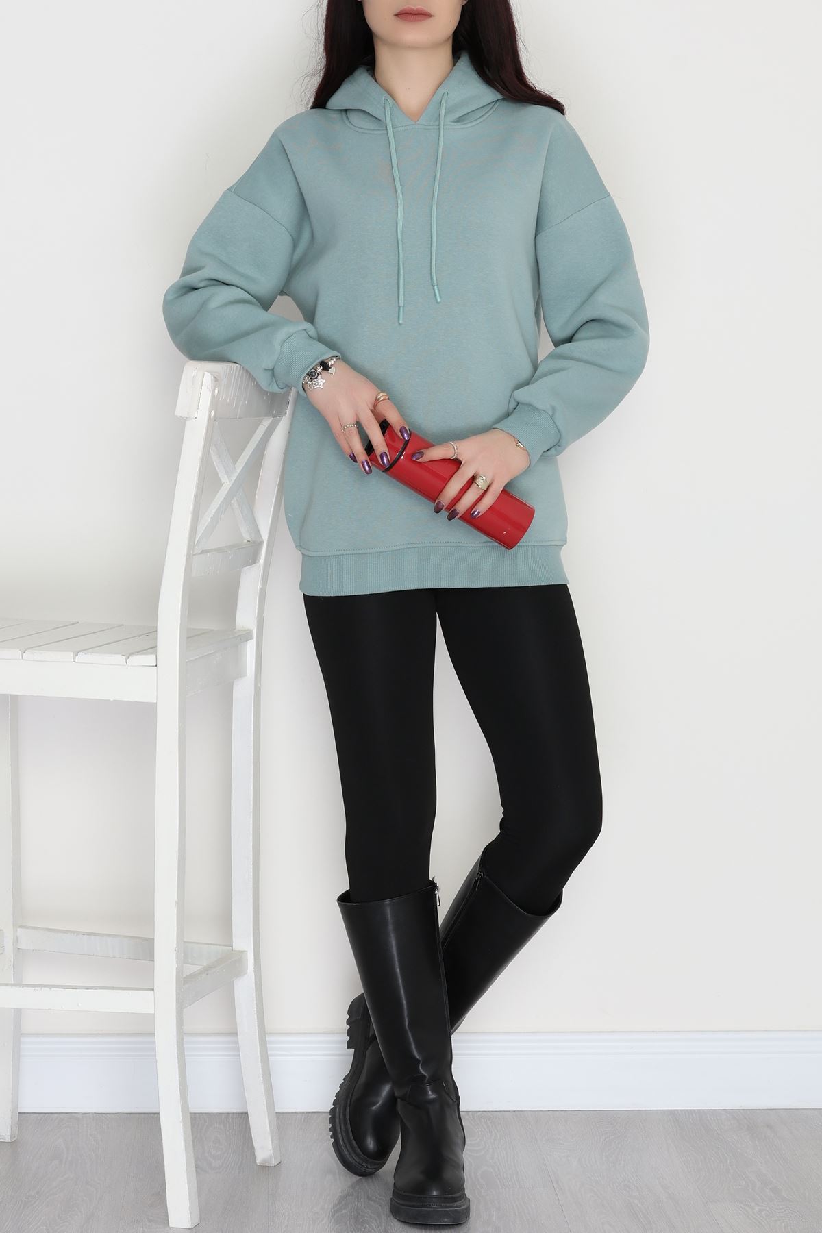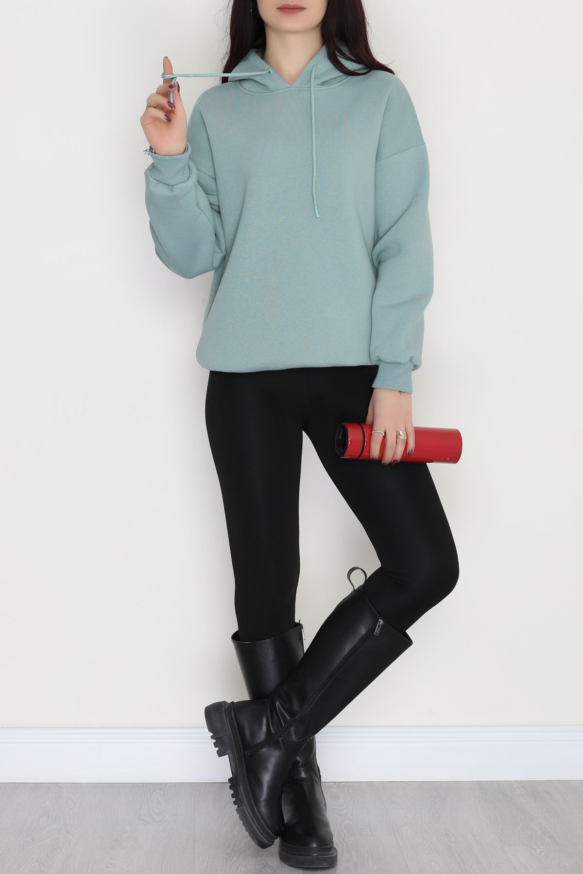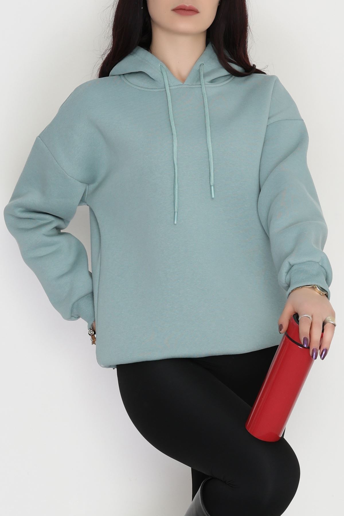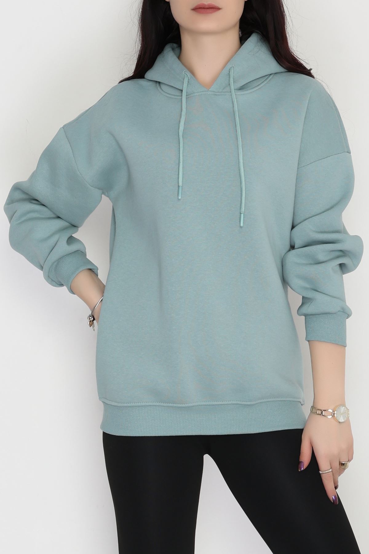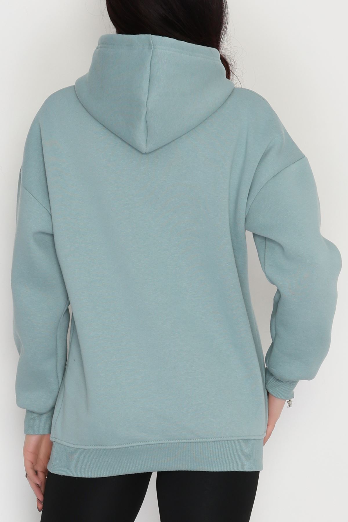 3 İplik Kapşonlu Sweat Çağla - 20074.1878.