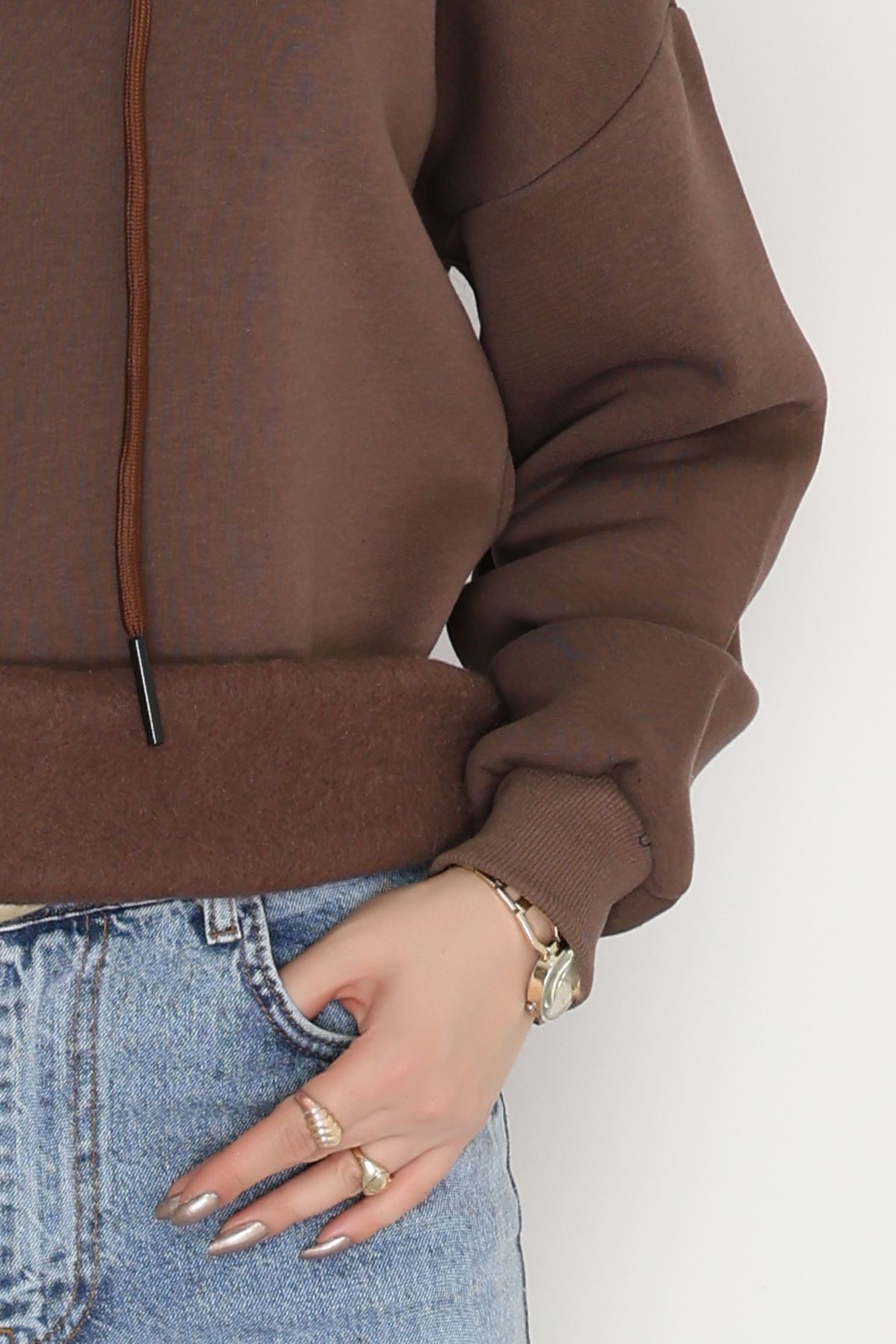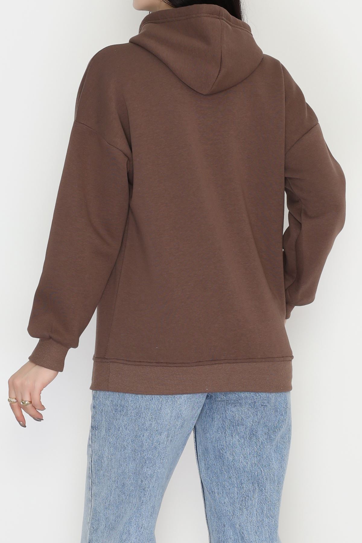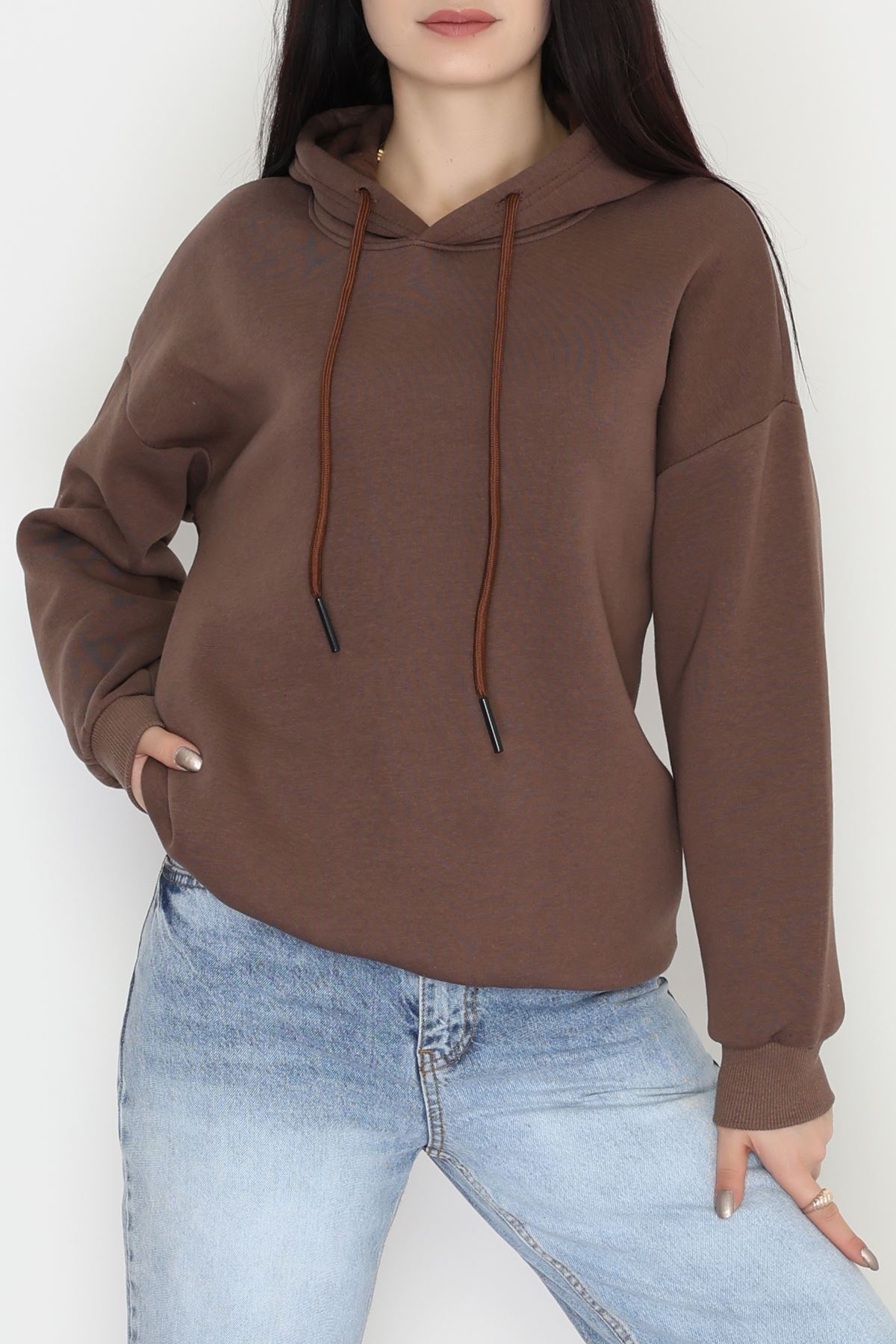 3 İplik Kapşonlu Sweat Kahve - 20074.1878.