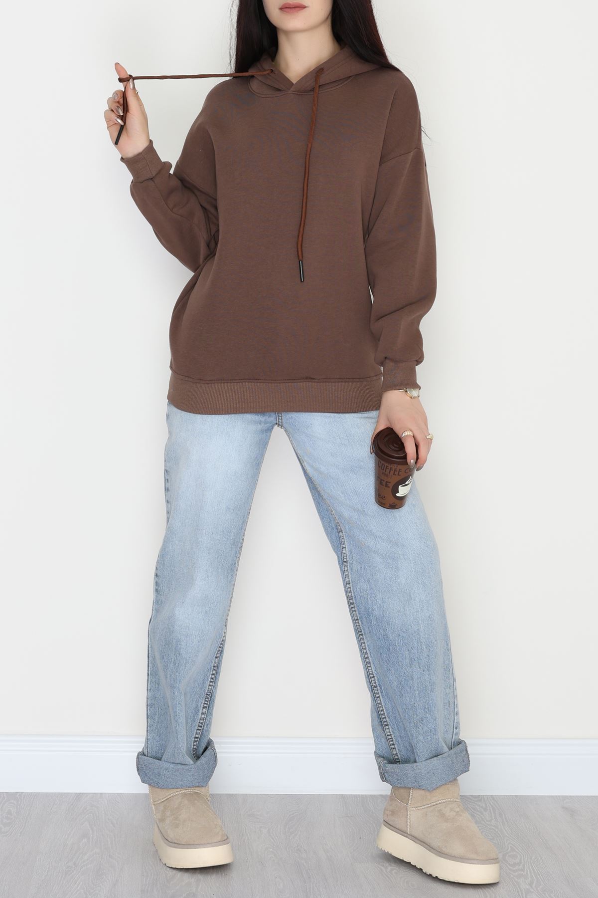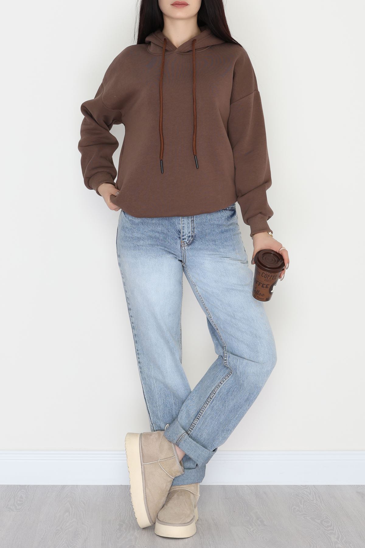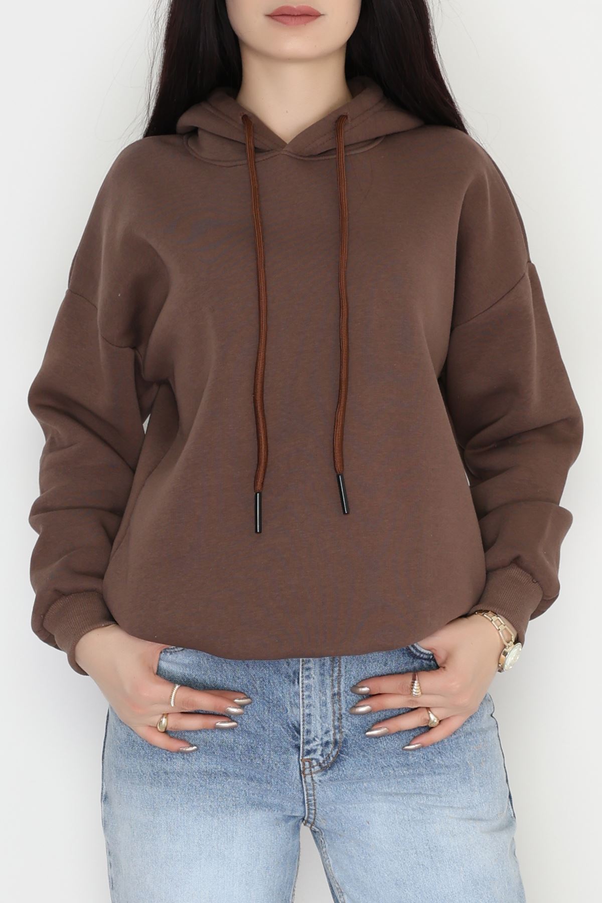 3 İplik Kapşonlu Sweat Kahve - 20074.1878.
