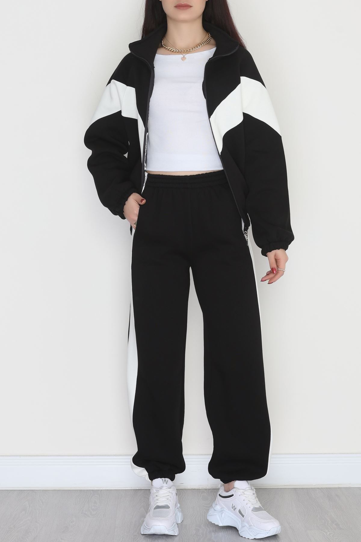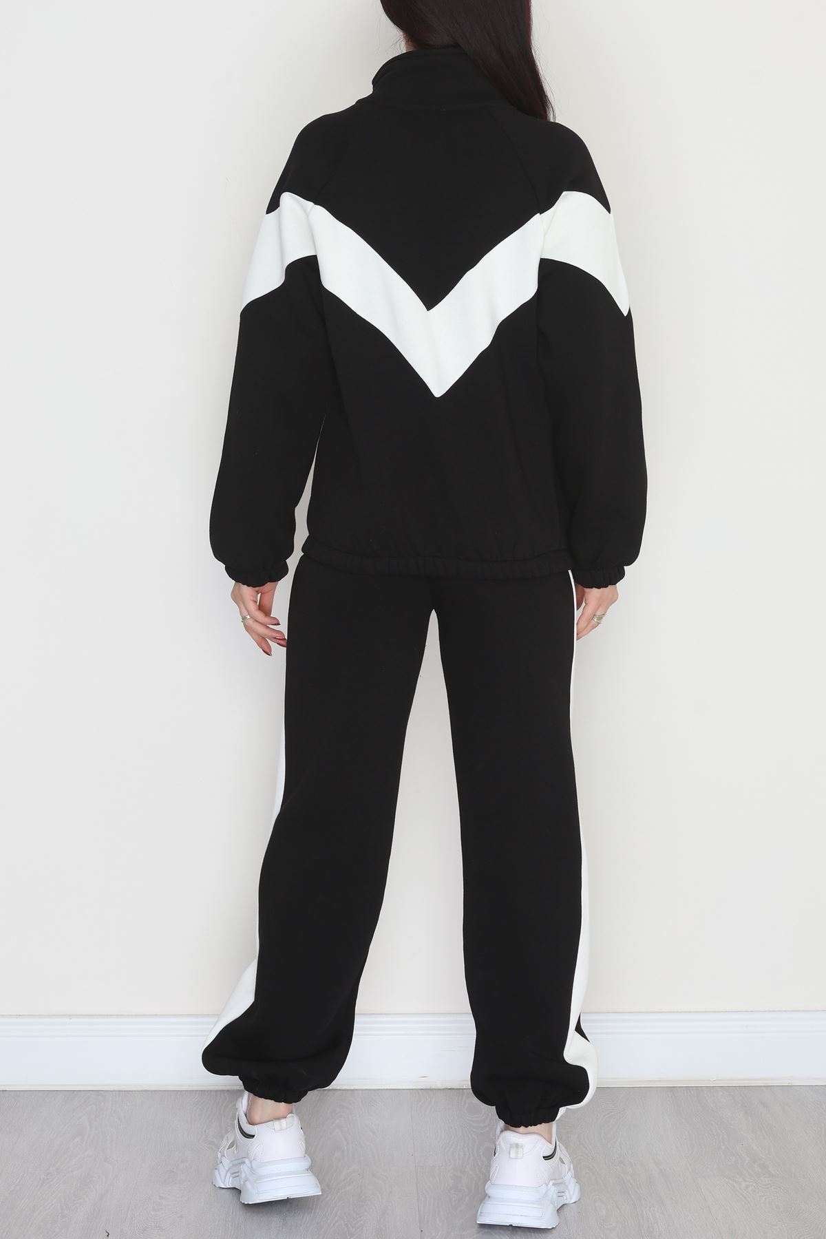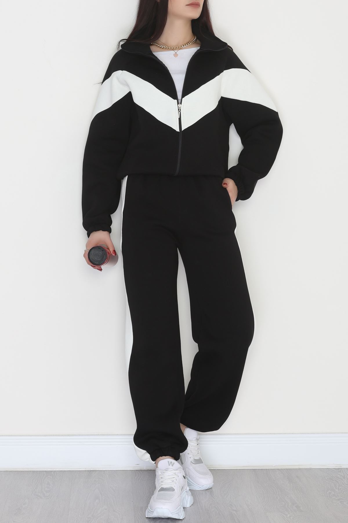 3 İplik Kompakt Fermuarlı Eşofman Takım Siyahekru - 42523.1878.