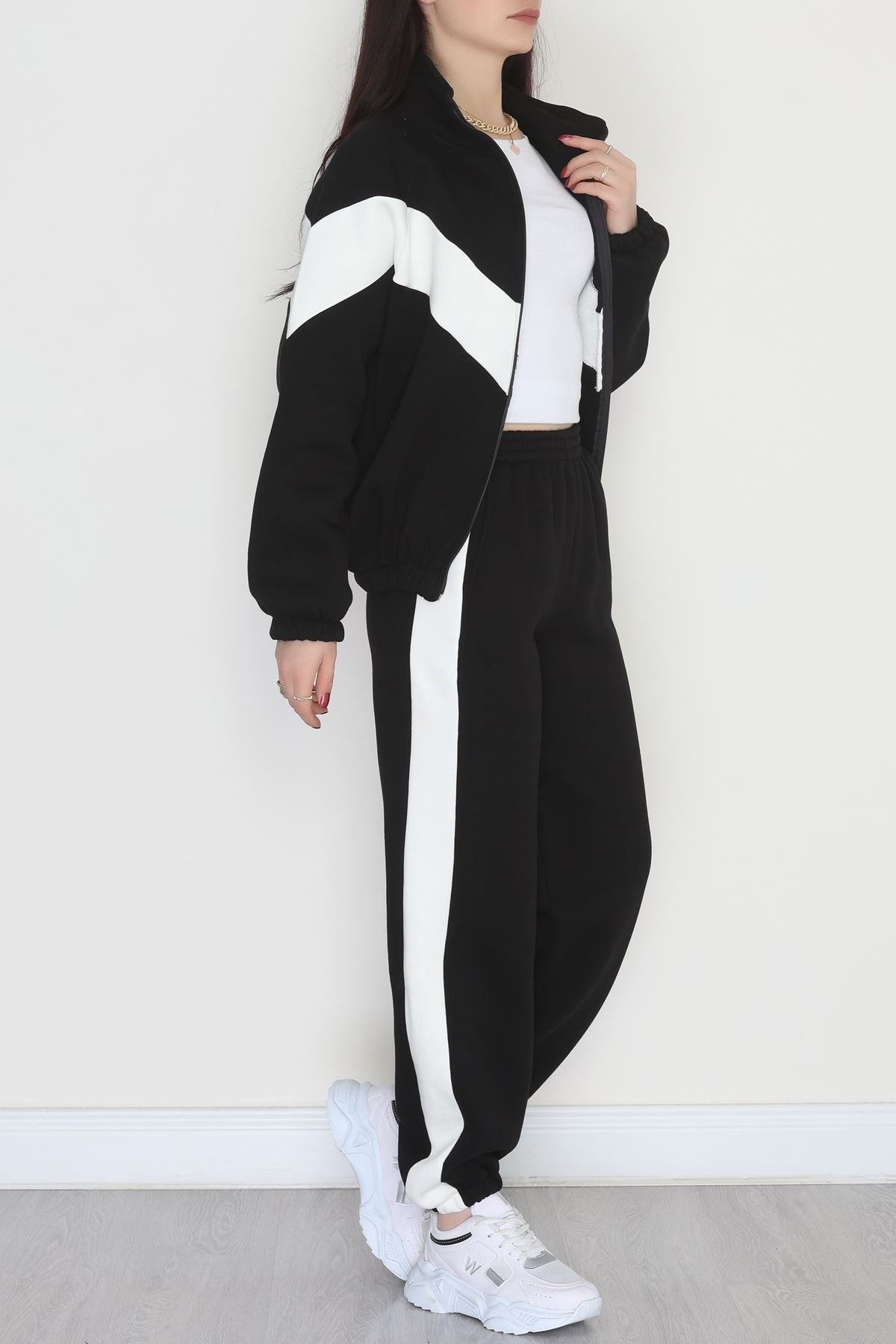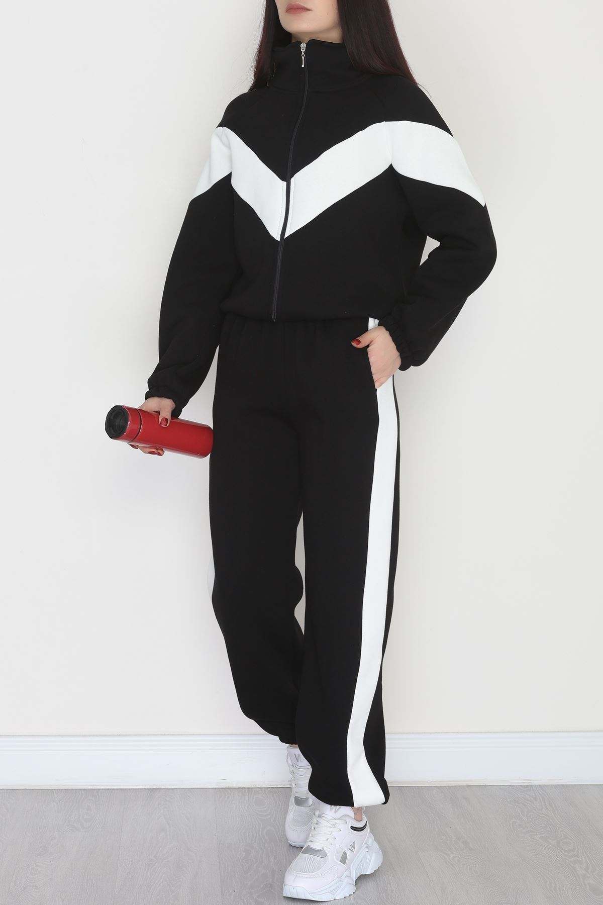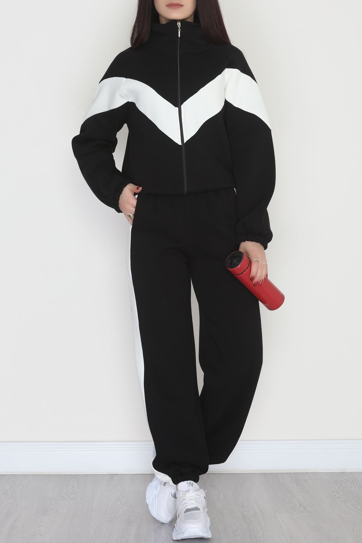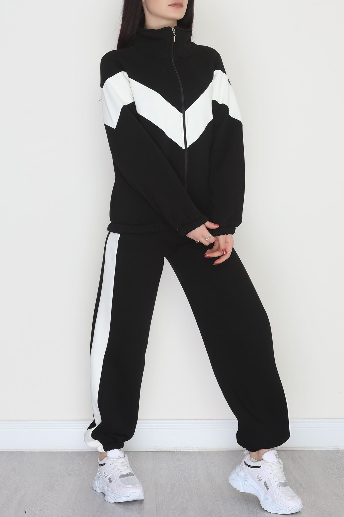 3 İplik Kompakt Fermuarlı Eşofman Takım Siyahekru - 42523.1878.