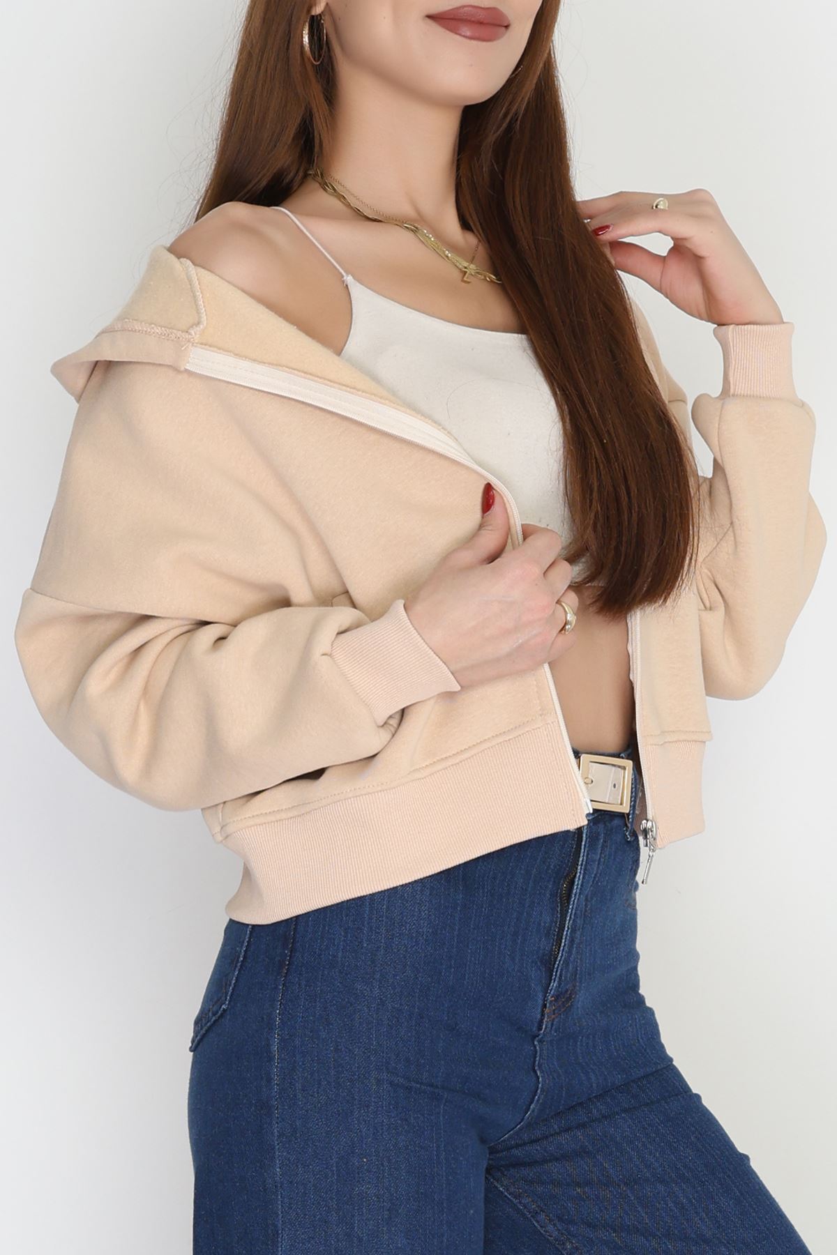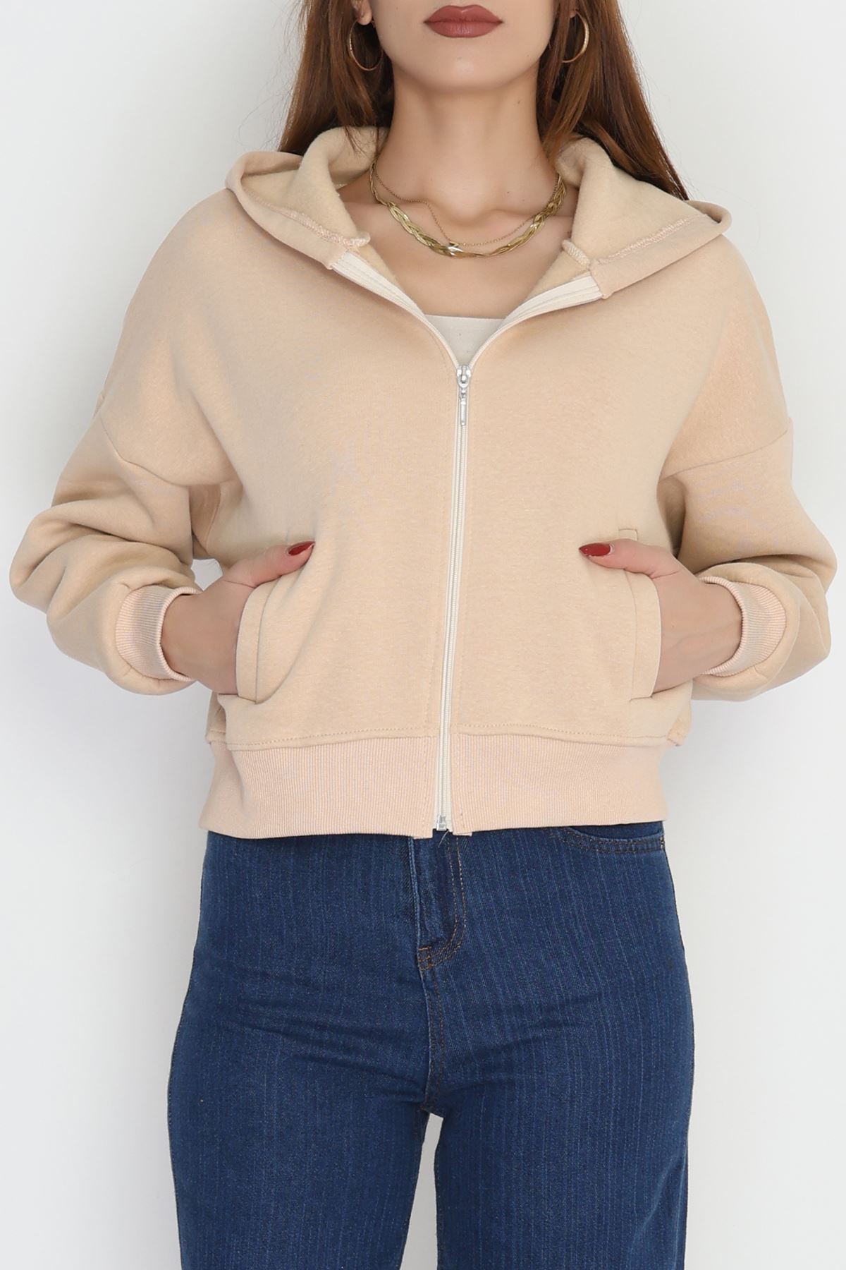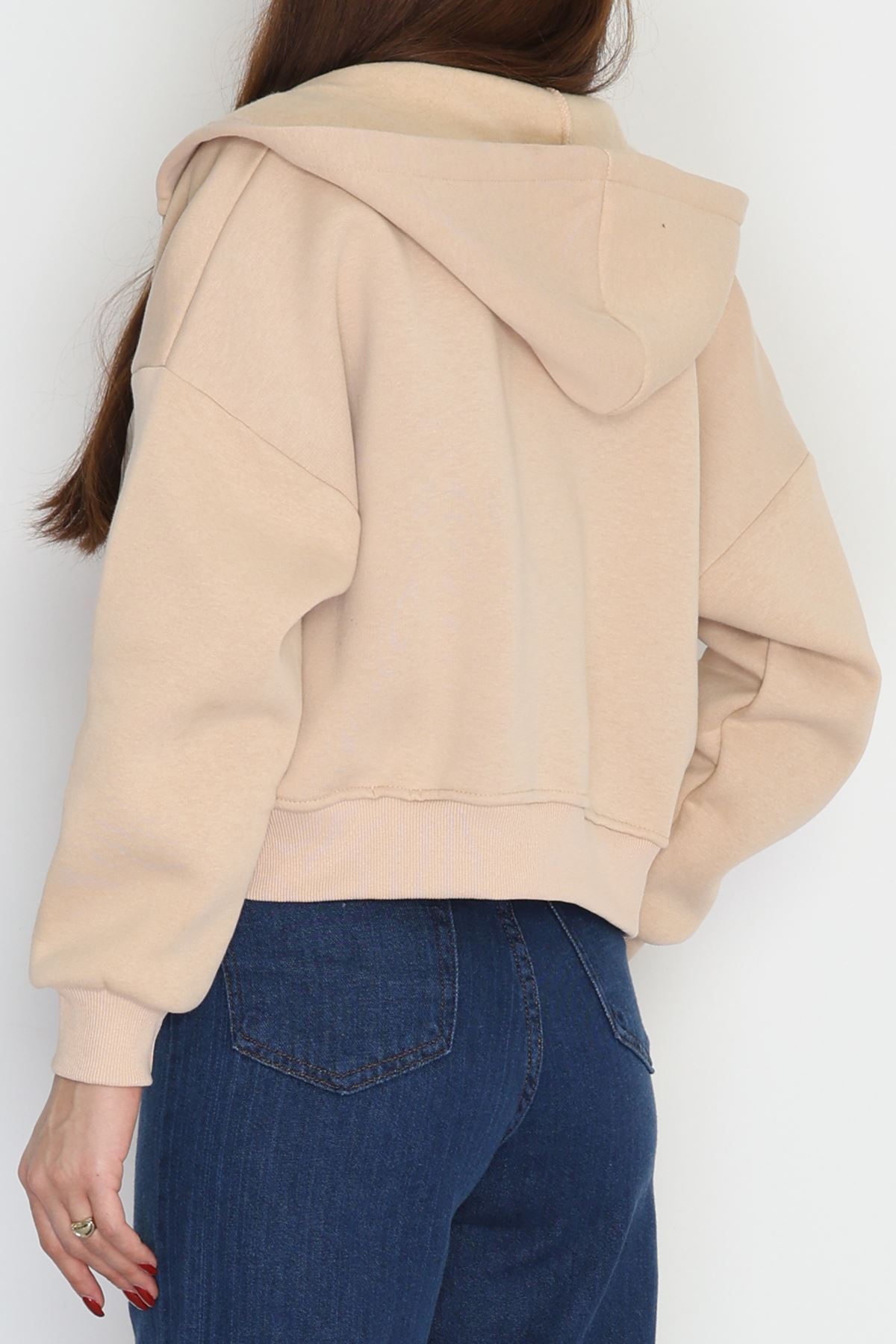 3 İplik Kompakt Oversize Fleto Cepli Sweat Bej - 42506.1878.