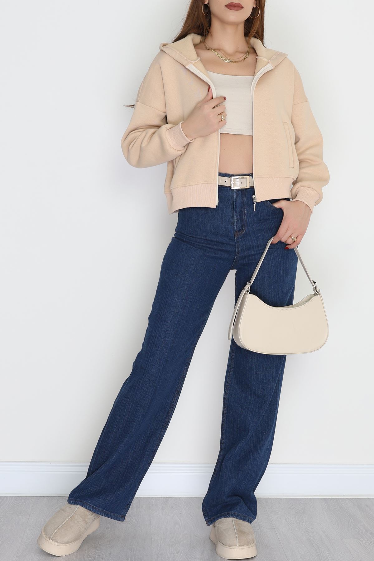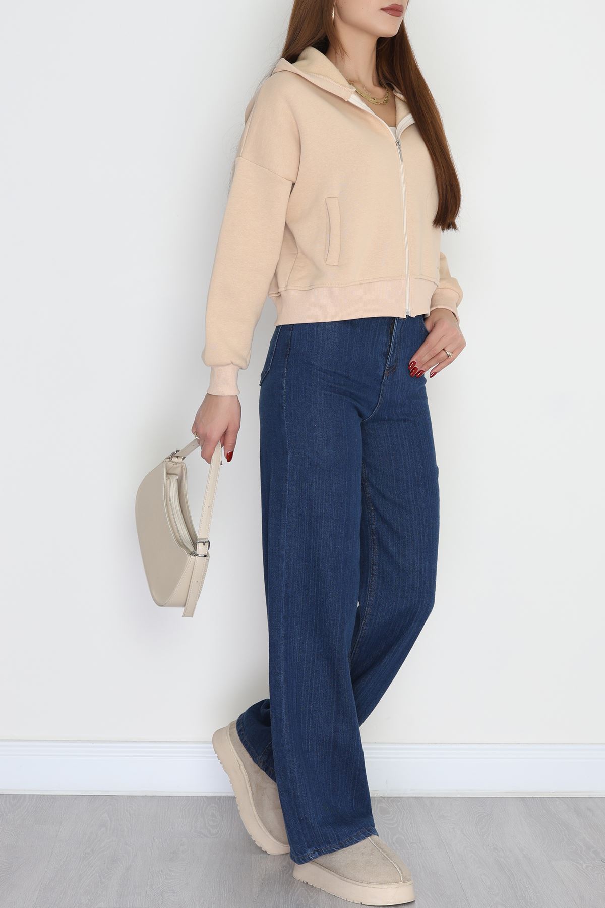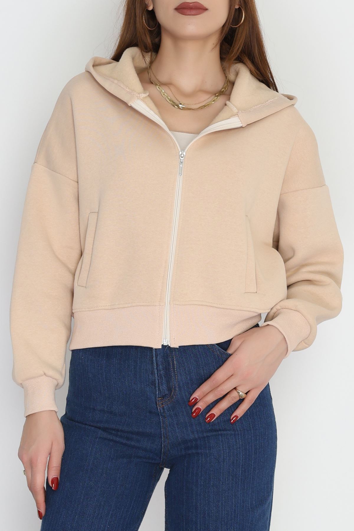 3 İplik Kompakt Oversize Fleto Cepli Sweat Bej - 42506.1878.