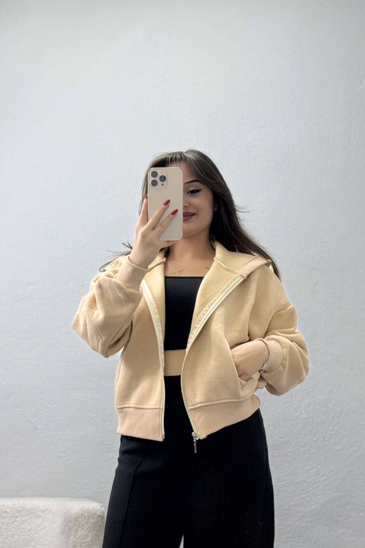 3 İplik Kompakt Oversize Fleto Cepli Sweat Bej - 42506.1878.