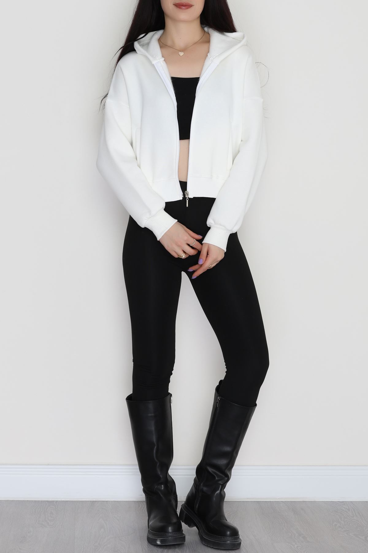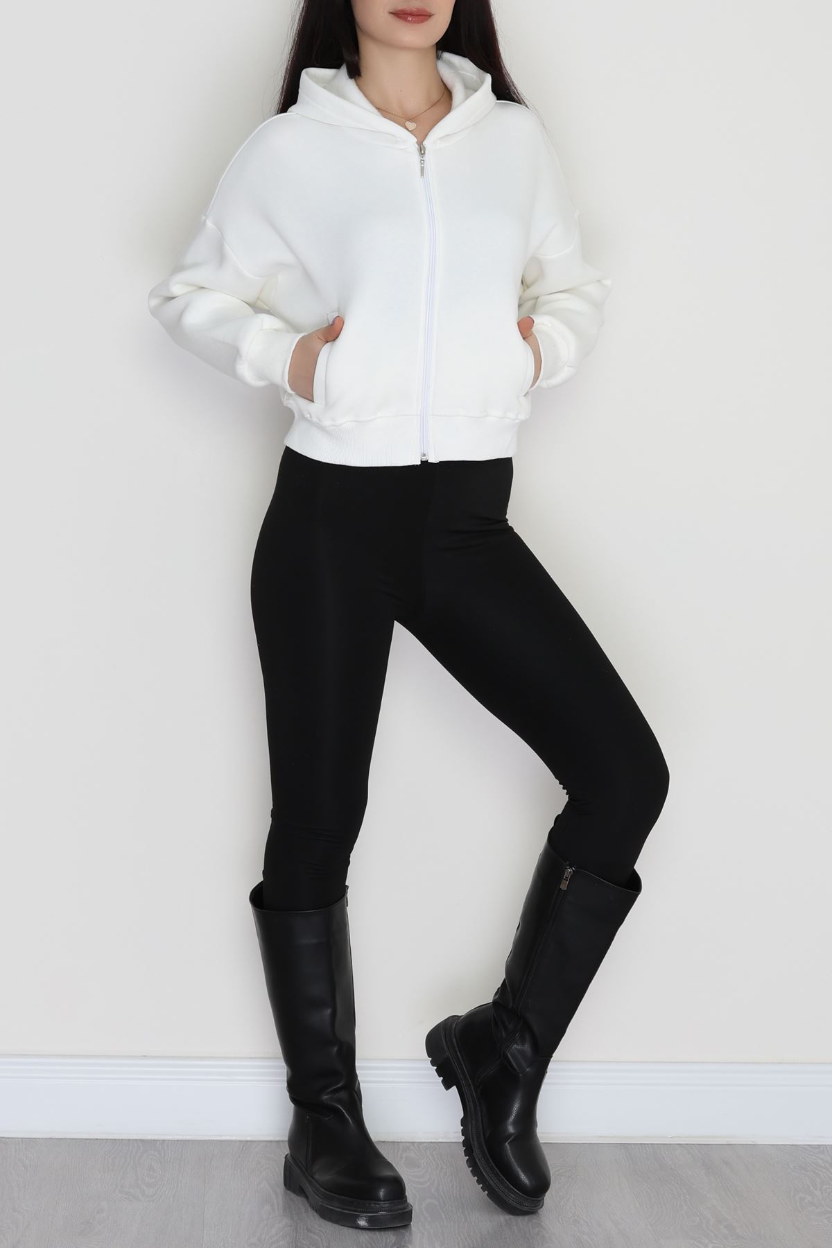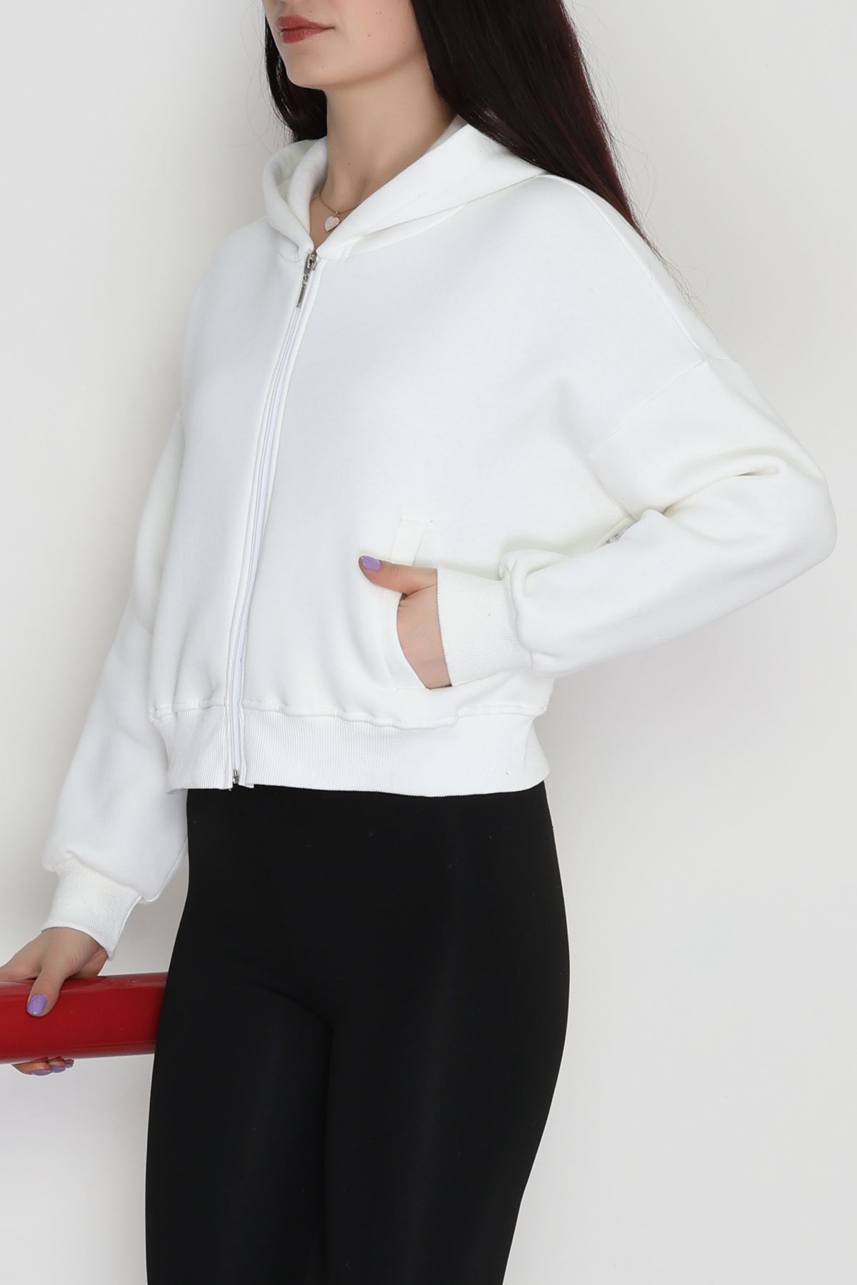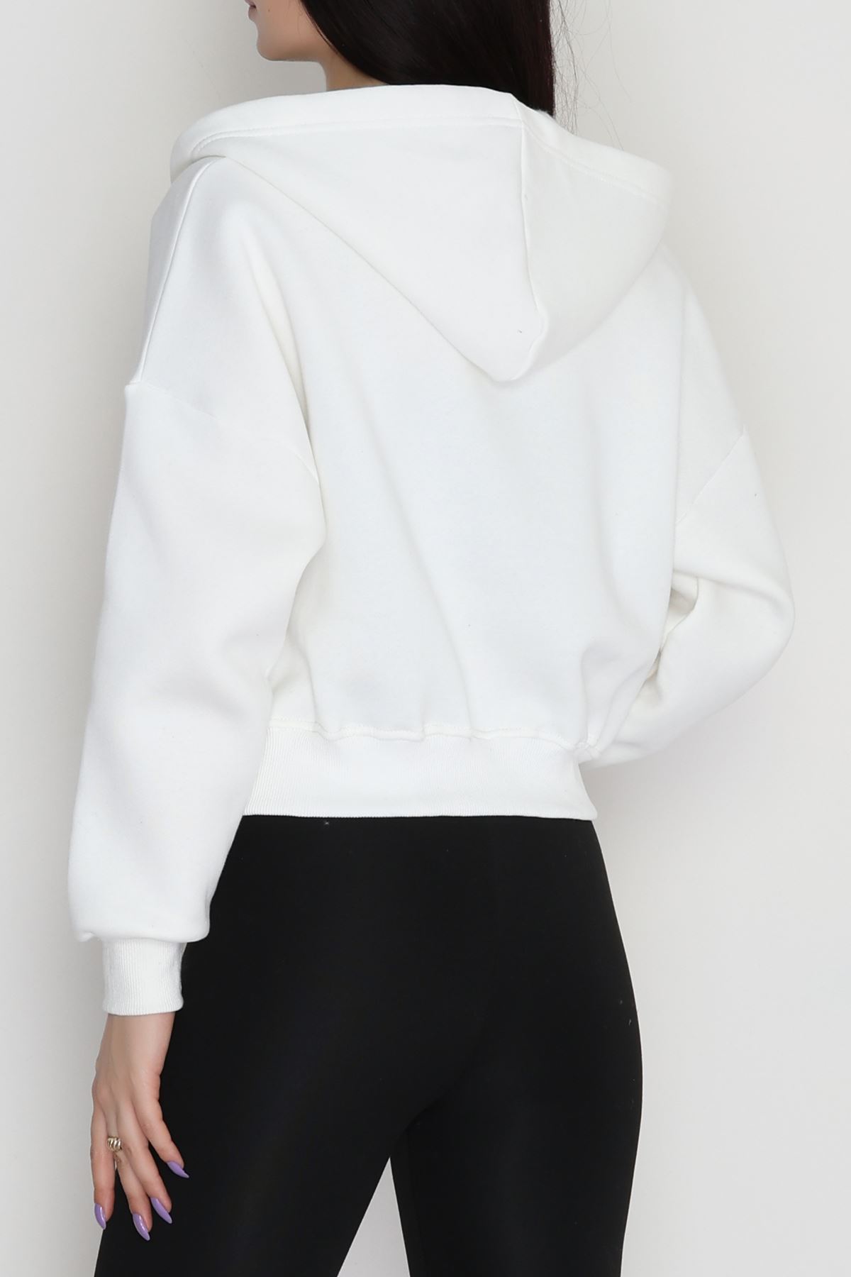 3 İplik Kanguru Cepli Kapşonlu Sweat Beyaz - 42250.1878.