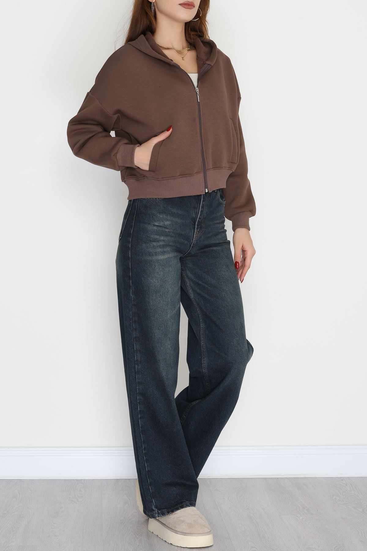 3 İplik Kompakt Oversize Fleto Cepli Sweat Kahve - 42506.1878.