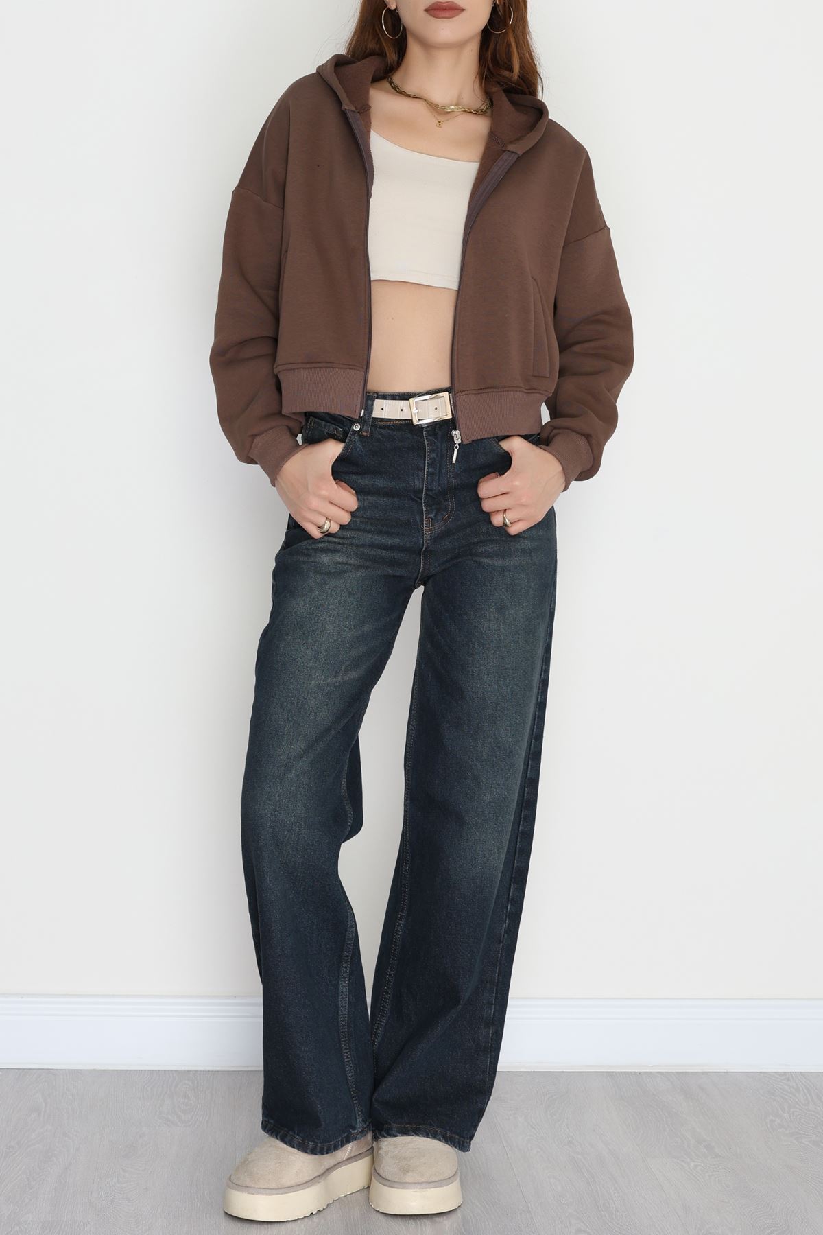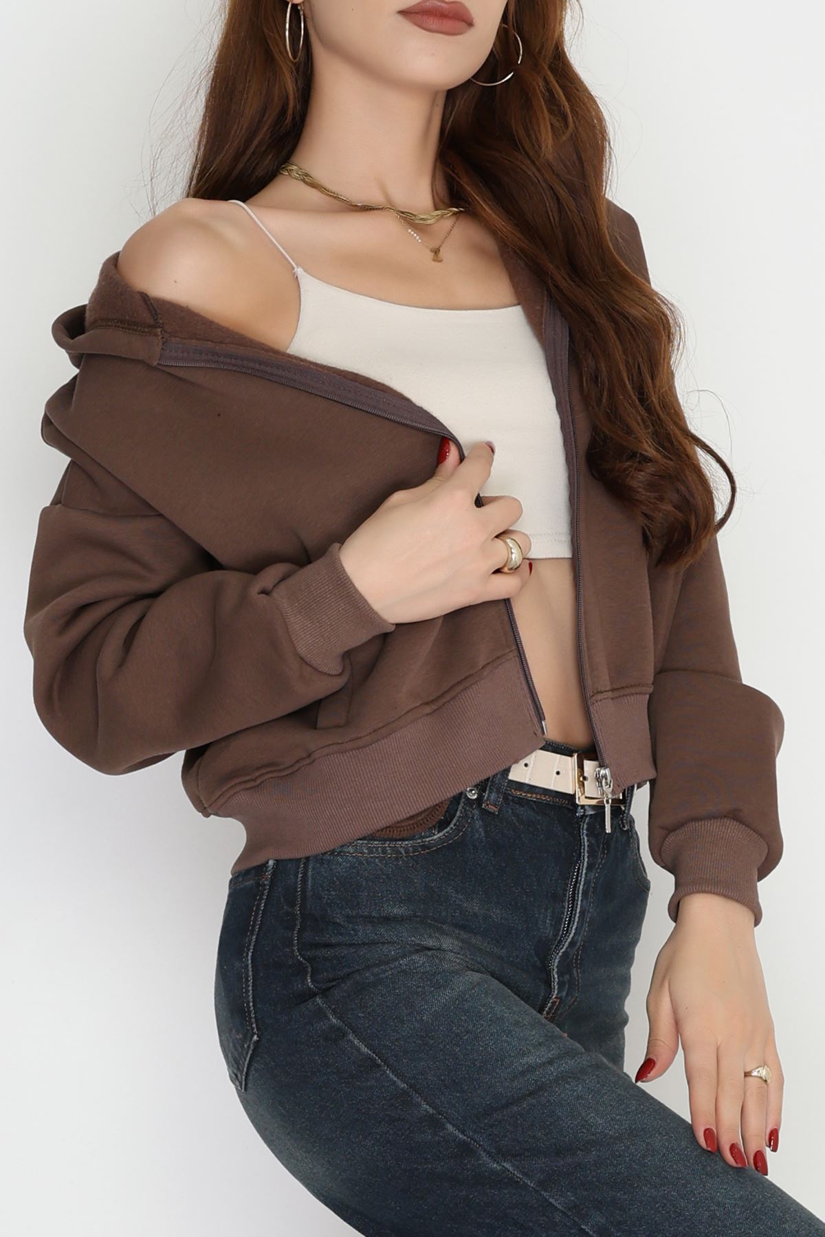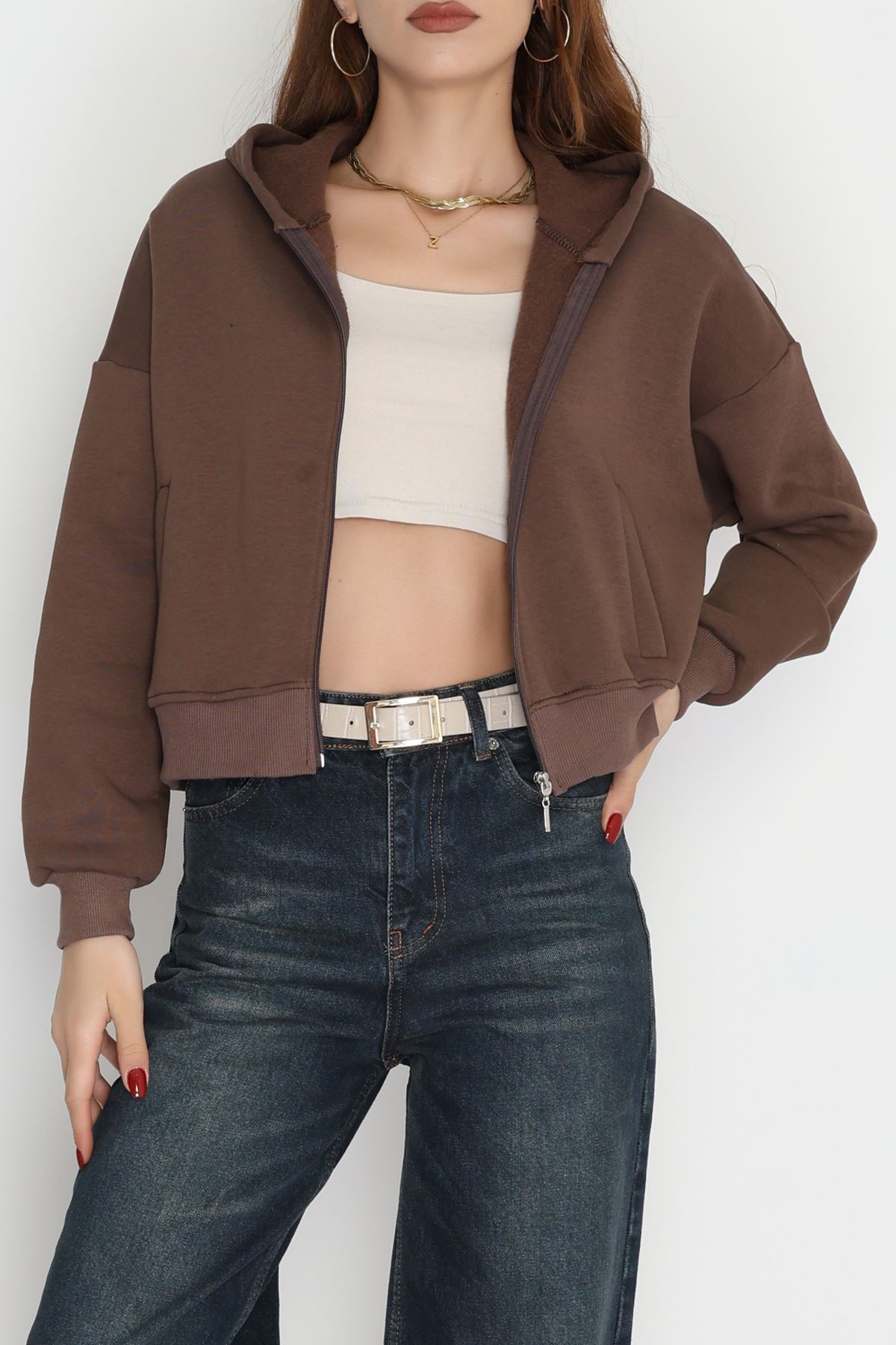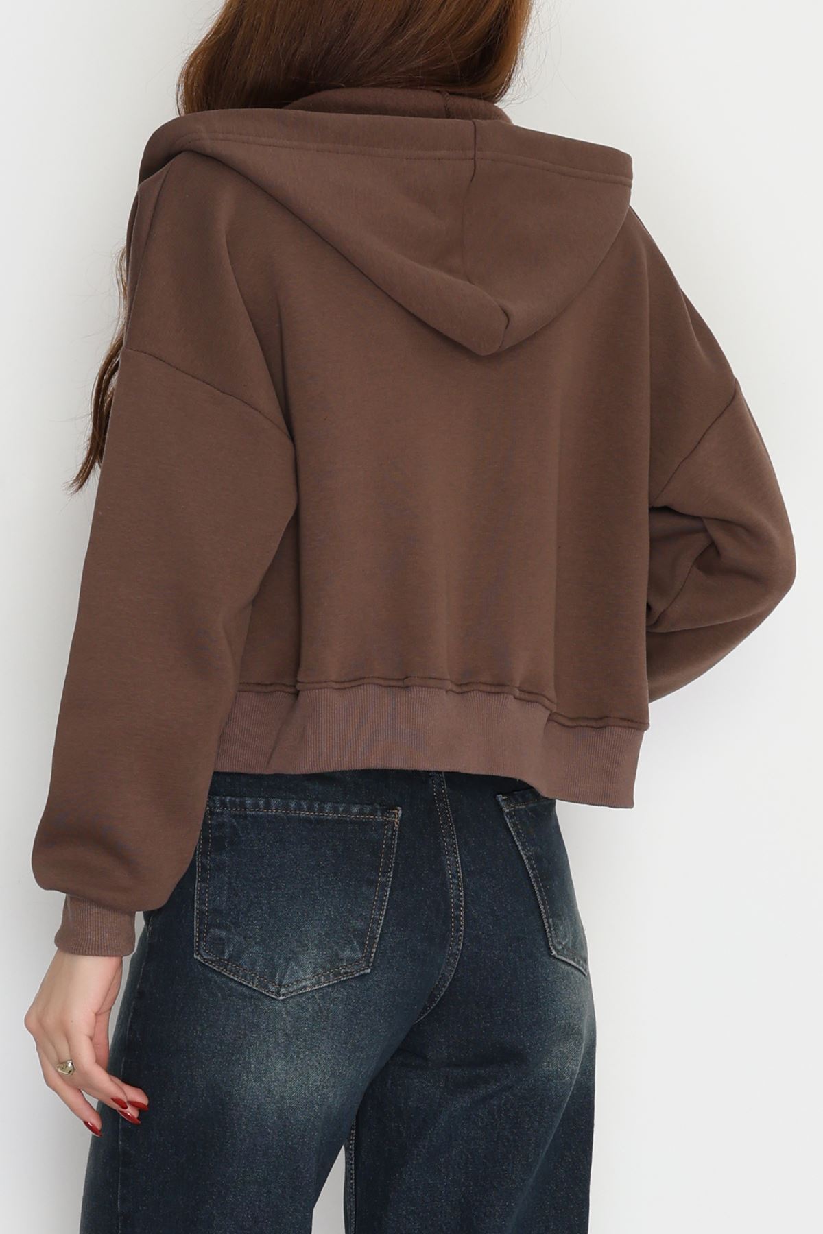 3 İplik Kanguru Cepli Kapşonlu Sweat Kahve - 42251.1878.