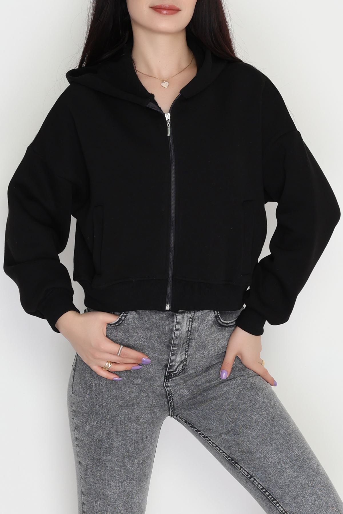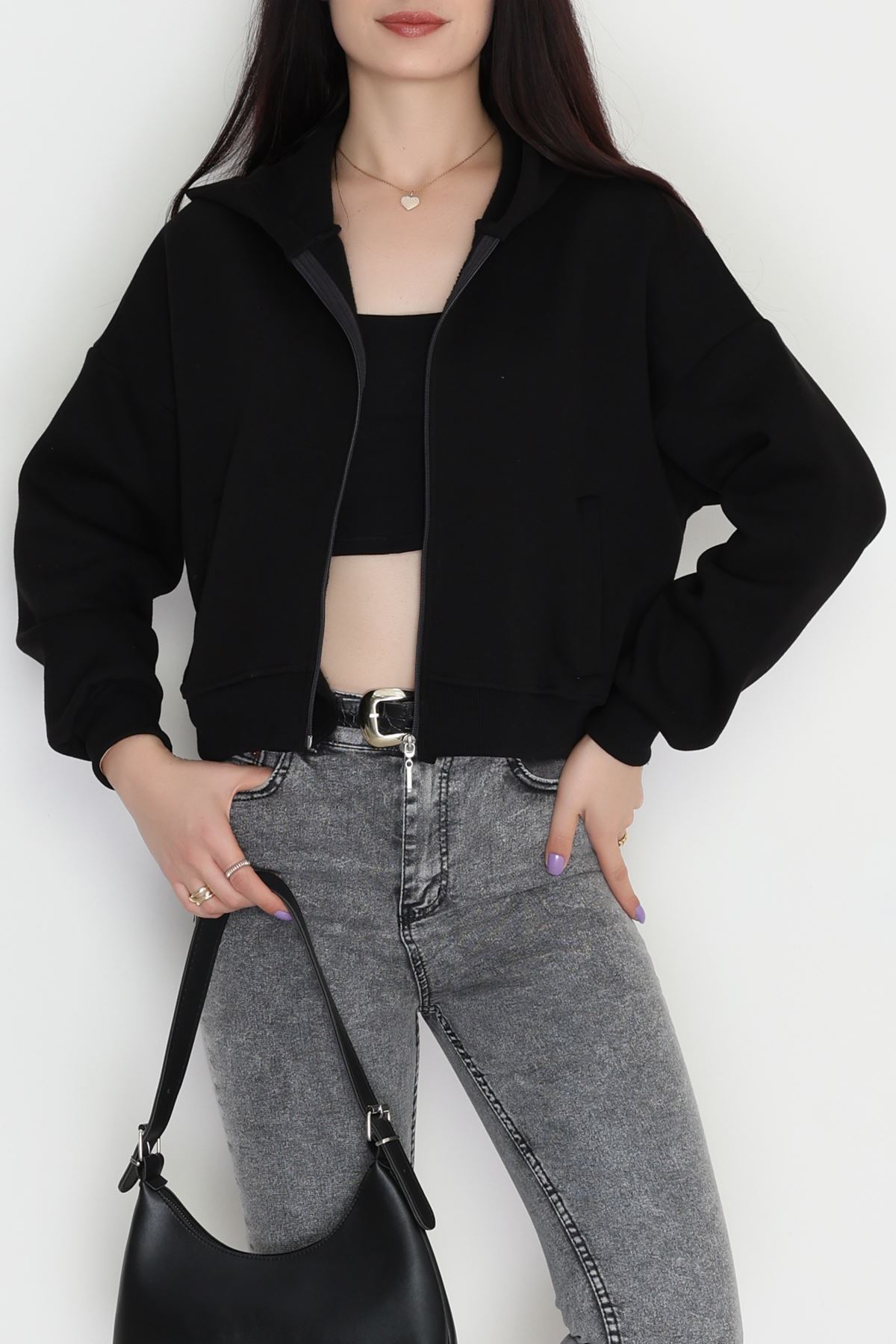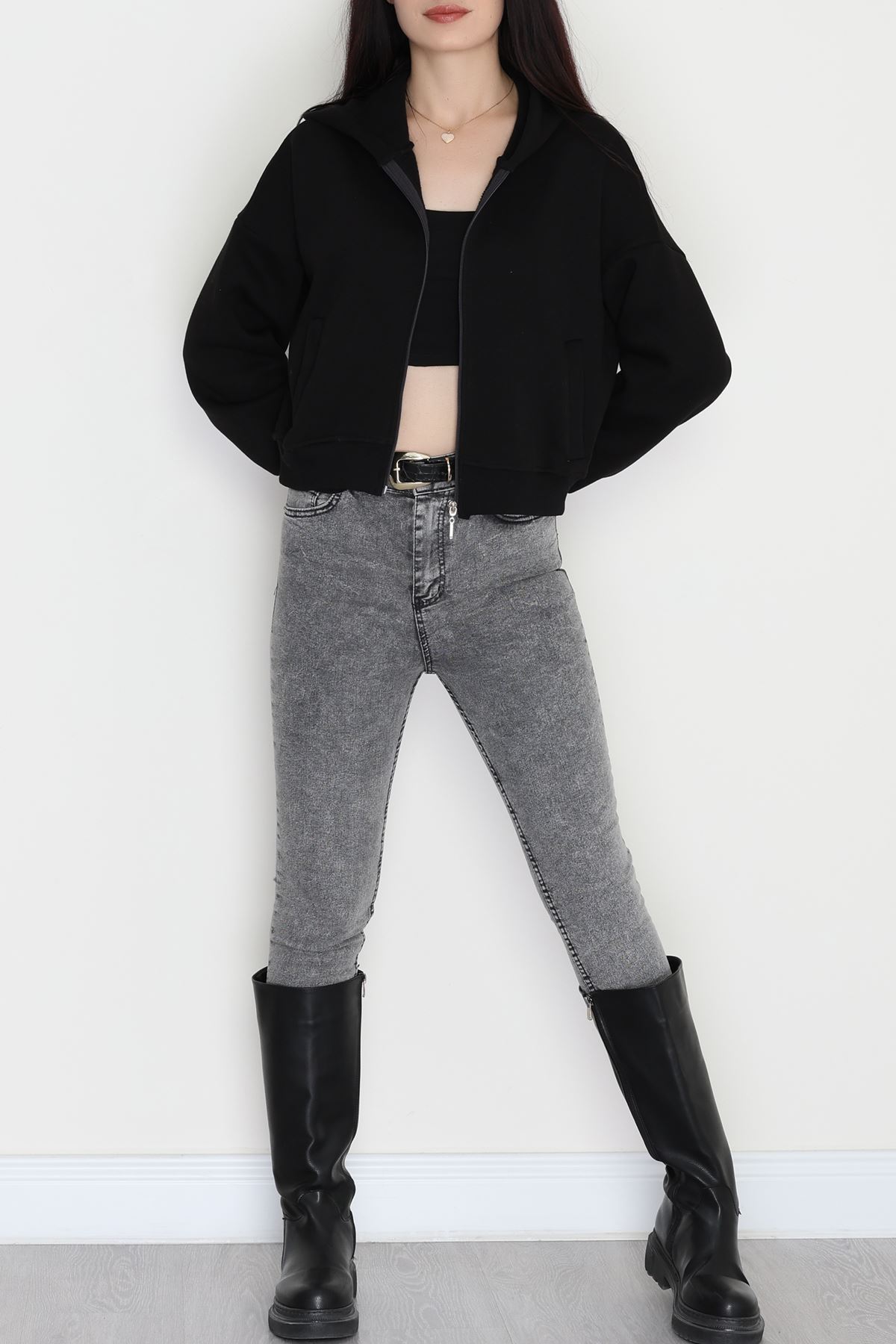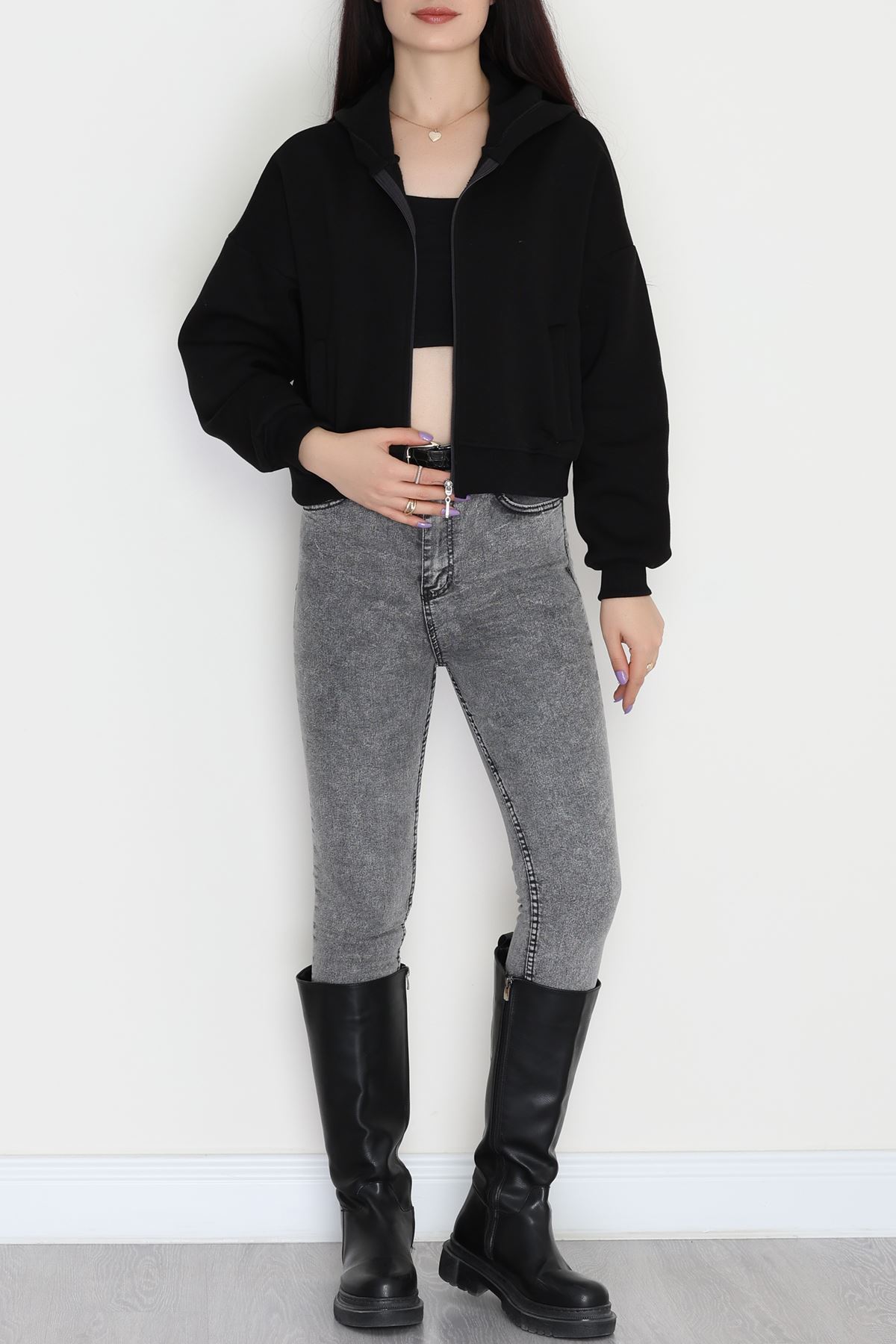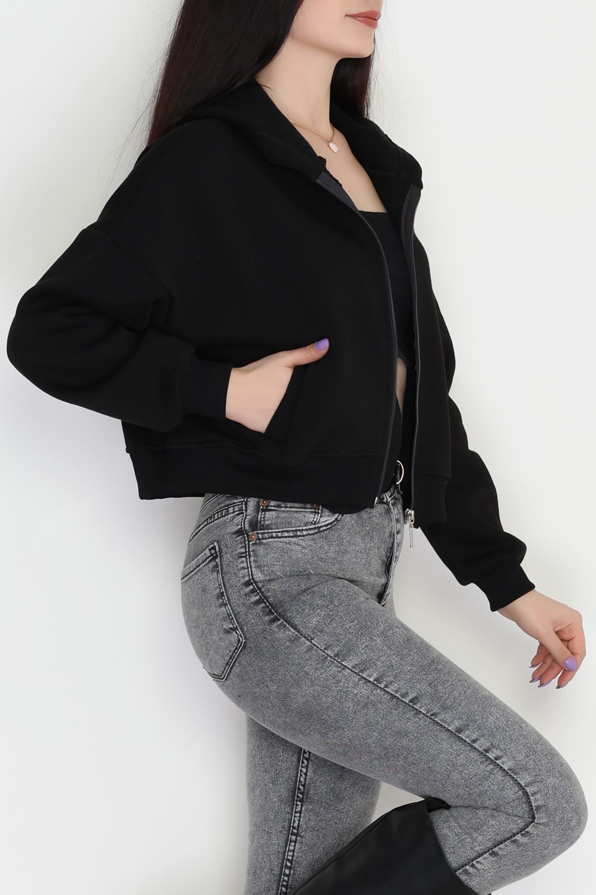 3 İplik Kompakt Oversize Fleto Cepli Sweat Siyah - 42506.1878.