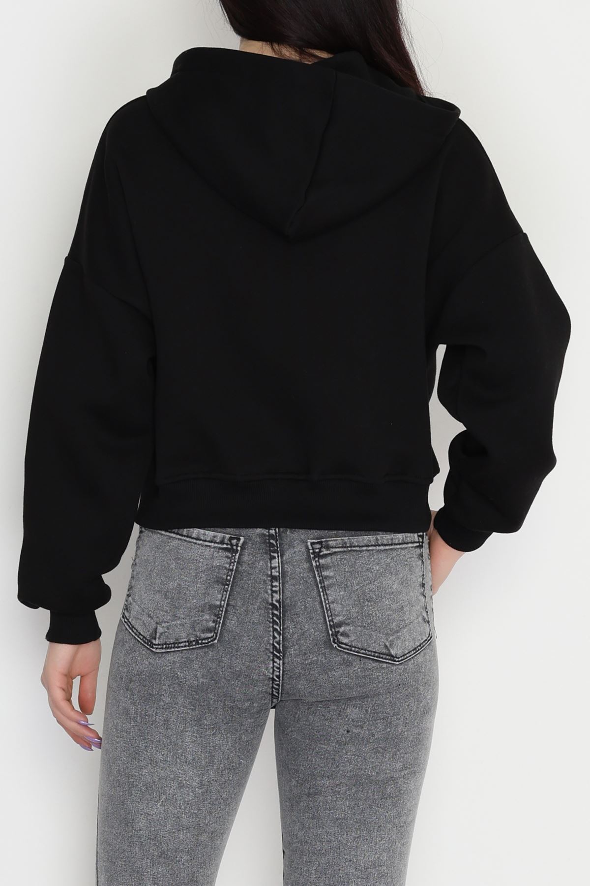 2 İplik Kapşonlu Baskılı Sweatshirt Siyah - 31315.1878.