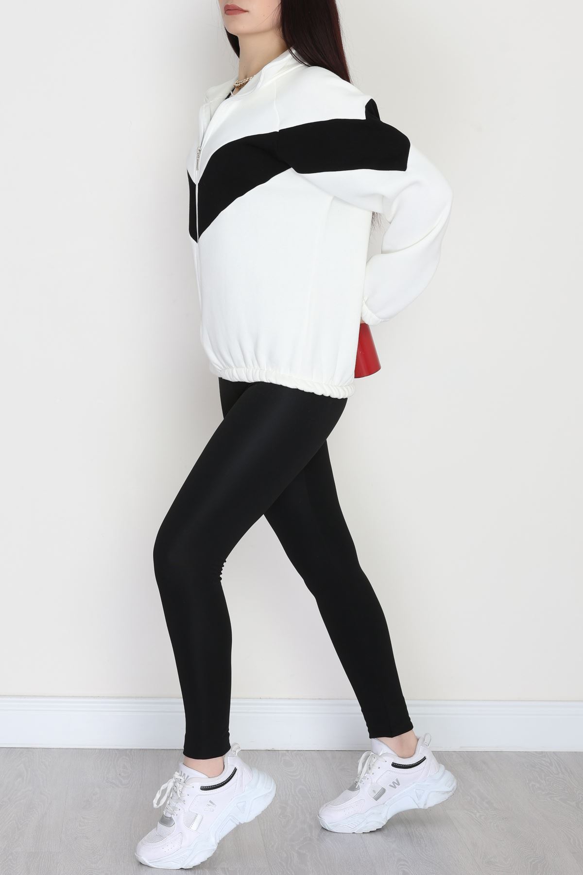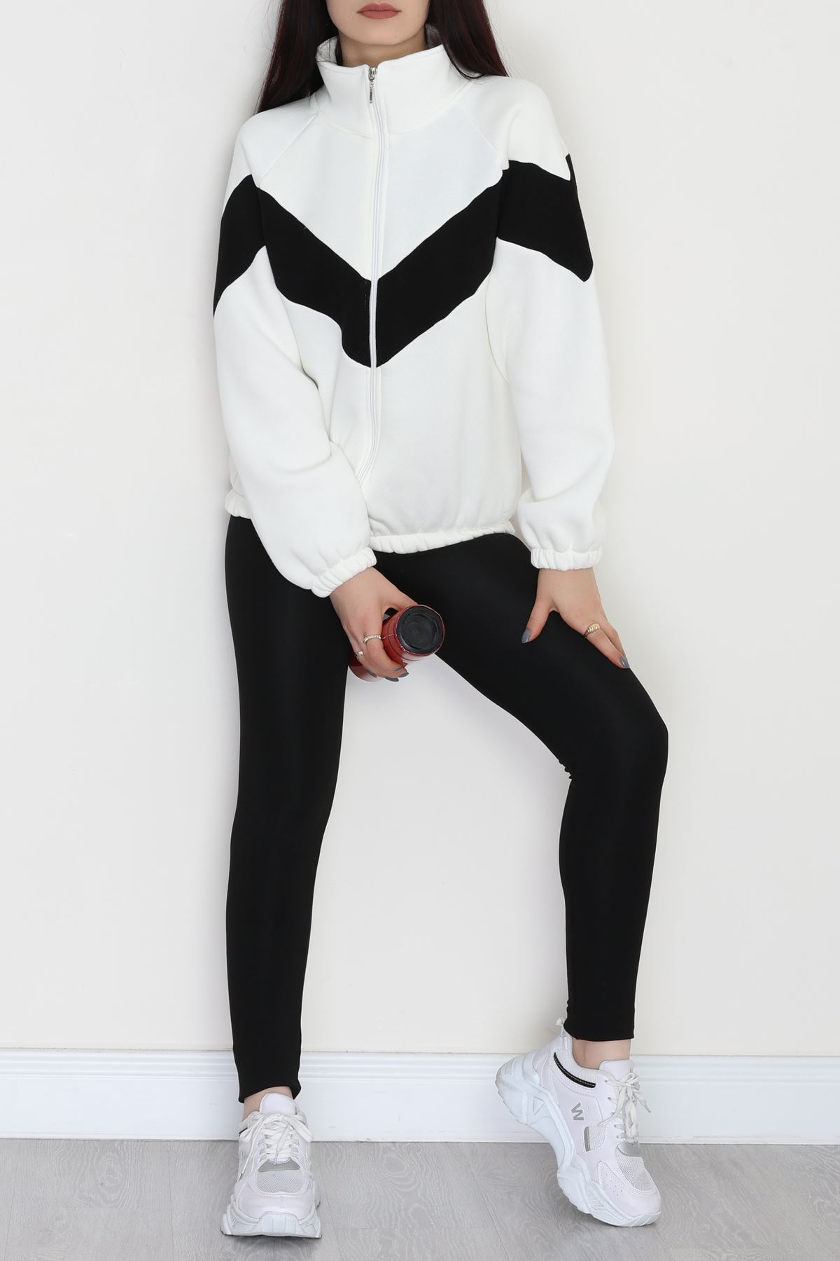 3 İplik Oversize Fermuarlı Sweat Ekrusiyah - 42504.1878.