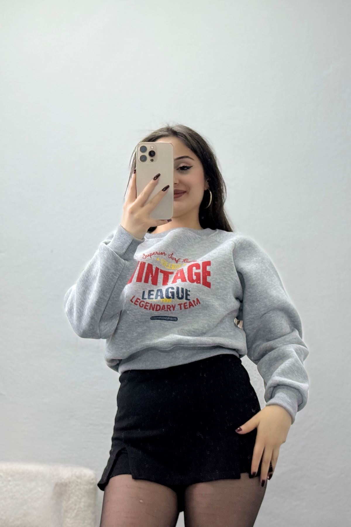 3 İplik Şardonlu Baskılı Sweat Gri - 42605.1878.