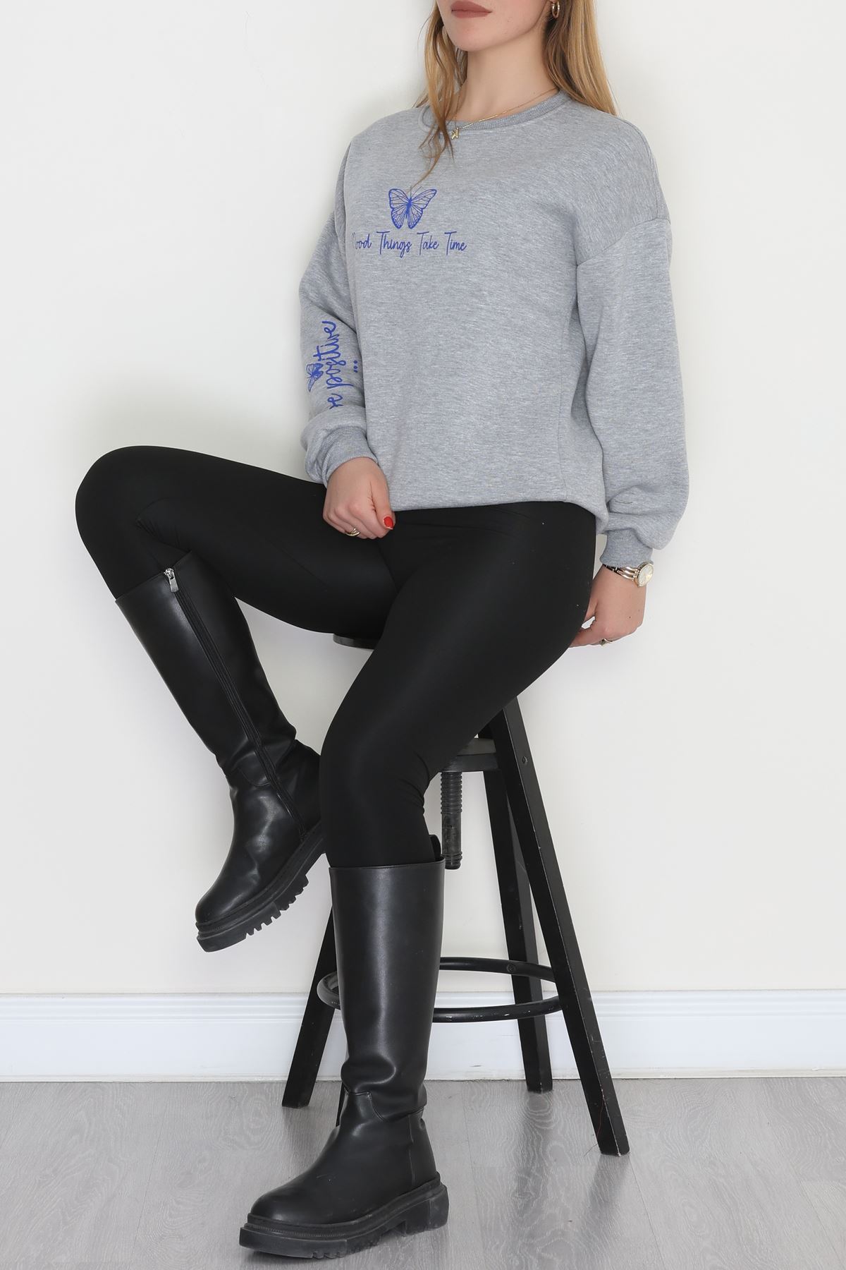 3 İplik Şardonlu Baskılı Sweat Grisaks - 42611.1878.