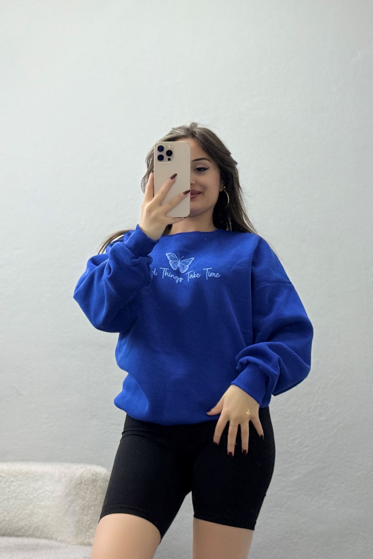 3 İplik Şardonlu Baskılı Sweat Saksbebemavi - 42611.1878.