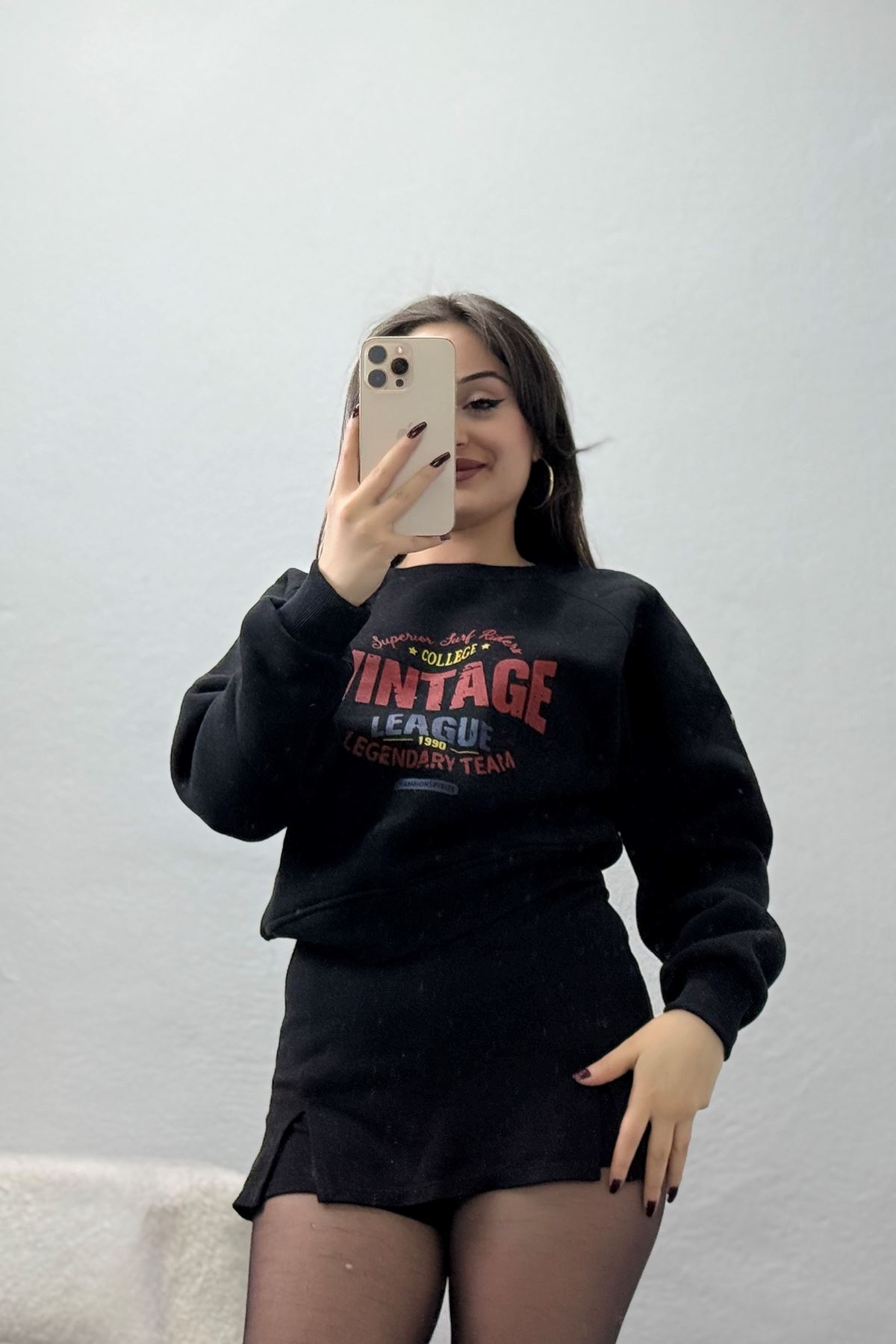 3 İplik Şardonlu Baskılı Sweat Siyah - 42605.1878.
