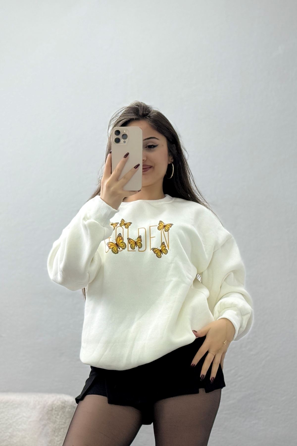 3 İplik Şardonlu Baskılı Taşlı Sweat Ekrusarı - 42604.1878.