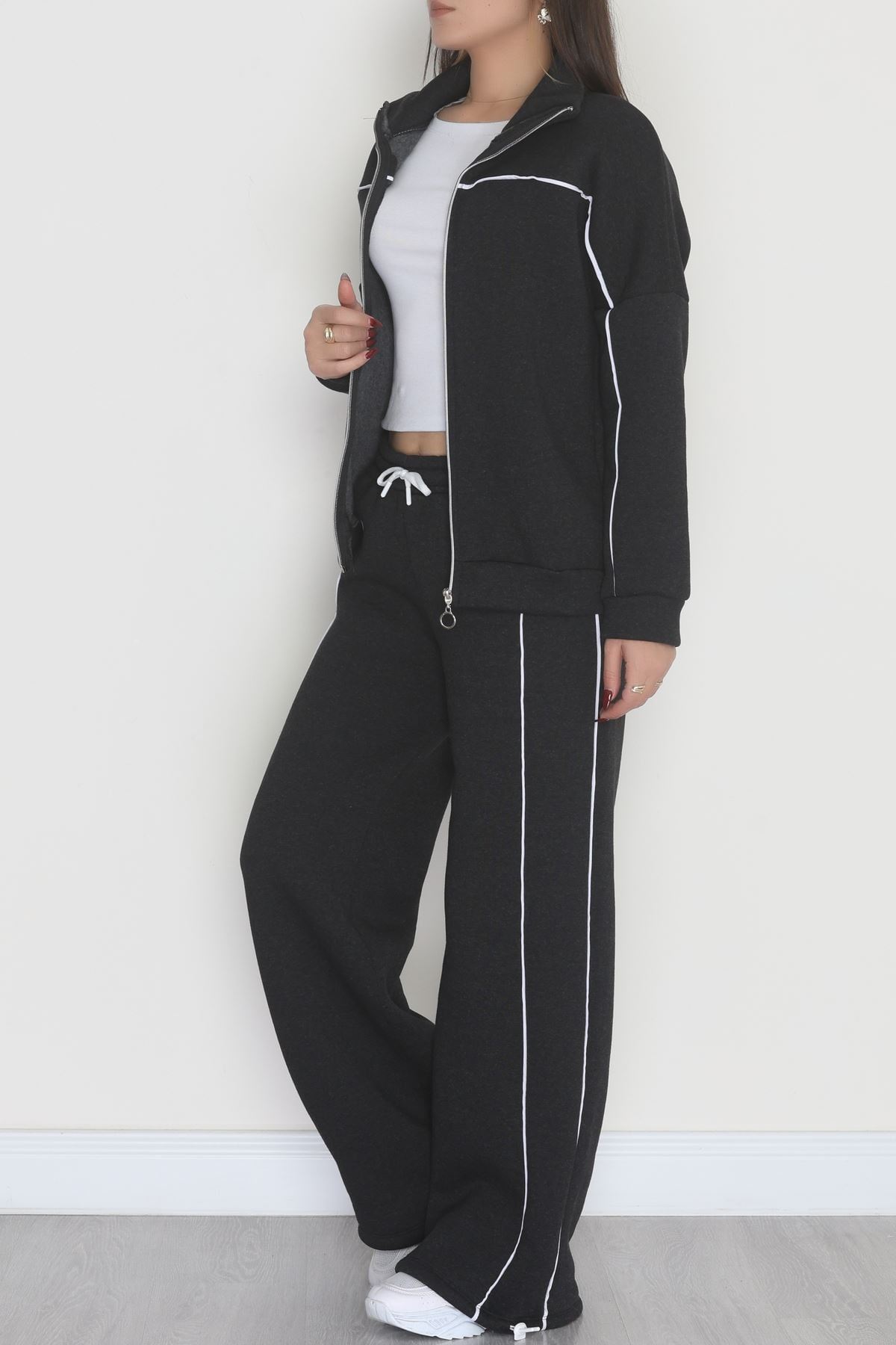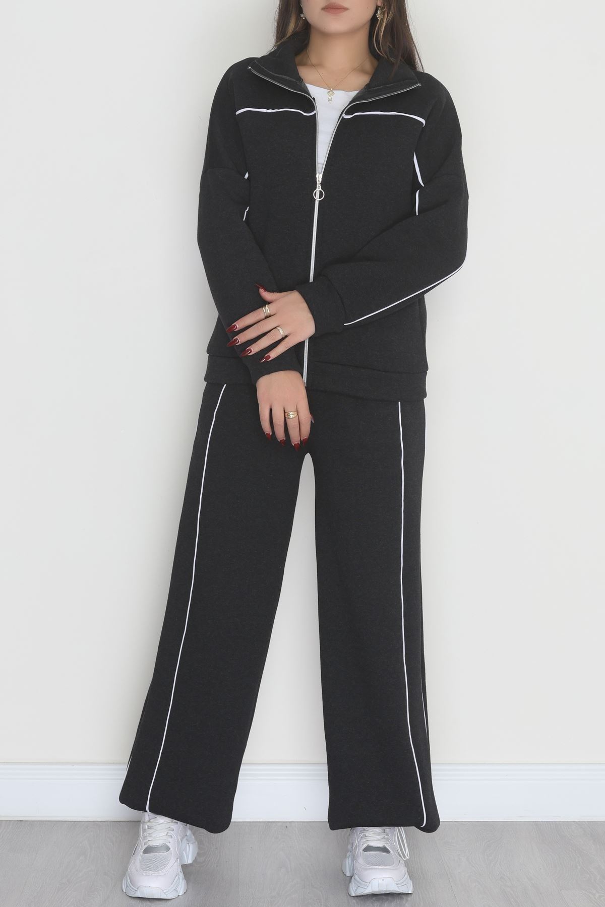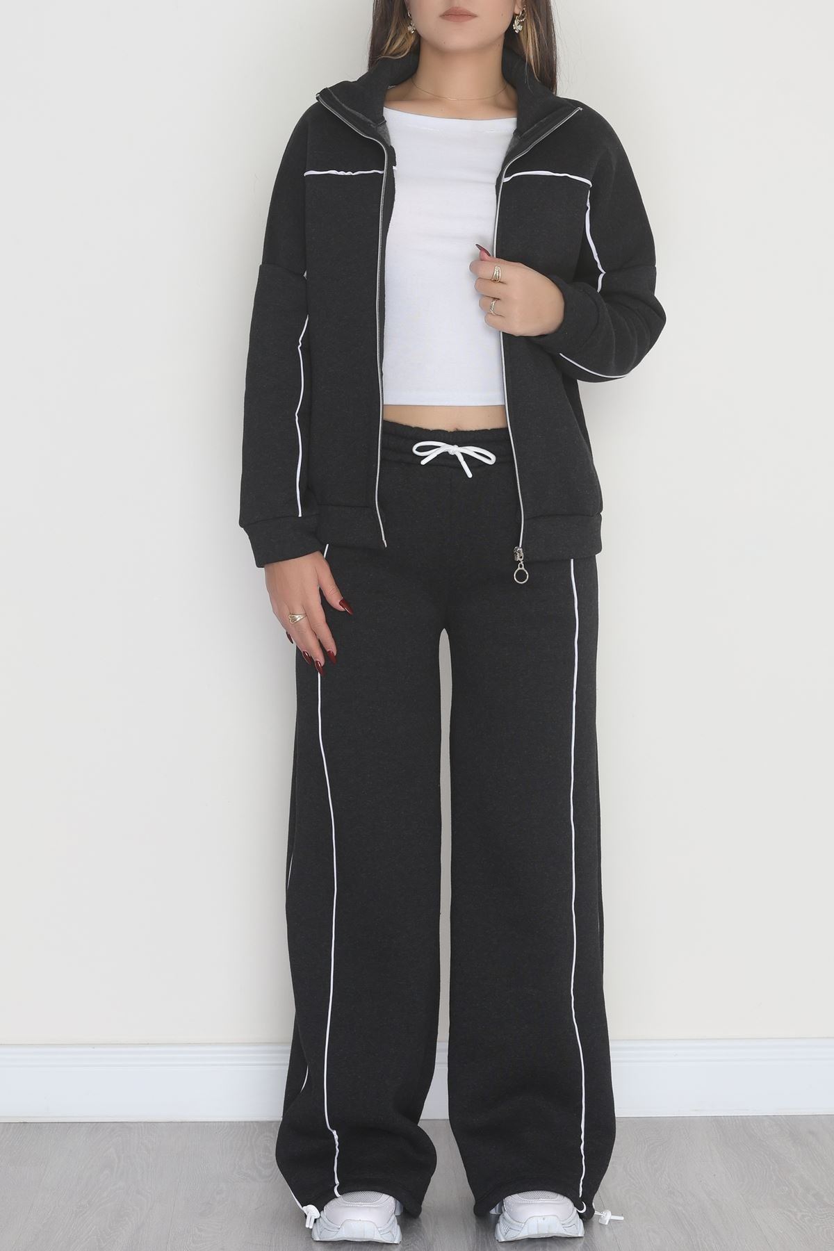 3 İplik Şardonlu Biyeli Fermuarlı Takım Füme - 52031.1857.