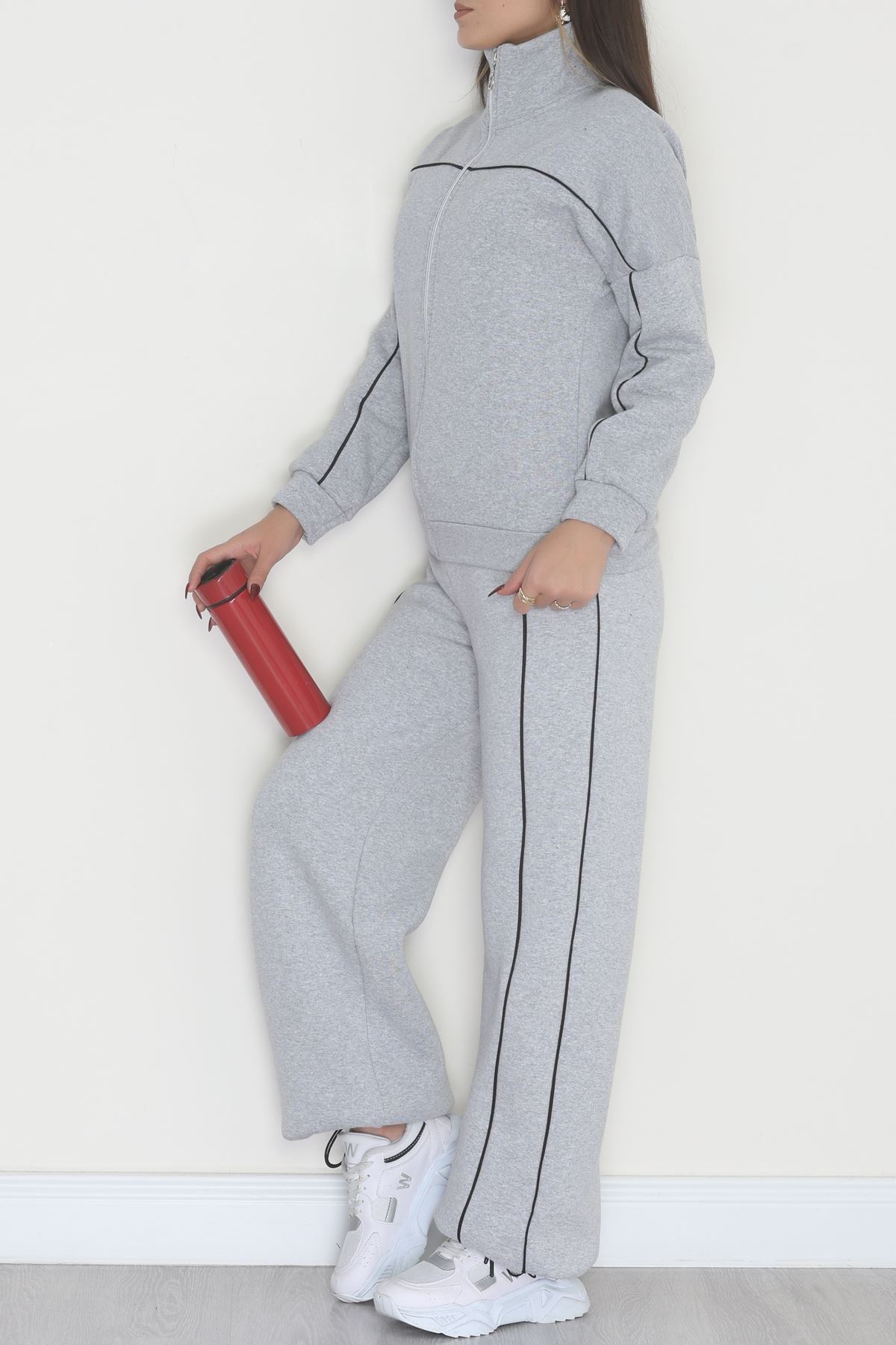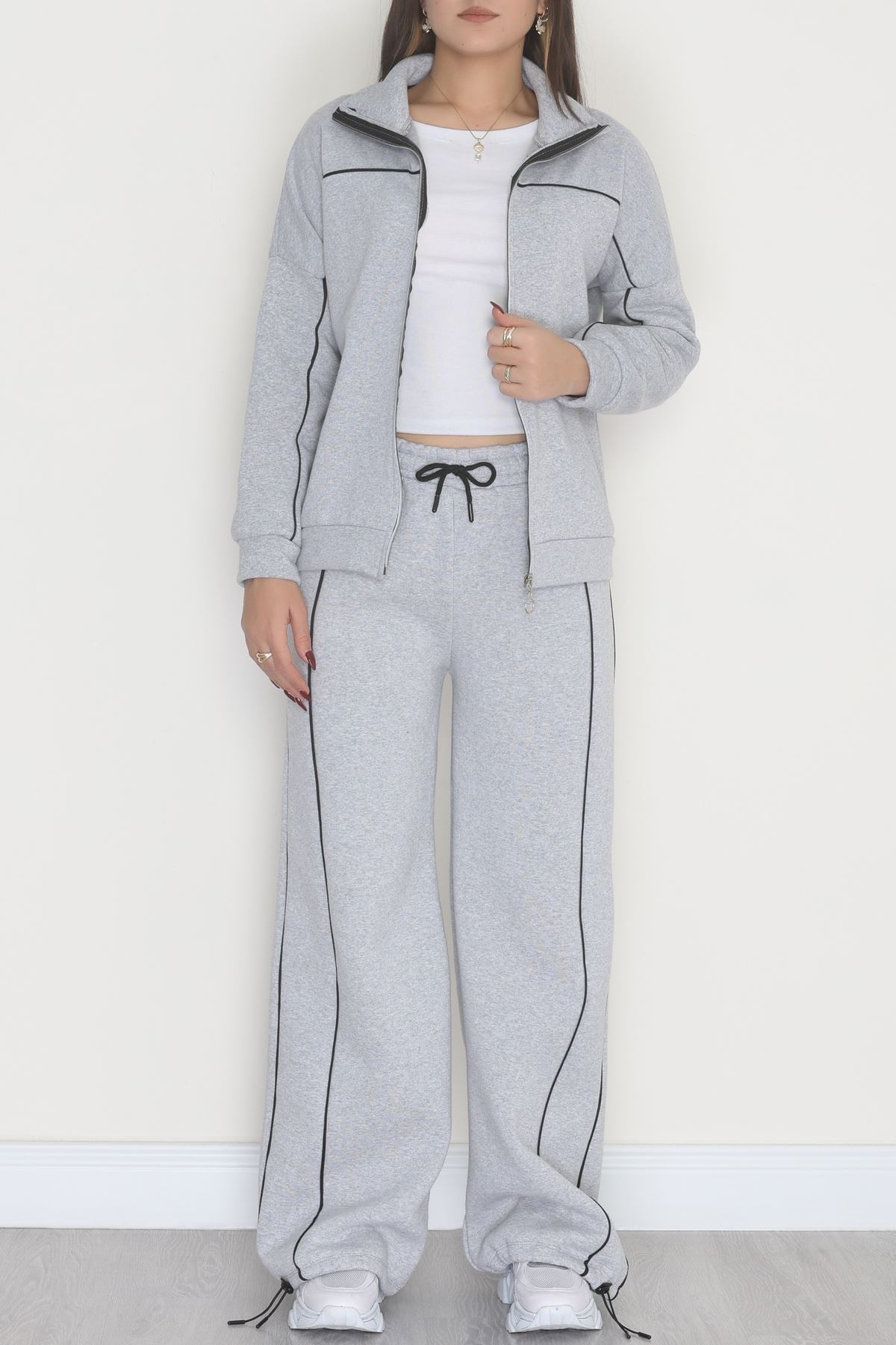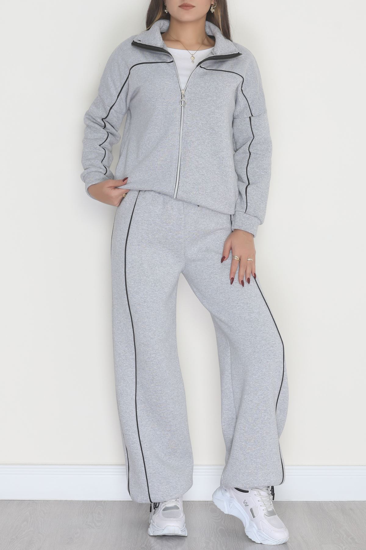 3 İplik Şardonlu Biyeli Fermuarlı Takım Gri - 52031.1857.