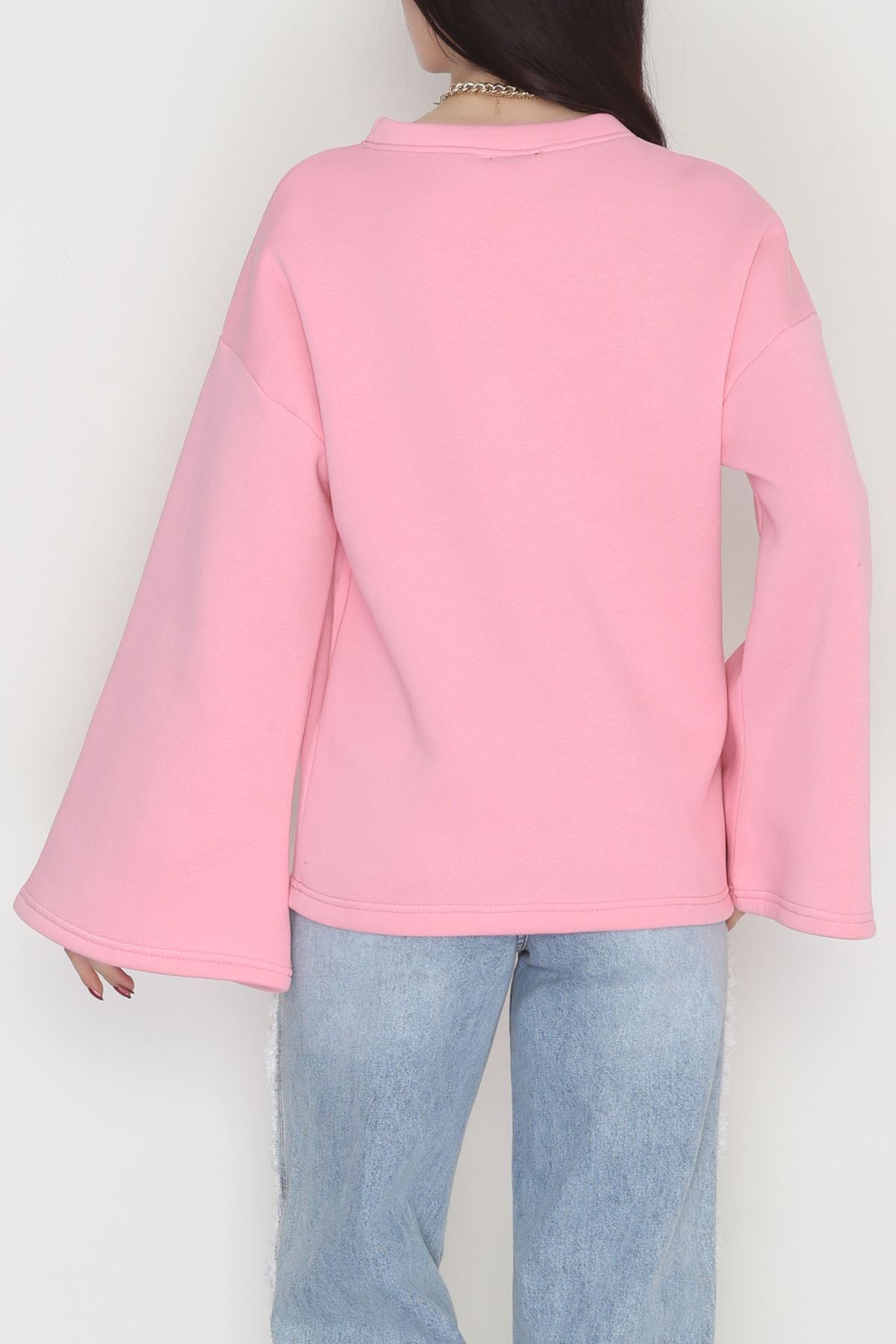 3 İplik Şardonlu İspanyol Kol Sweat Pembe - 42606.1878.