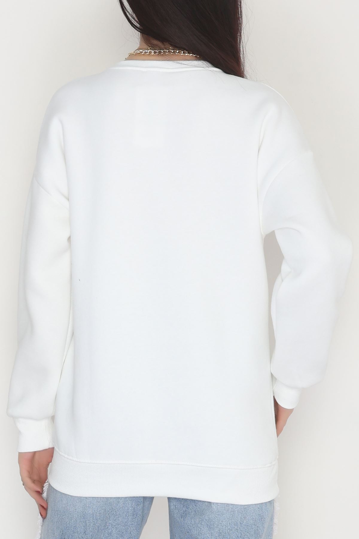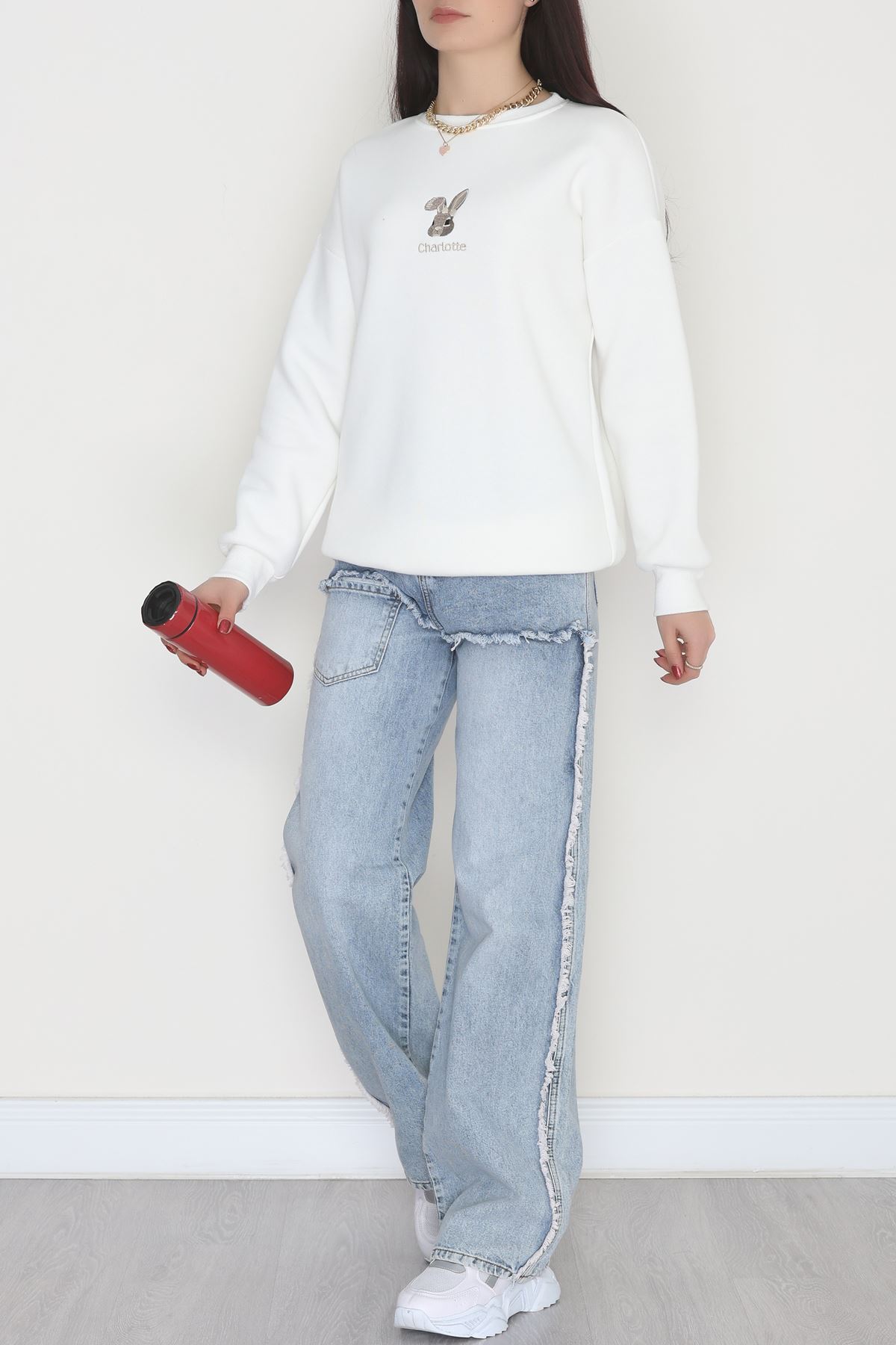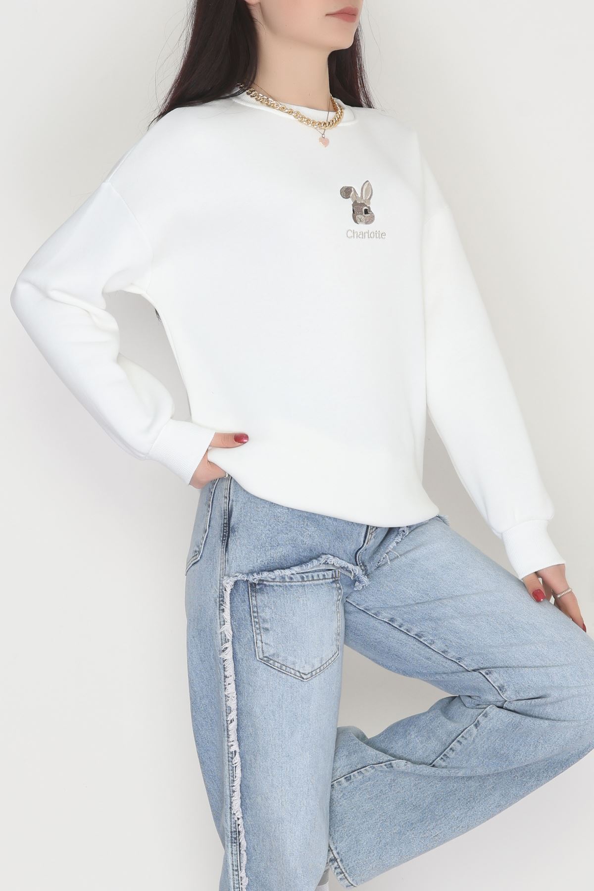 3 İplik Şardonlu Nakışlı Sweat Ekru - 42608.1878.