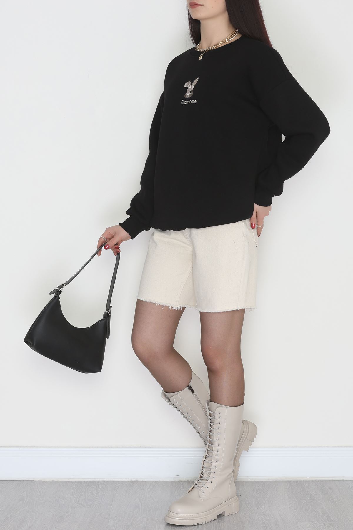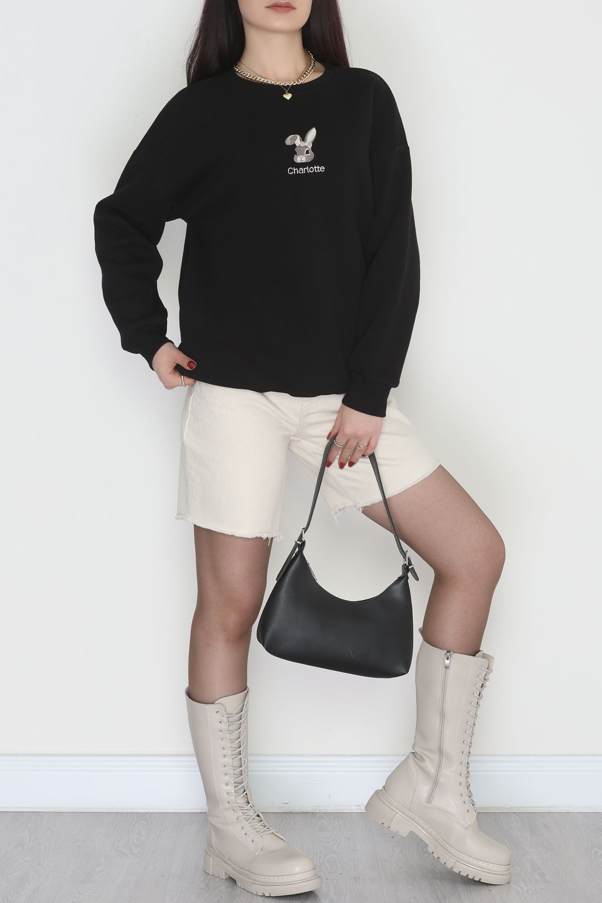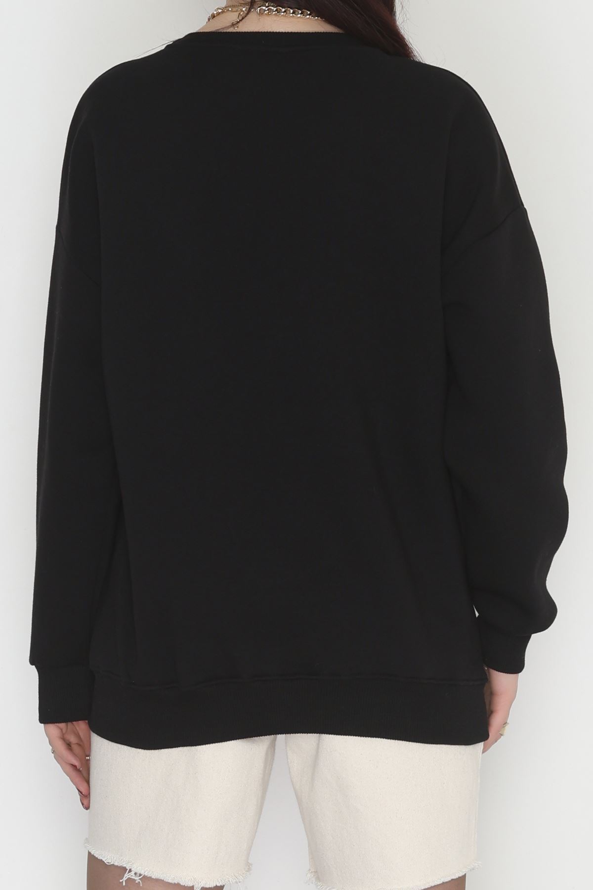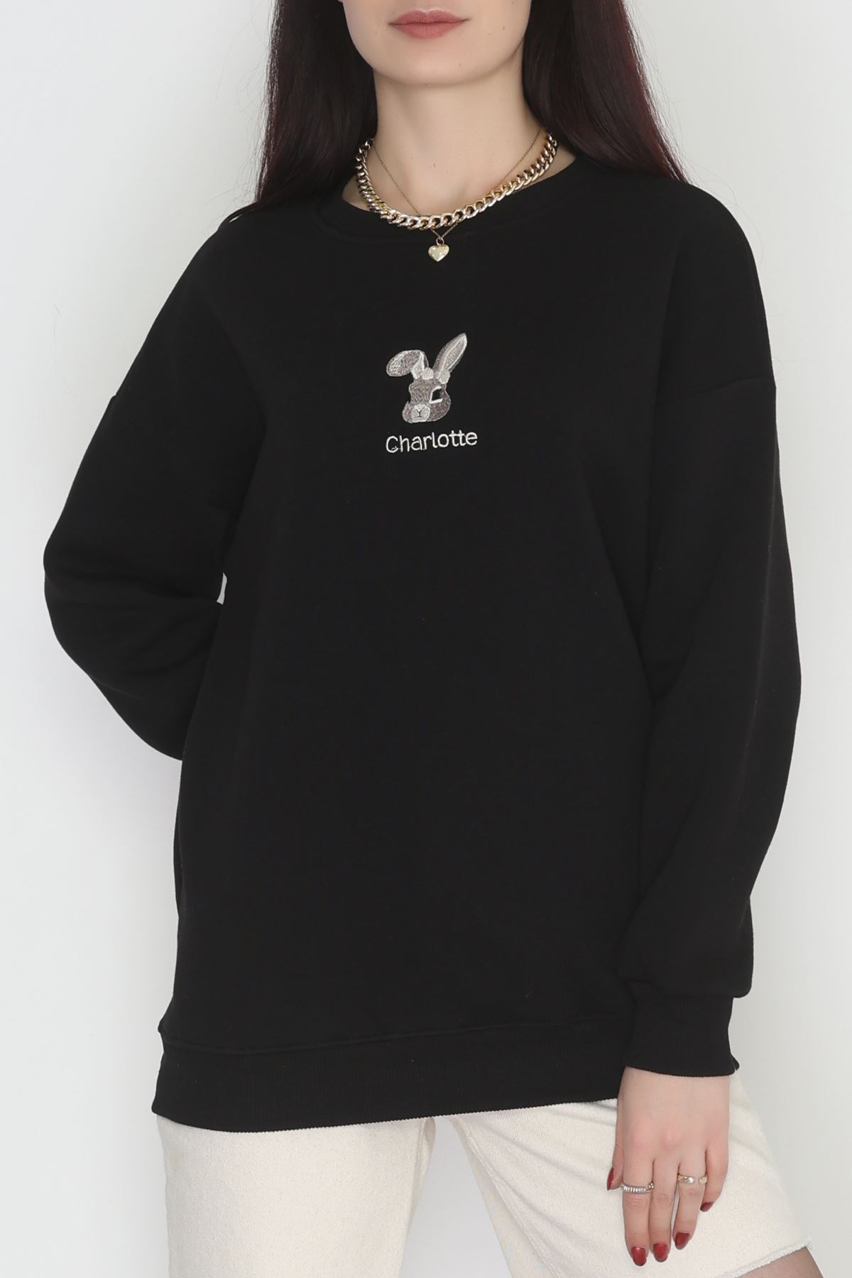 3 İplik Şardonlu Nakışlı Sweat Siyah - 42608.1878.
