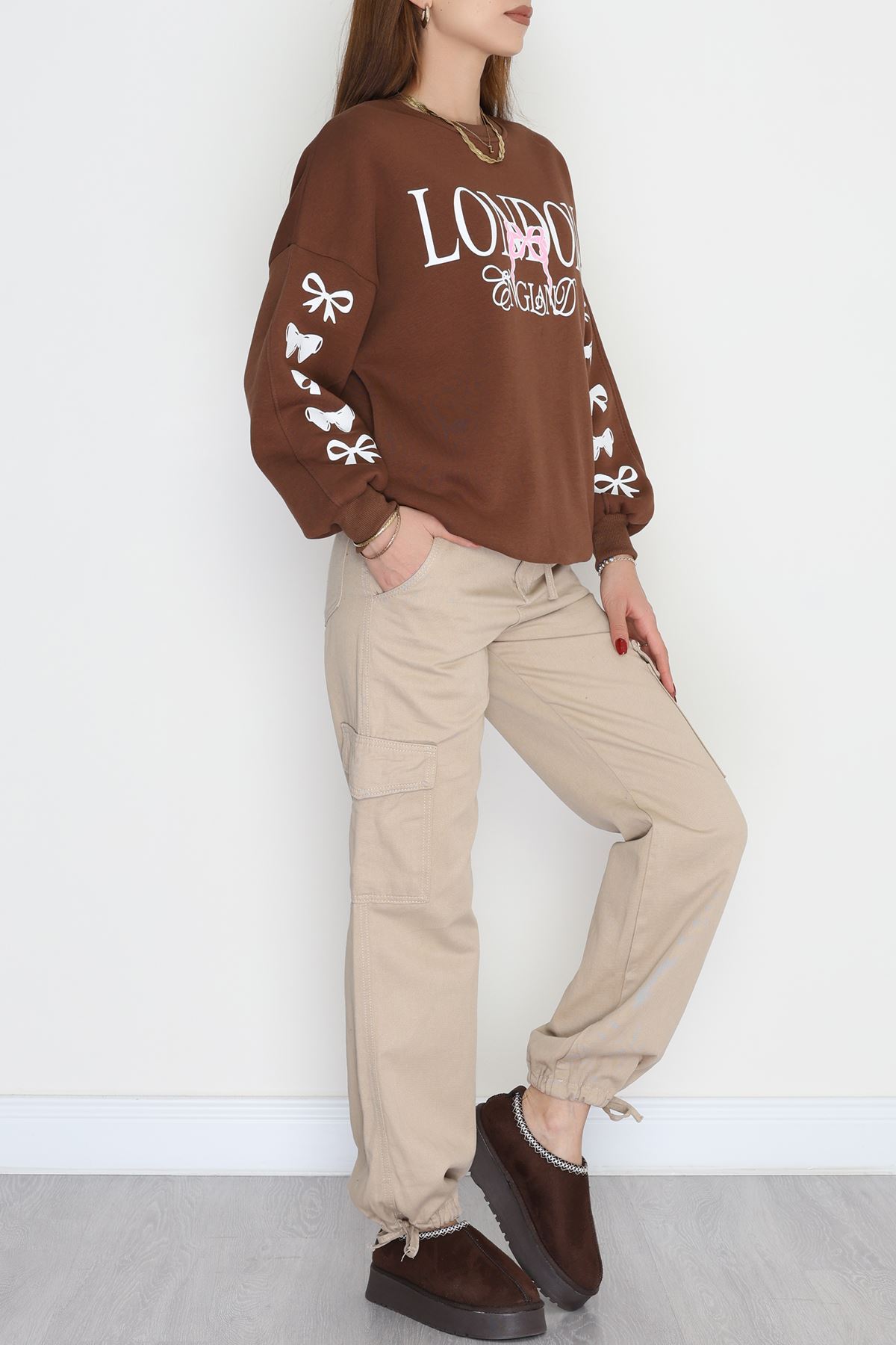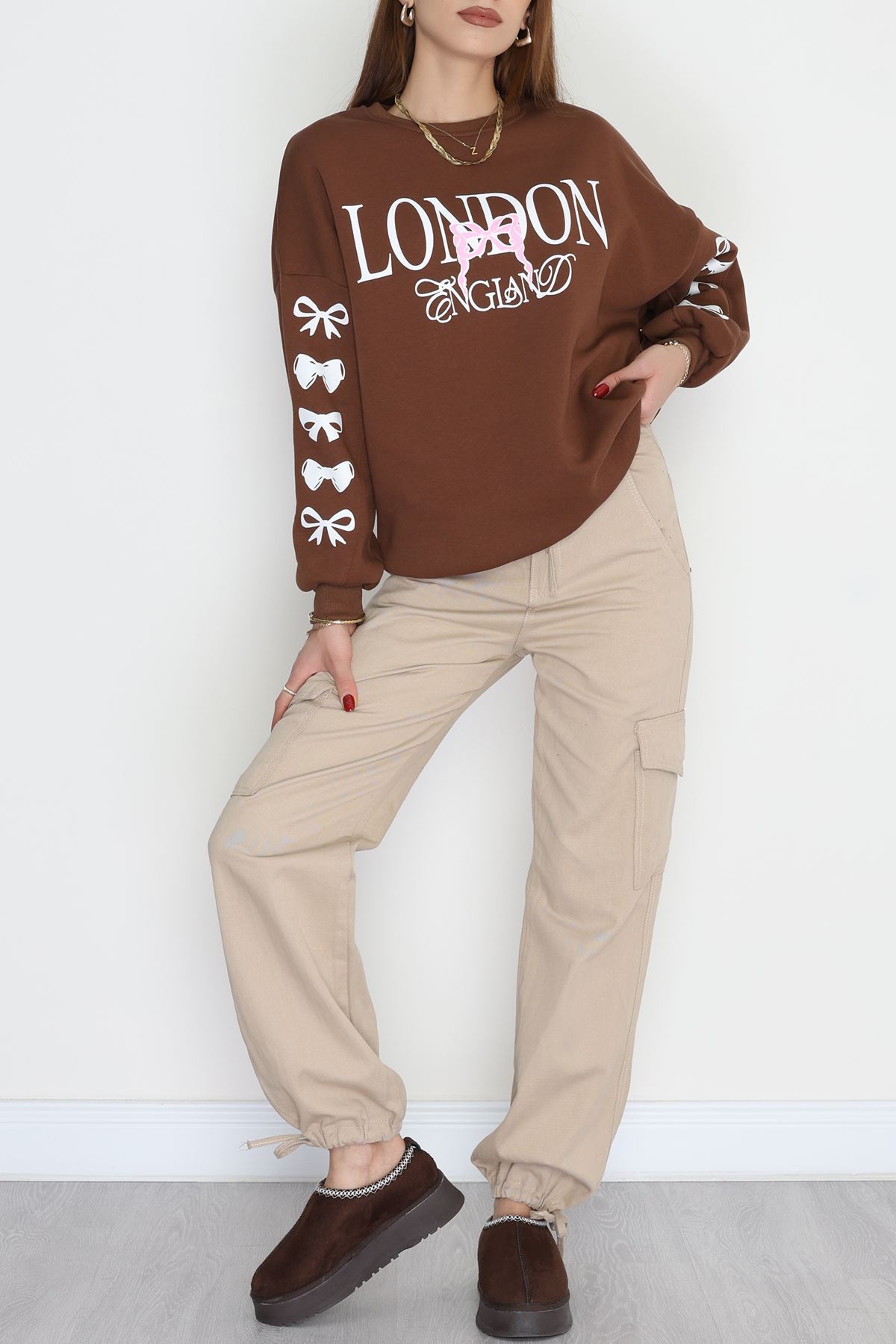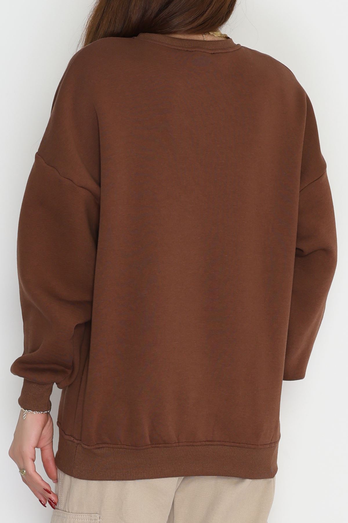 3 İplik Şardonlu Oversize Sweat Kahve - 50919.1878.