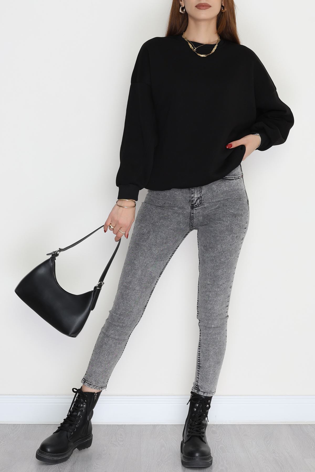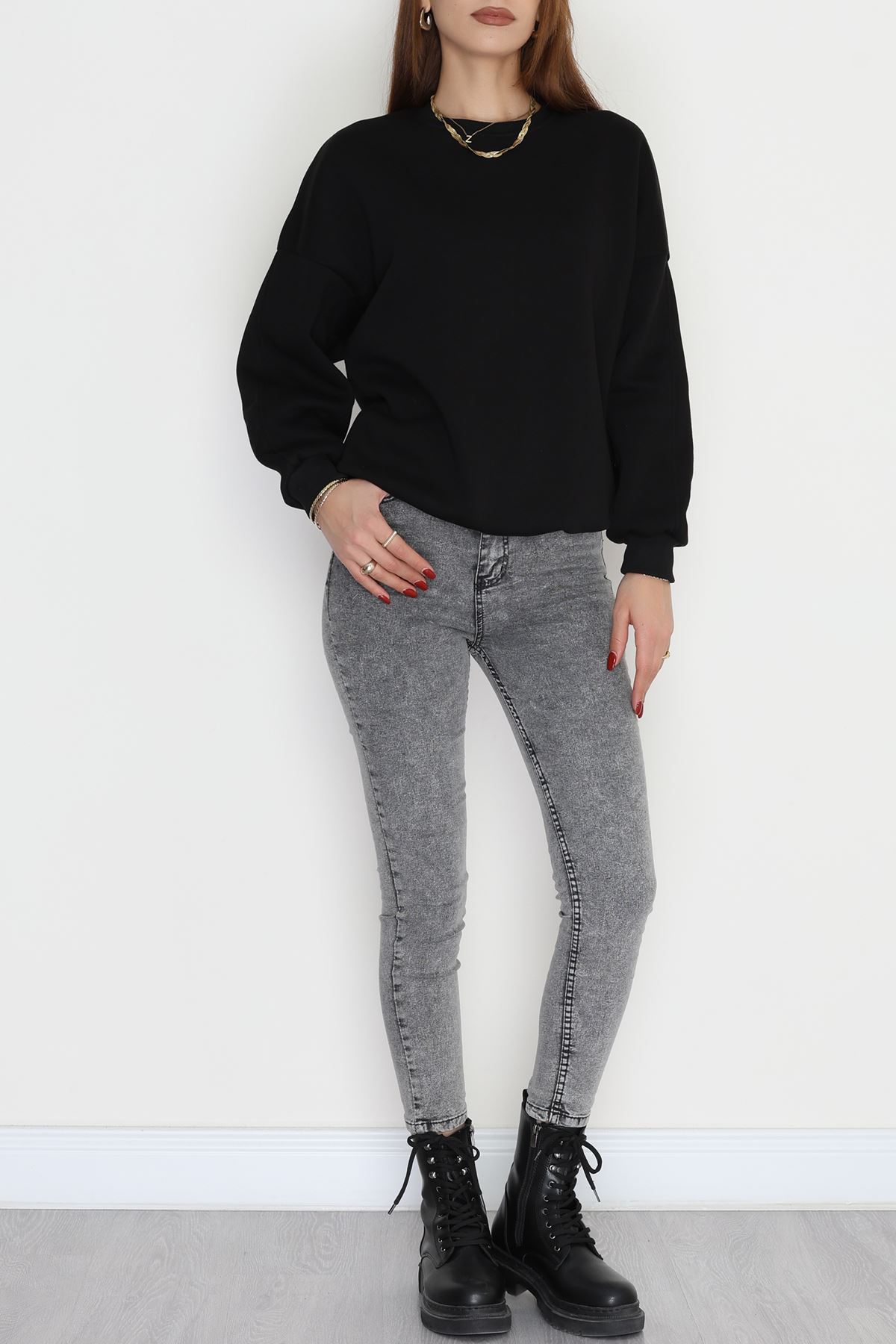 3 İplik Şardonlu Oversize Sweat Siyah - 50918.1878.