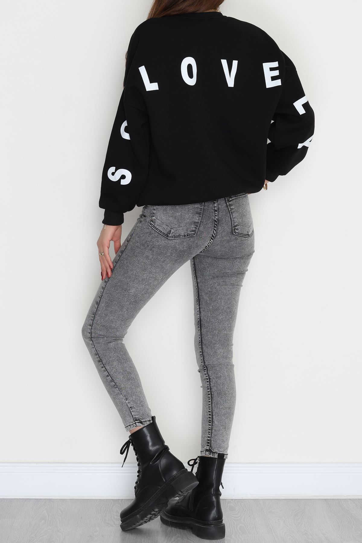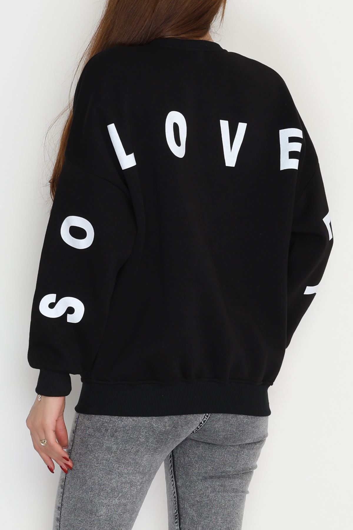2 İplik Baskılı Sweatshirt Siyah - 31301.1878.