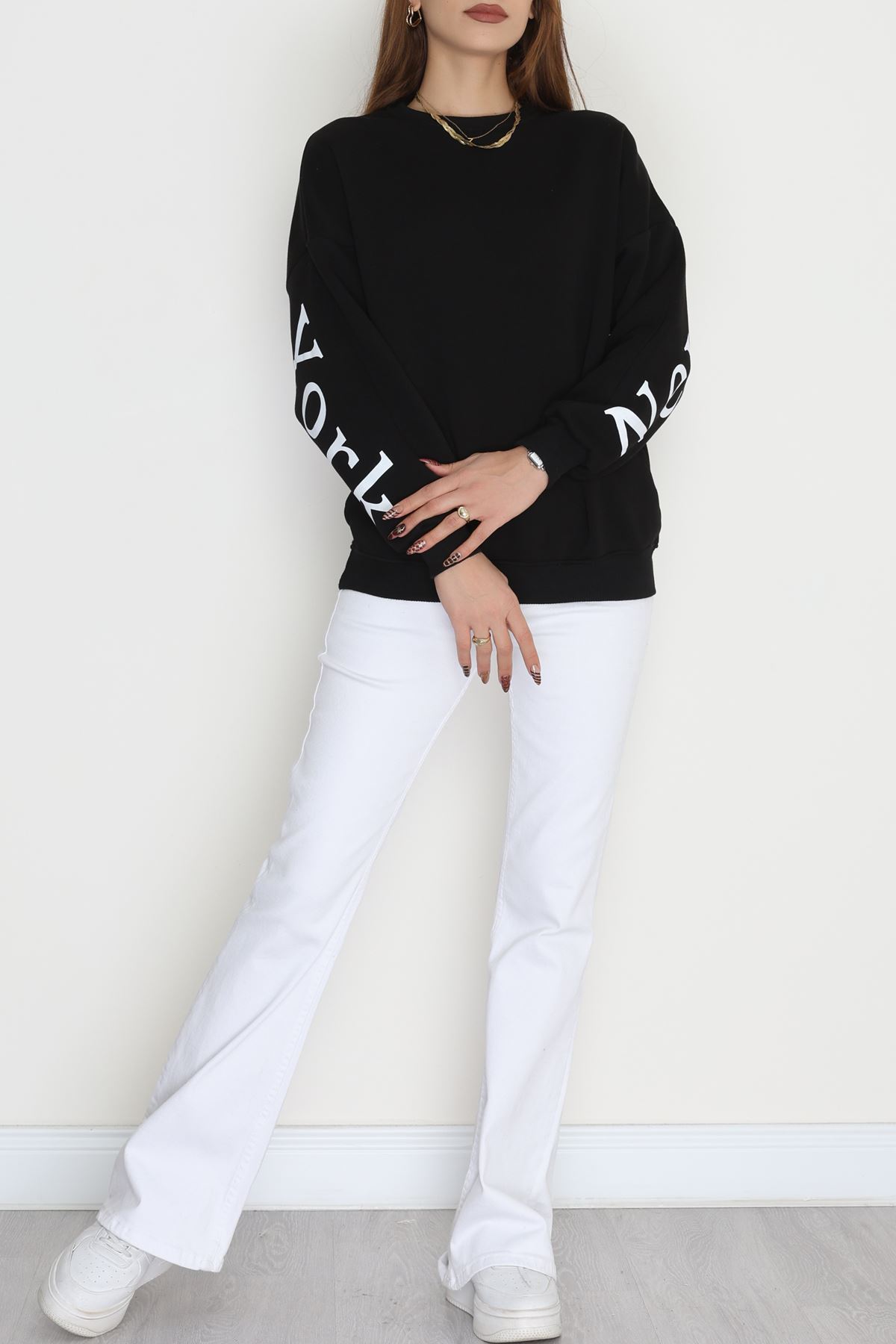 3 İplik Şardonlu Oversize Sweat Siyah - 50922.1878.