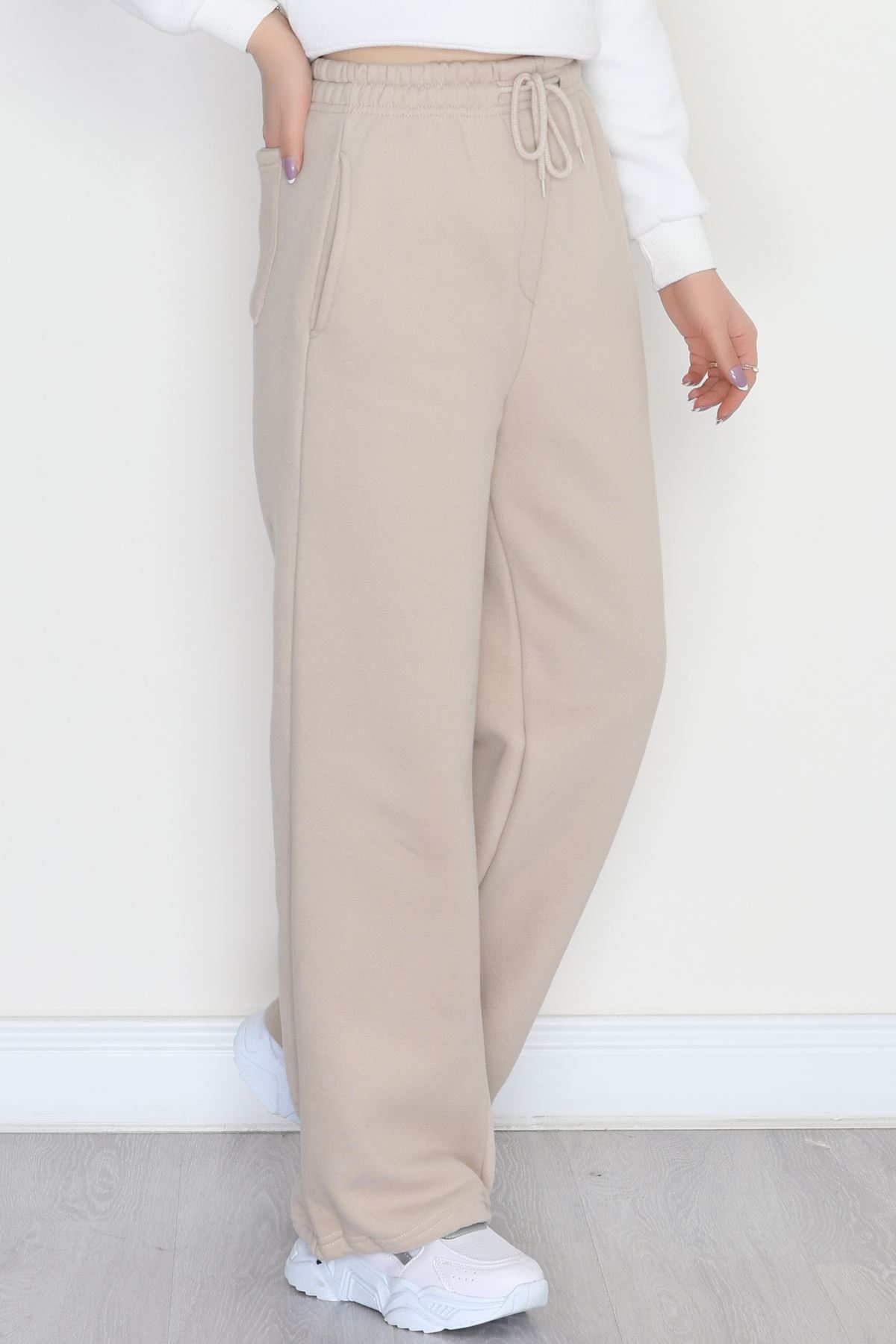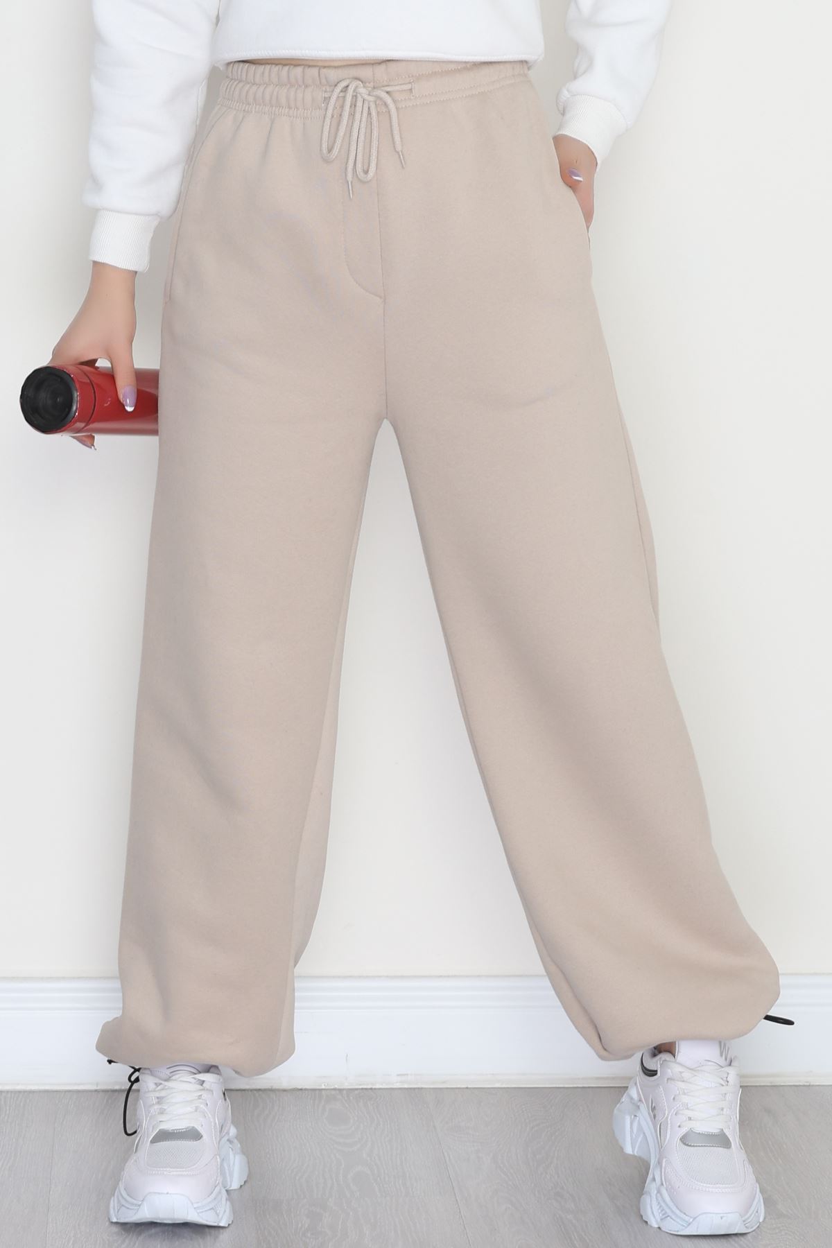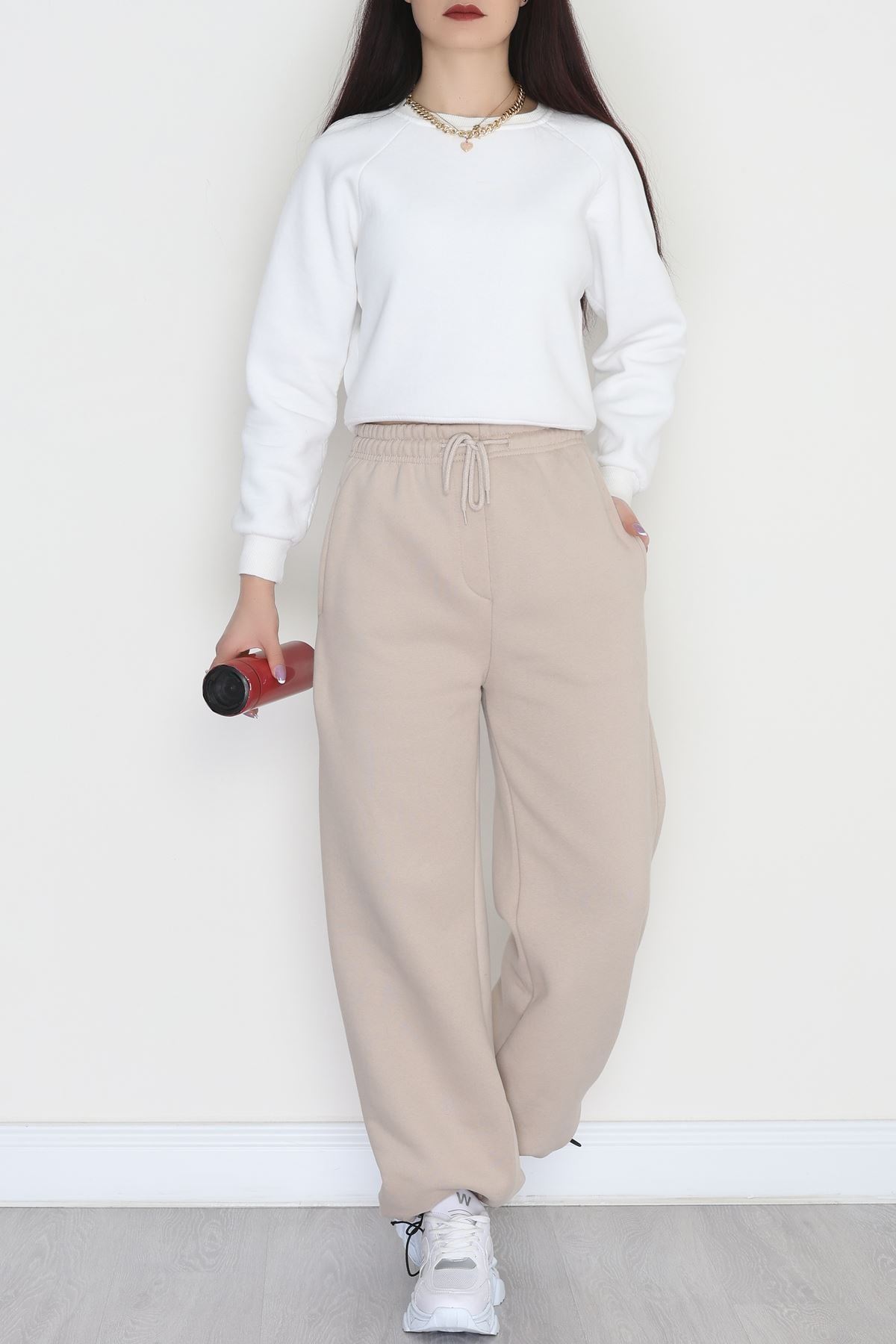 3 İplik Şardonlu Paça Stoperli Eşofman Altı Bej - 52069.2113.