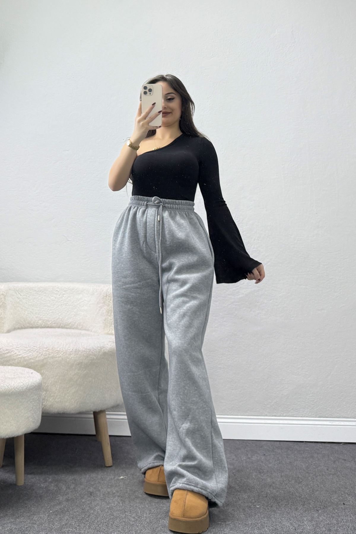 Bel Detaylı 2 İplik Eşofman Altı Gri - 70169.1857.