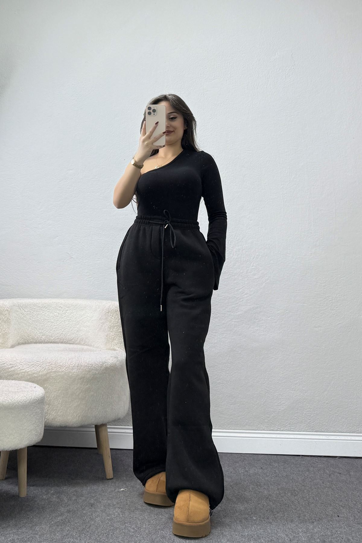 Bel Detaylı 2 İplik Eşofman Altı Siyah - 70169.1857.